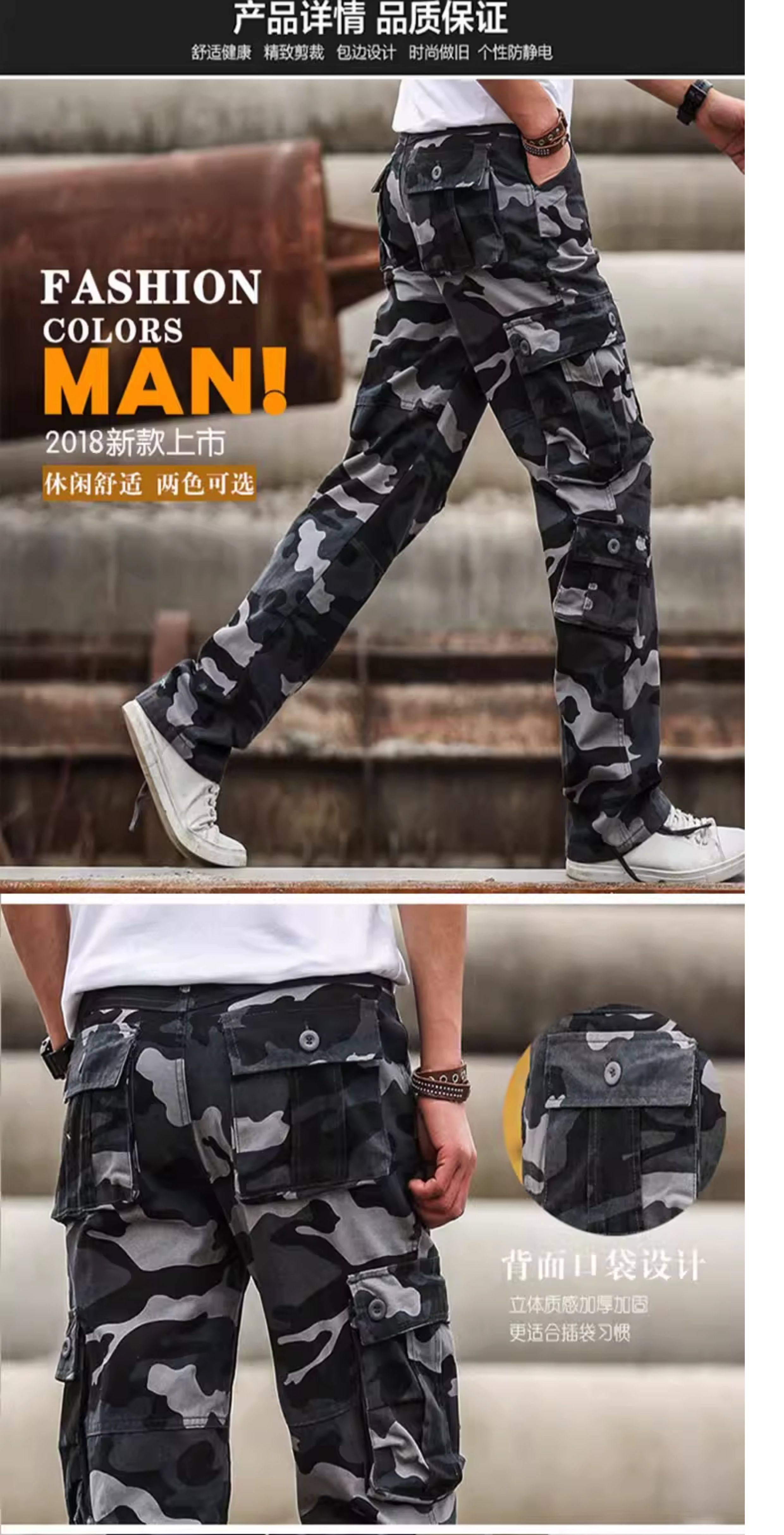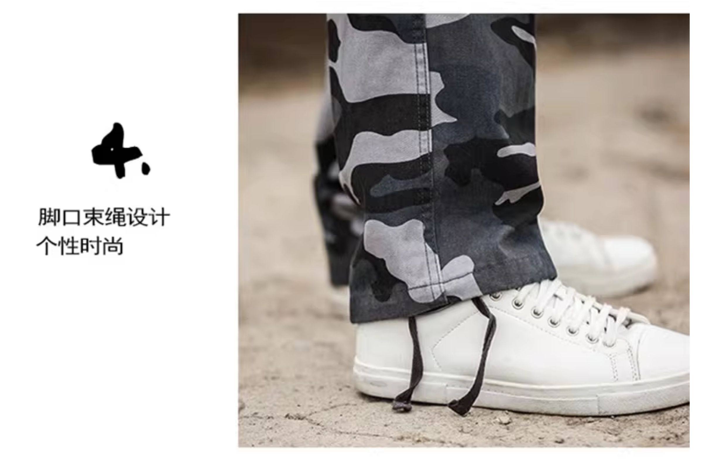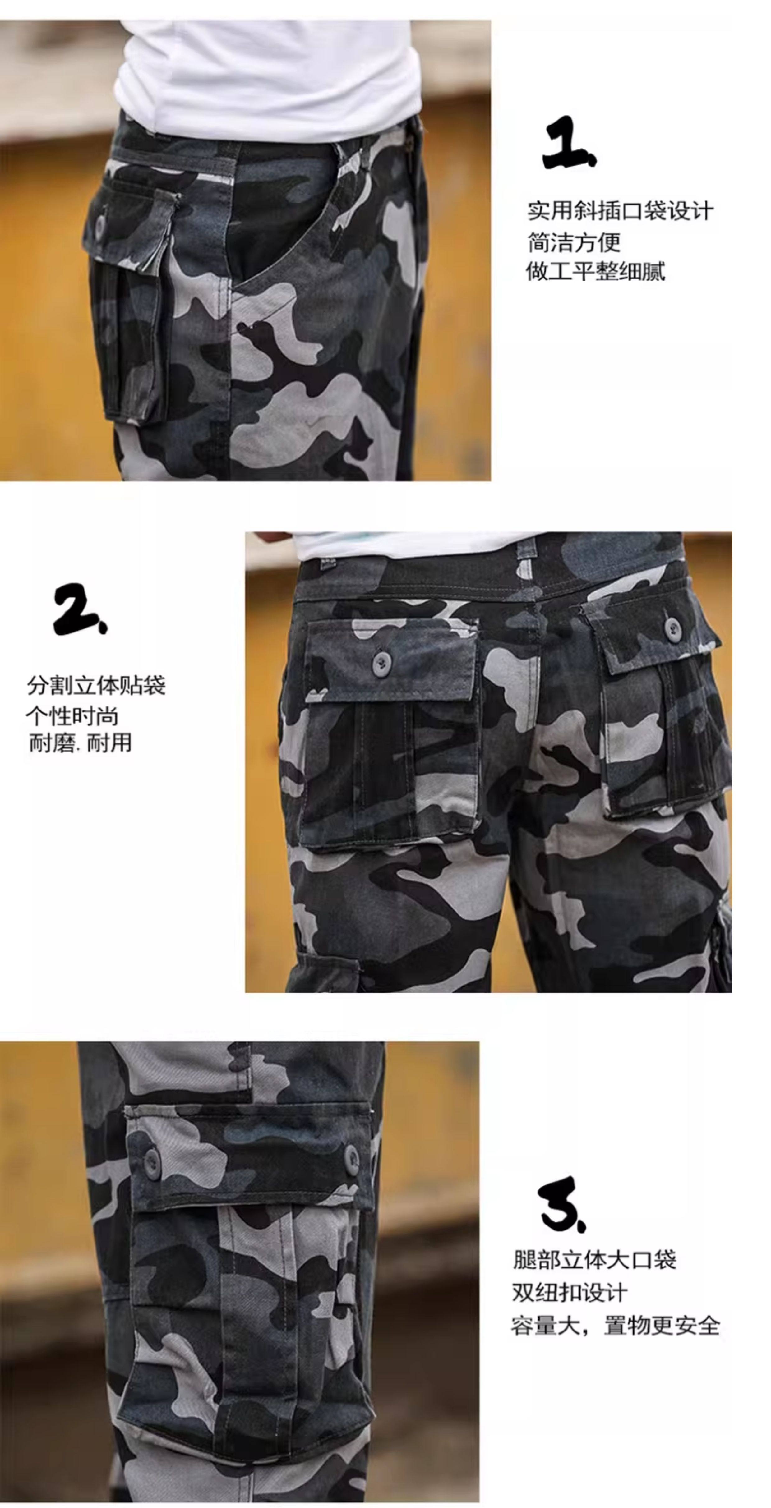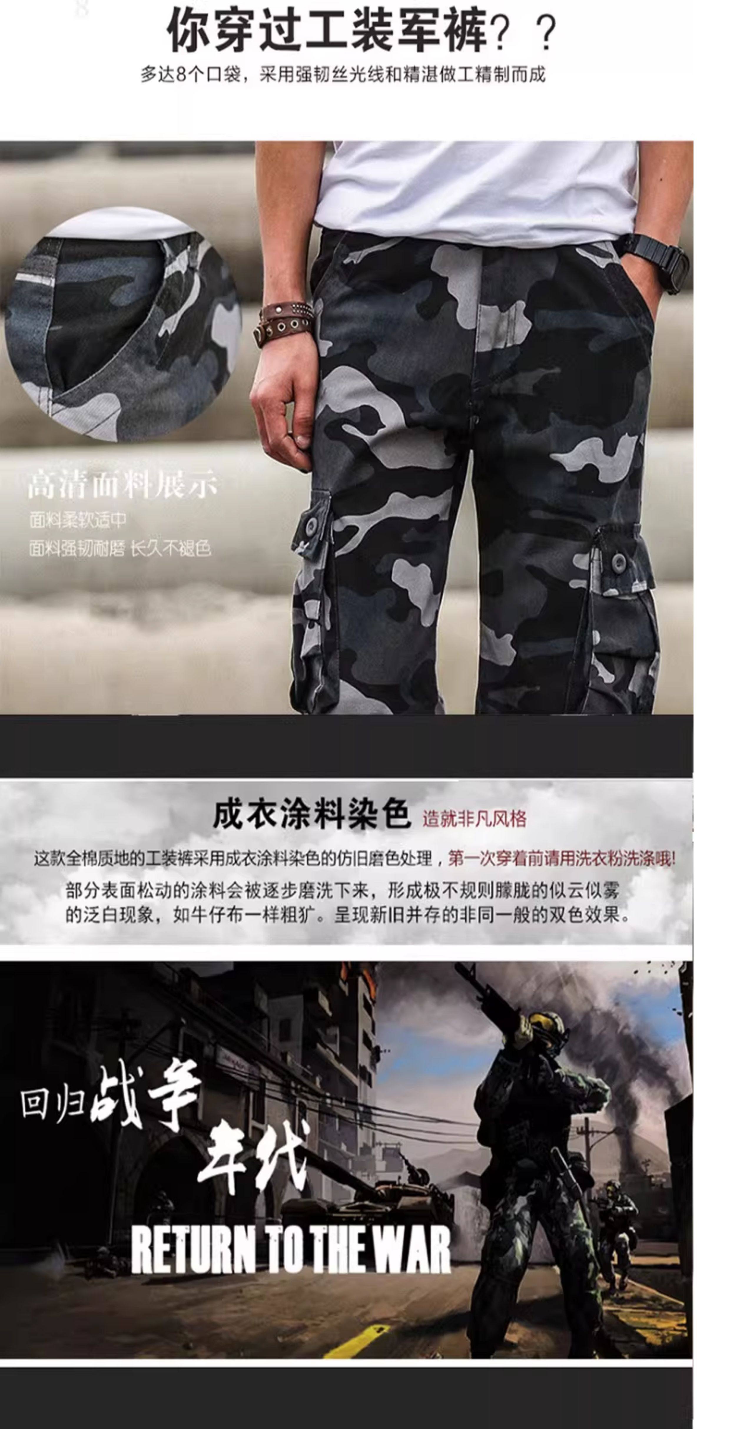 純棉多口袋工裝褲迷彩長褲運動褲男士寬鬆加大碼耐磨全棉休閒褲潮