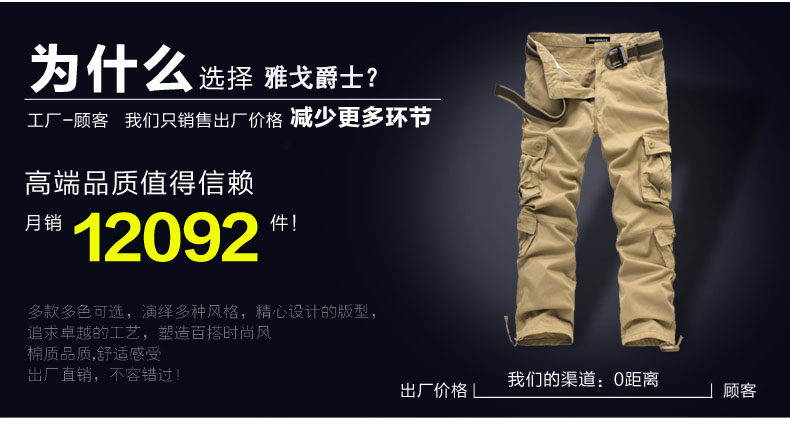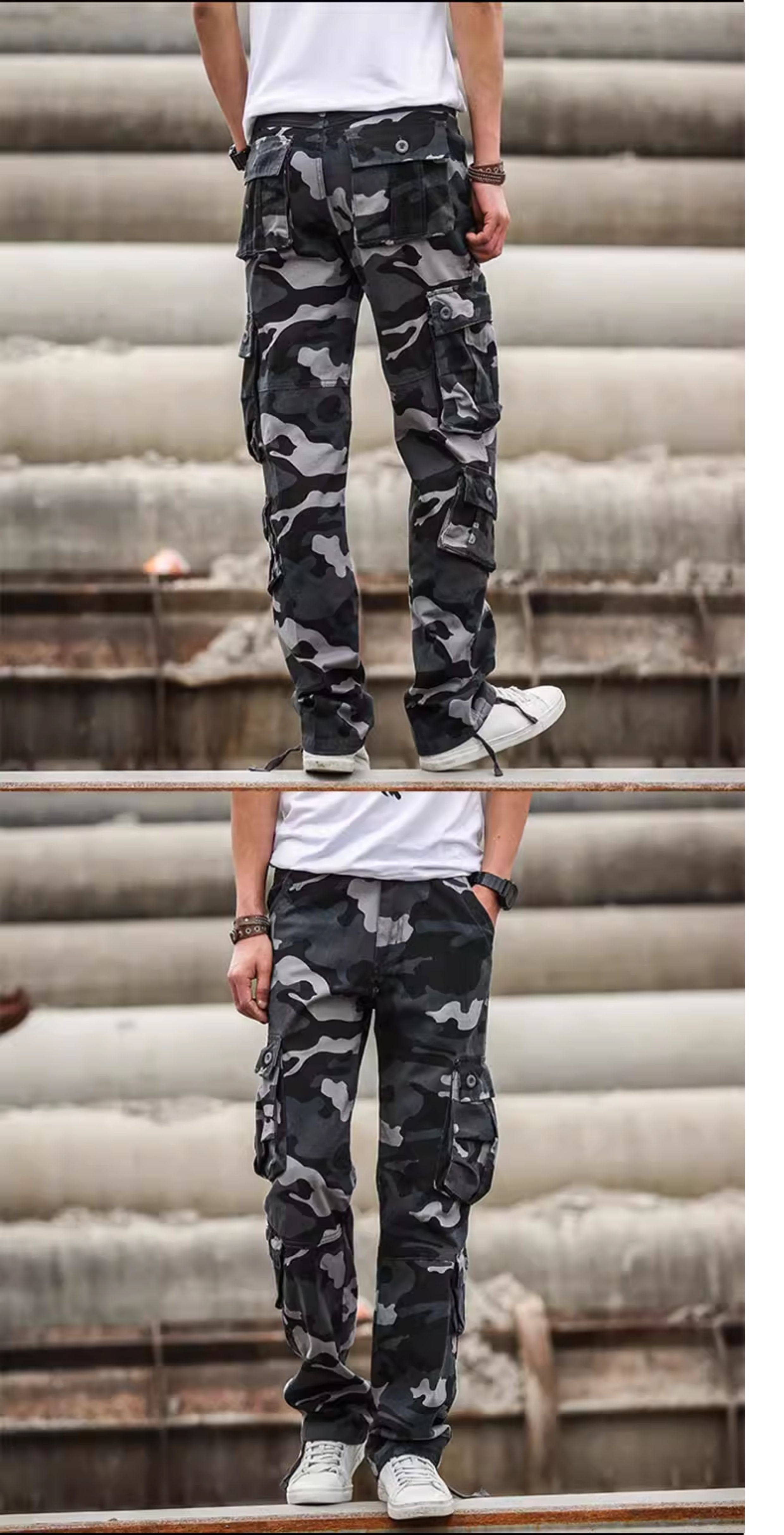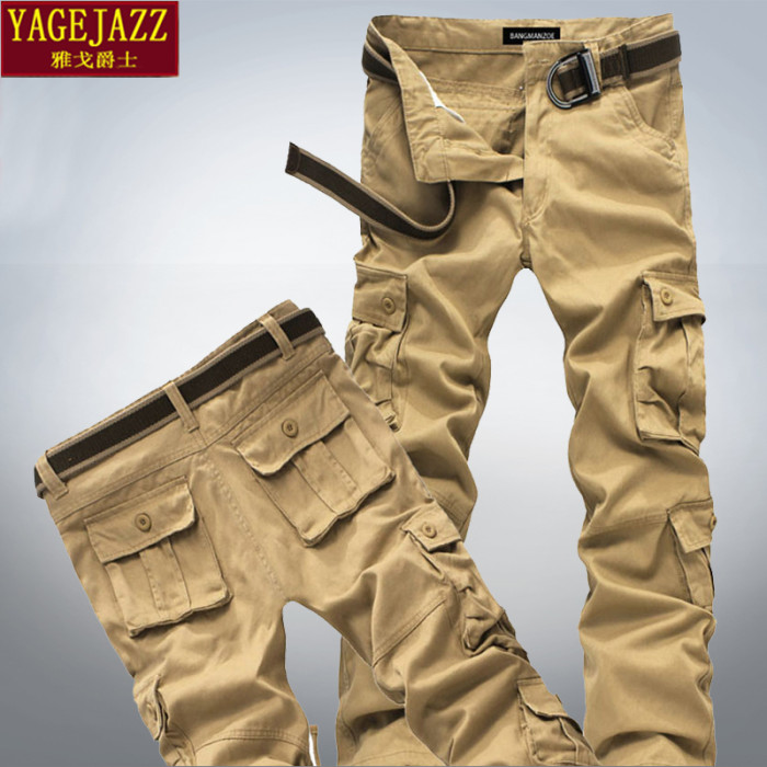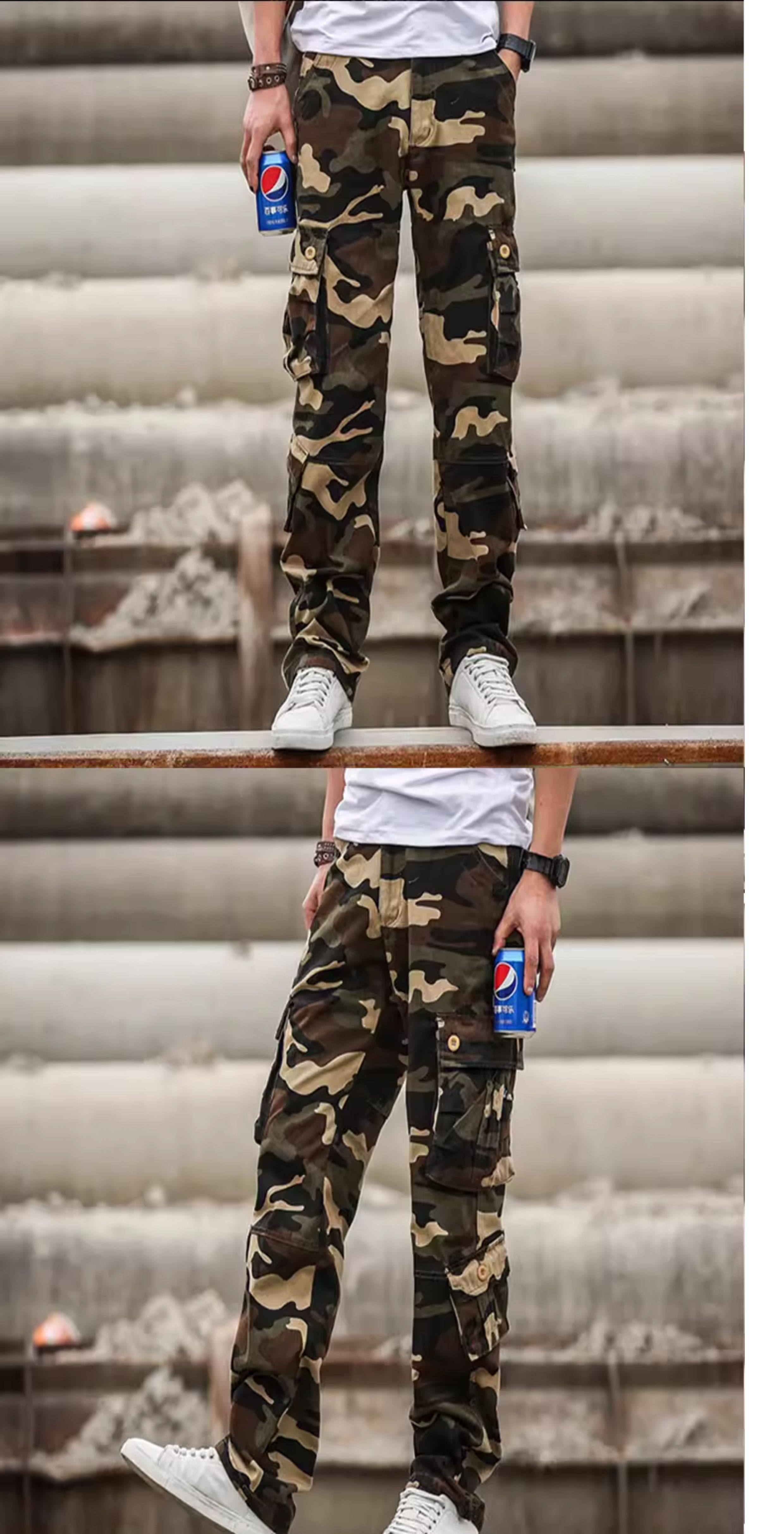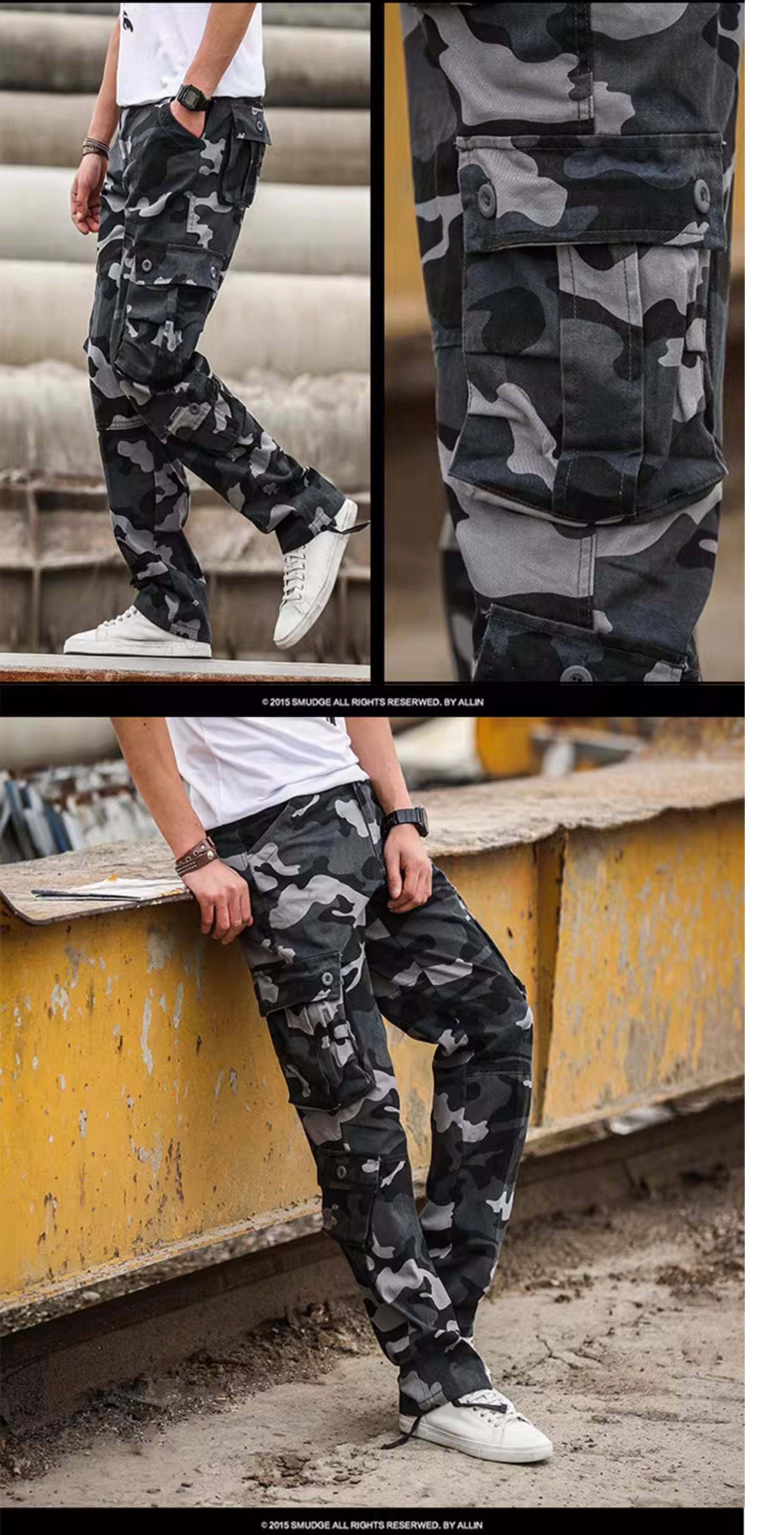 純棉多口袋工裝褲迷彩長褲運動褲男士寬鬆加大碼耐磨全棉休閒褲潮