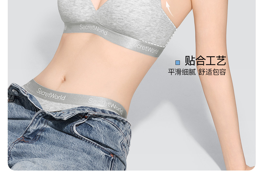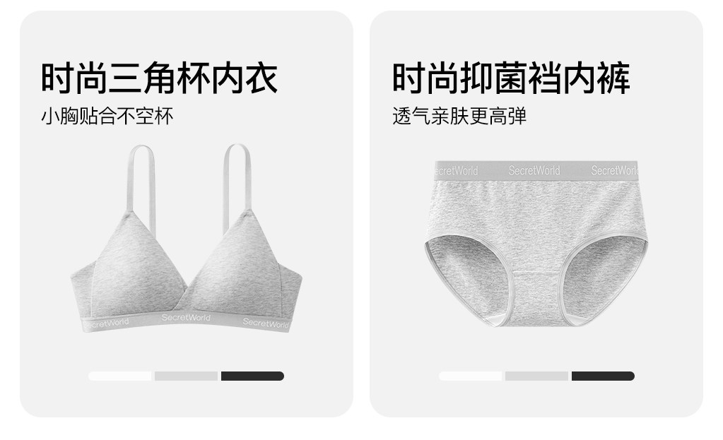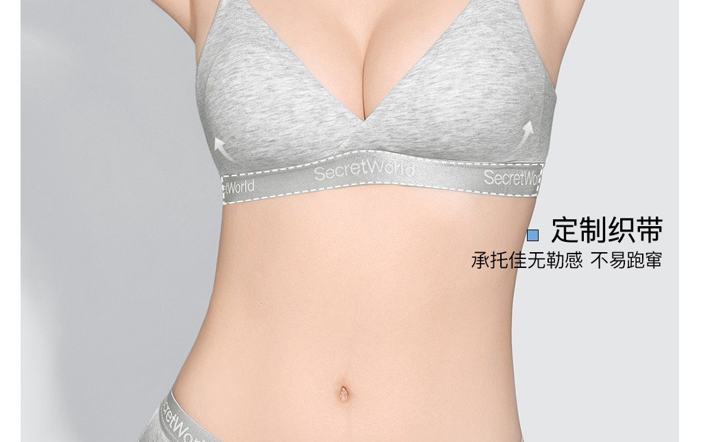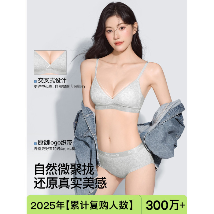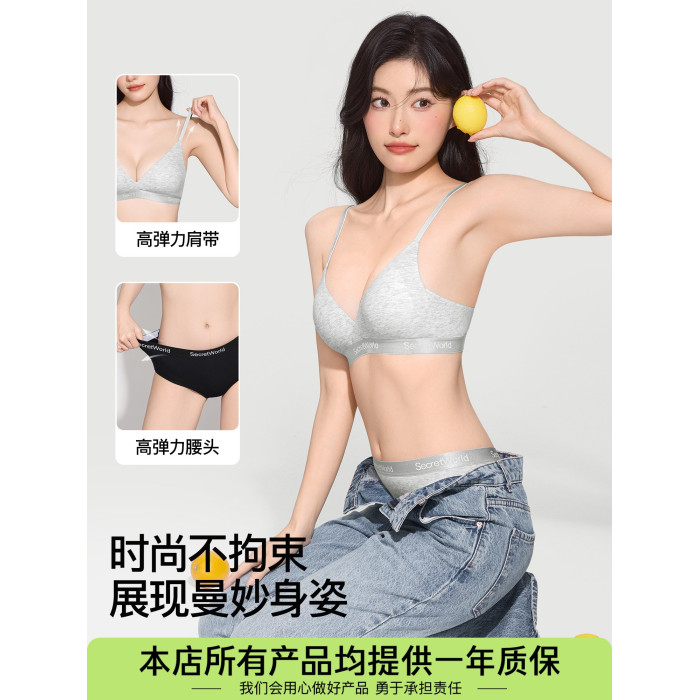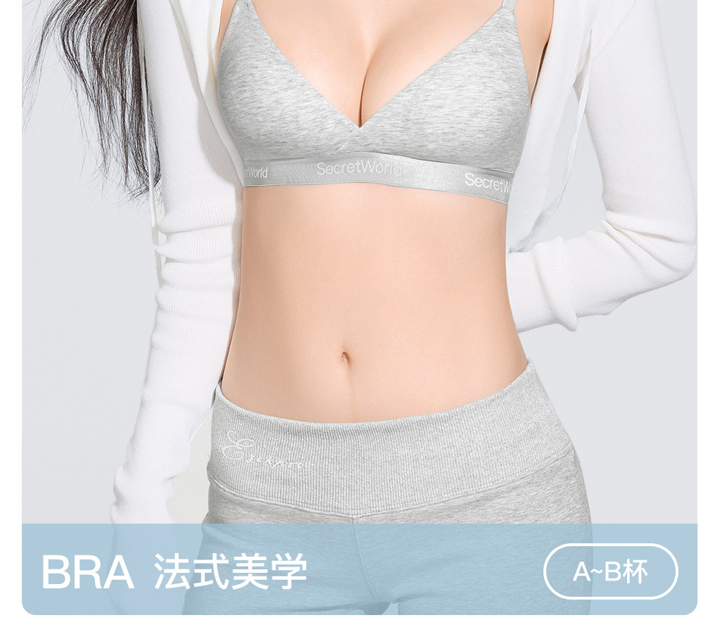 SecretWorld法式三角杯內衣女薄款小胸聚攏灰運動套裝無痕文胸罩