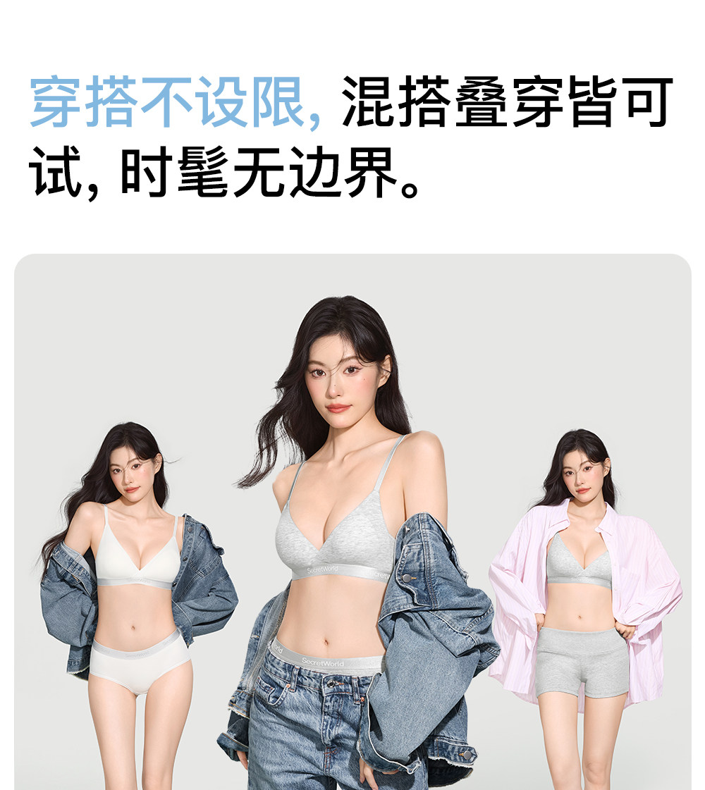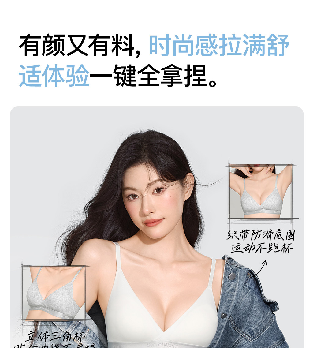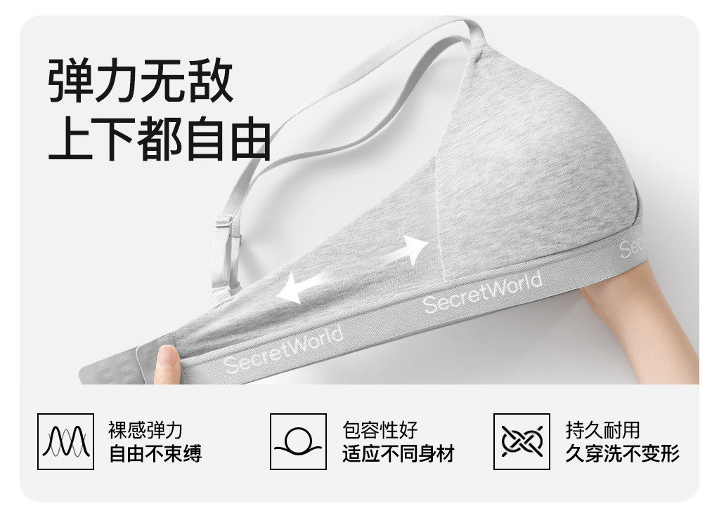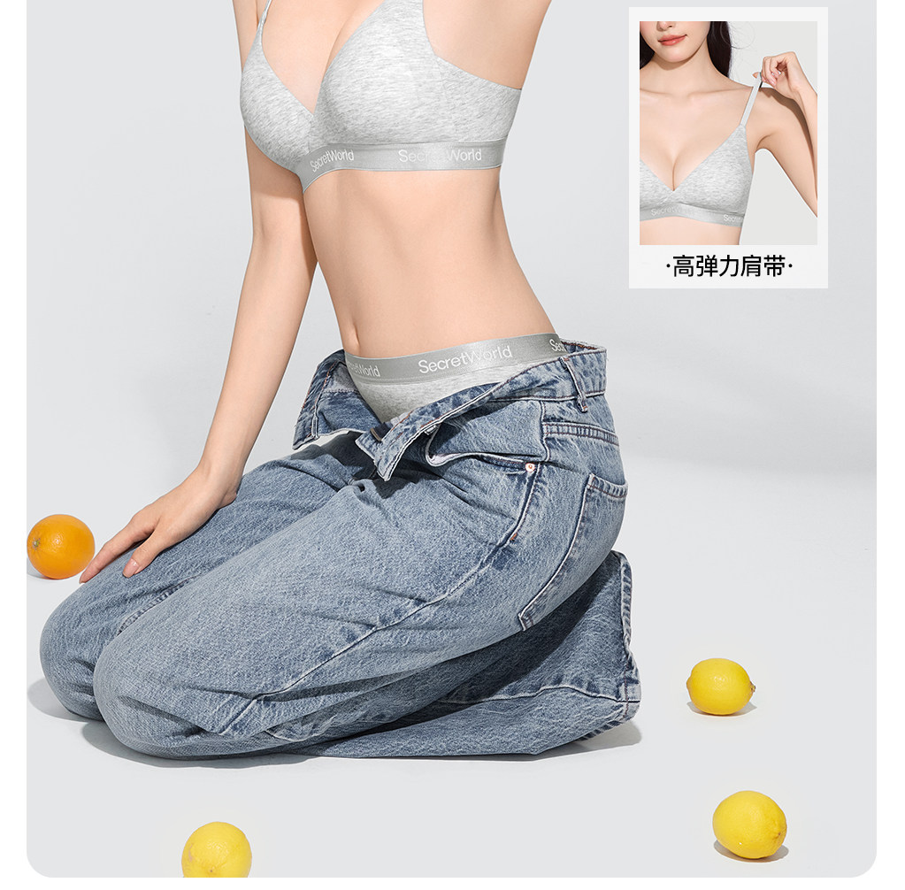 SecretWorld法式三角杯內衣女薄款小胸聚攏灰運動套裝無痕文胸罩