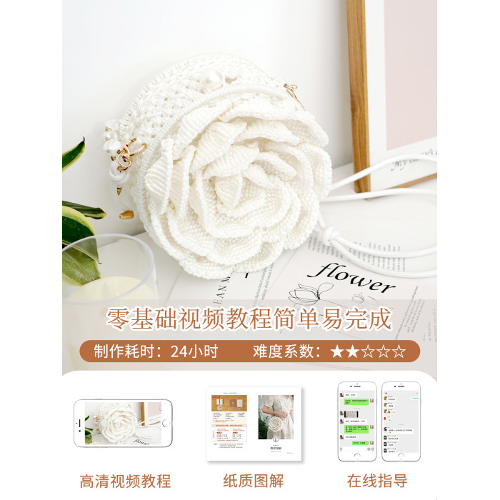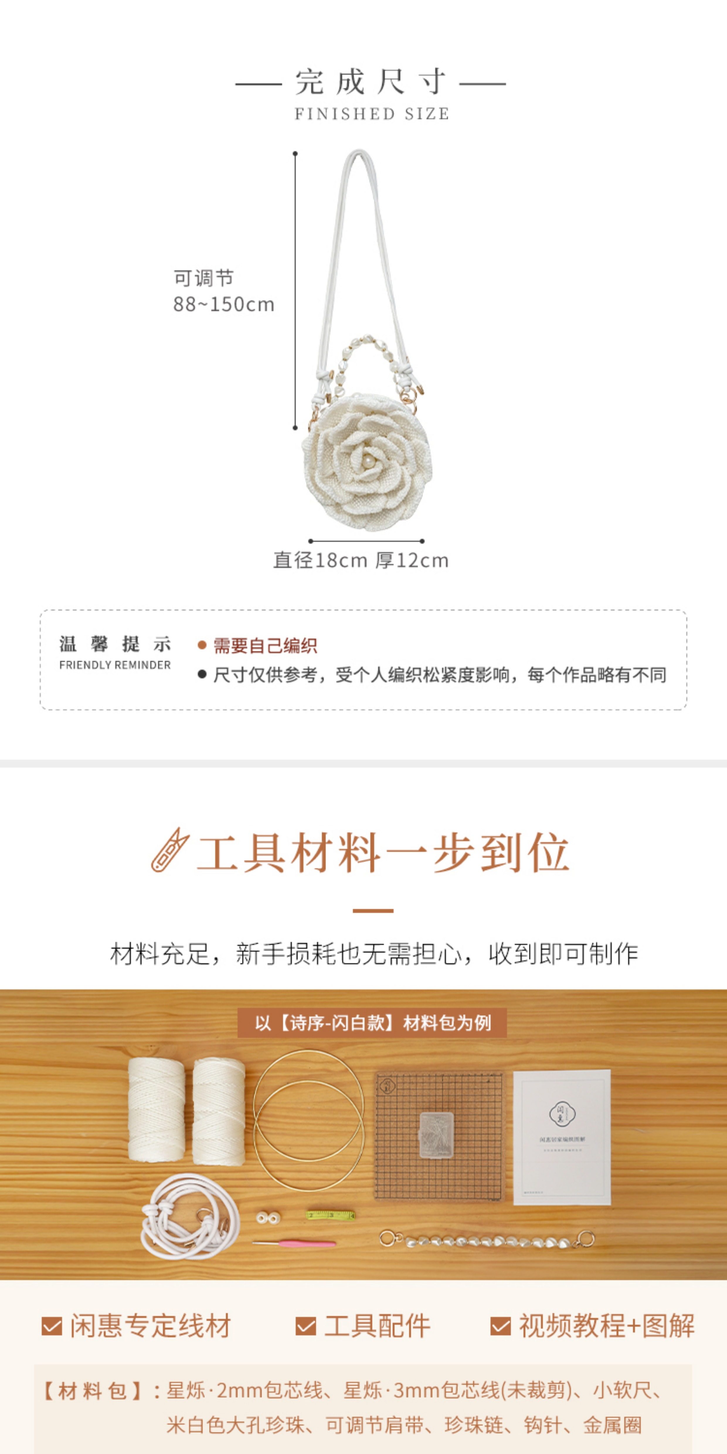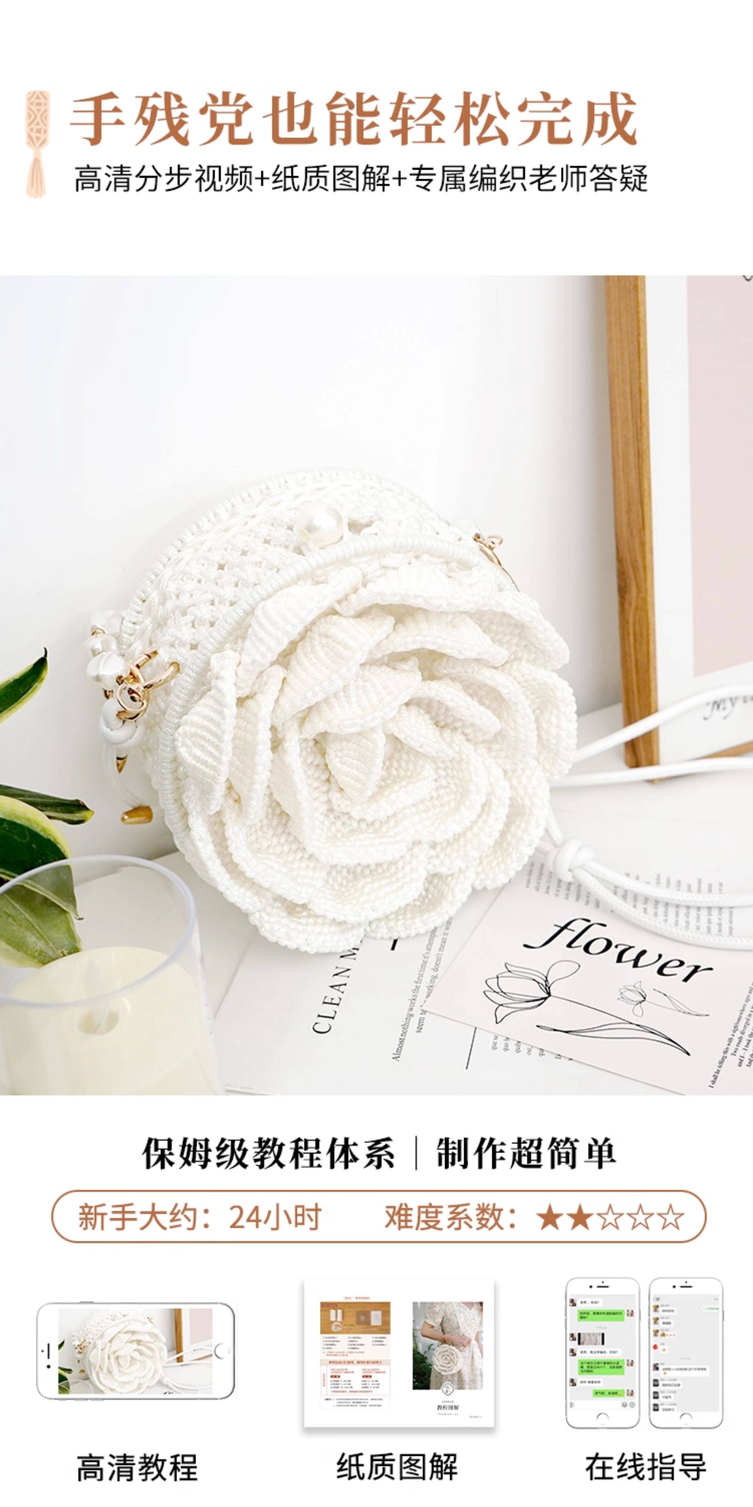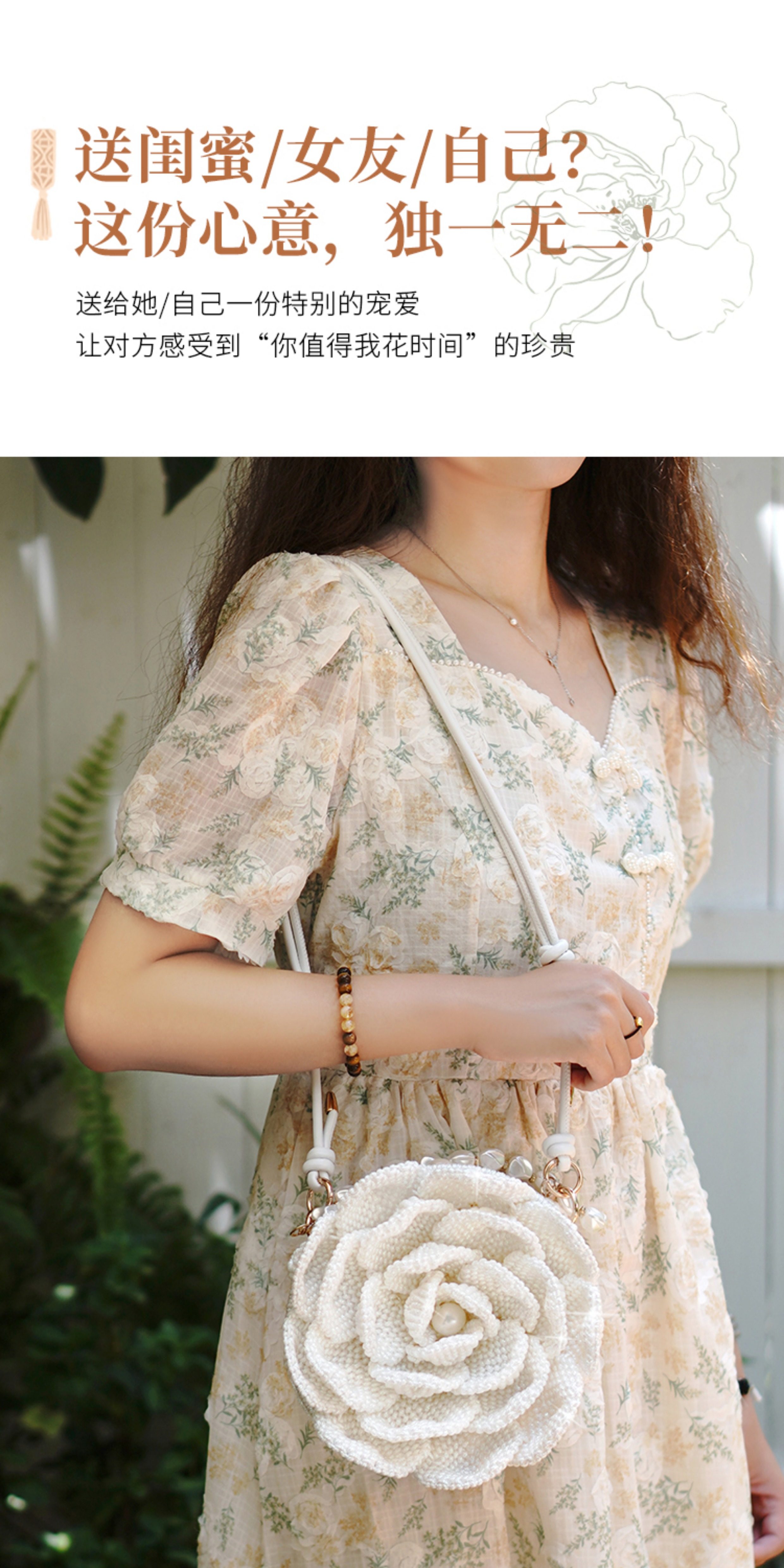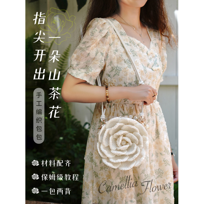 閒惠居家詩序山茶花手工編織包包diy自製材料包毛線女單肩手提包
