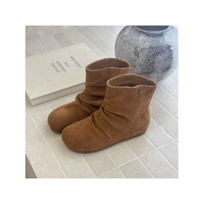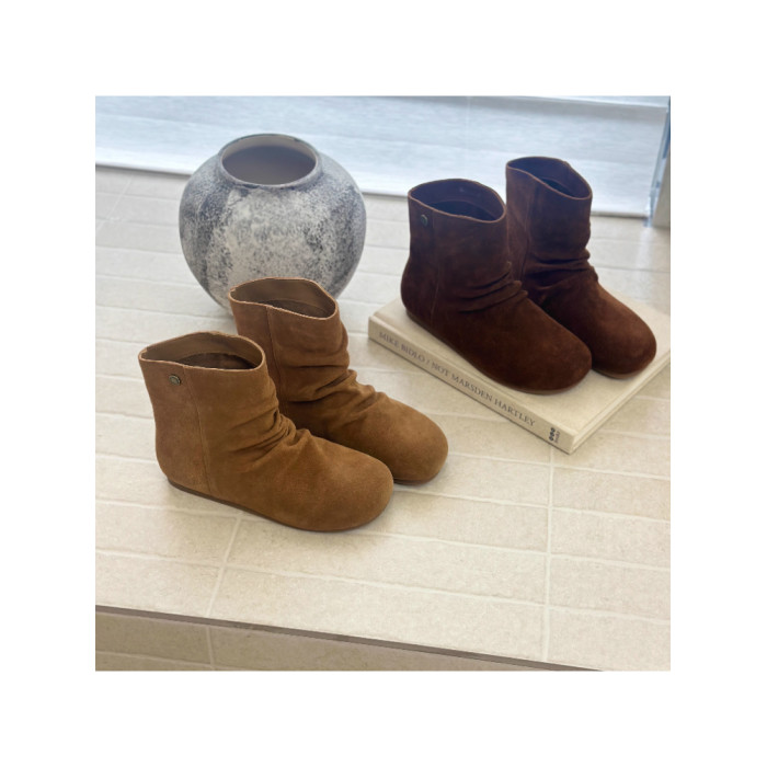 嘟小嘟磨砂褶皺堆堆靴女2025秋季新款時尚百搭輕便增高休閒短靴潮