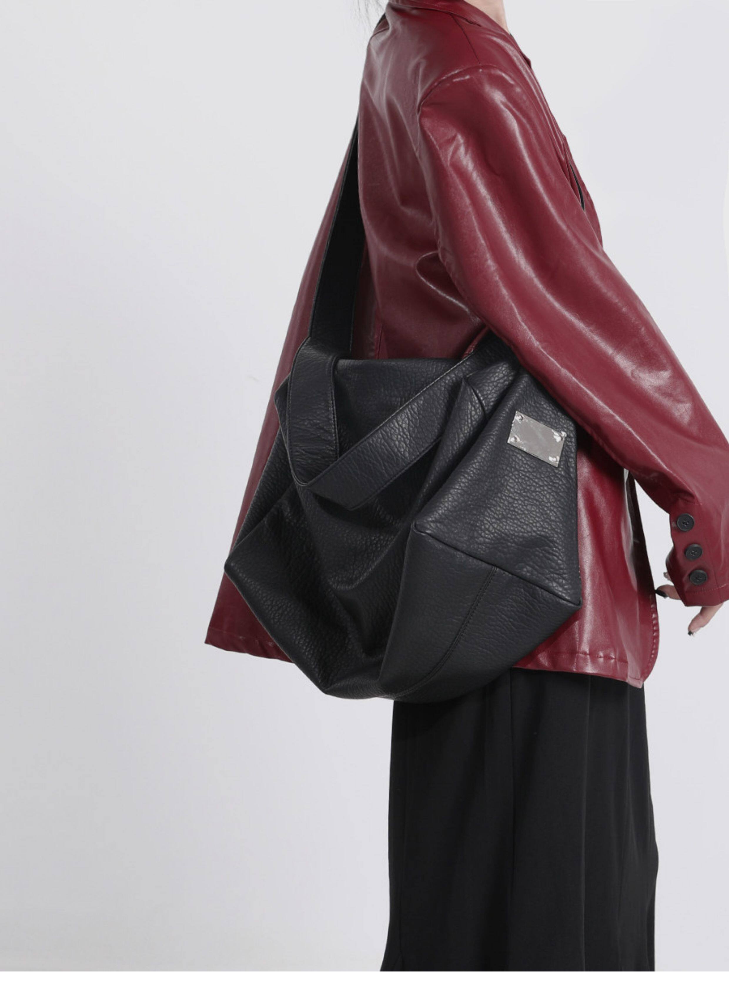 木川卡 小衆設計斜後後背包潮牌機車包時尚軟皮大容量通勤單肩包新款
