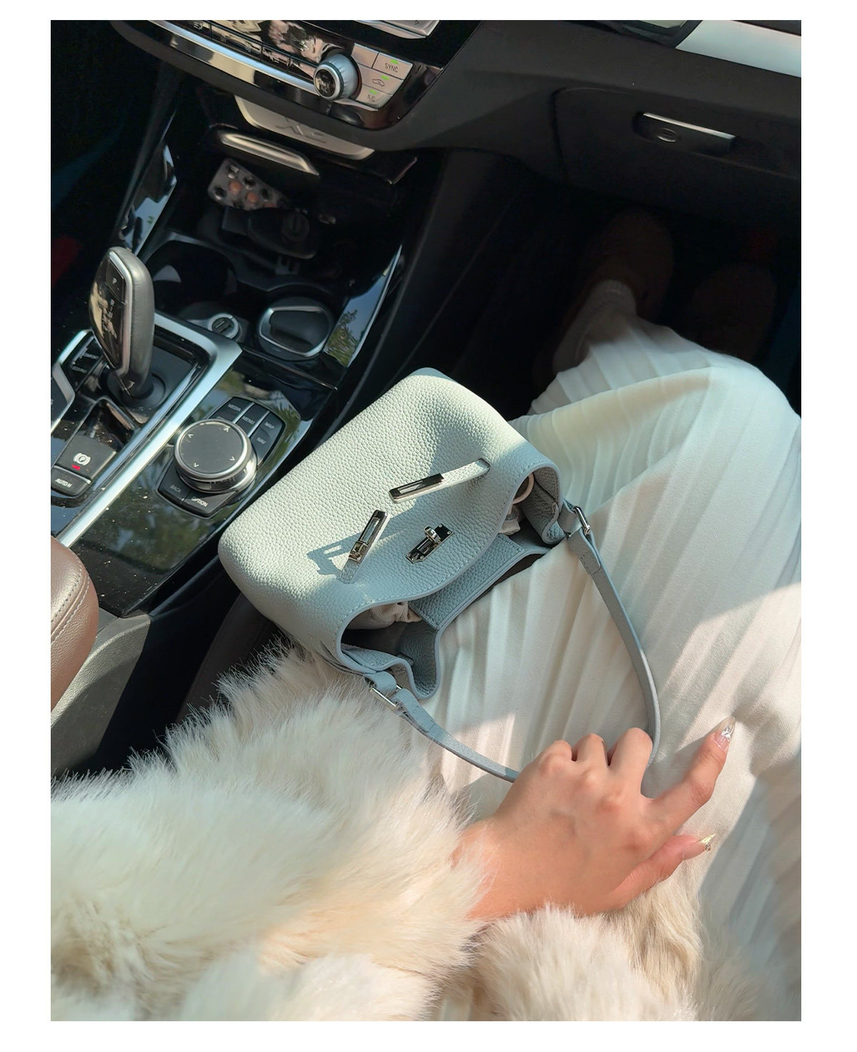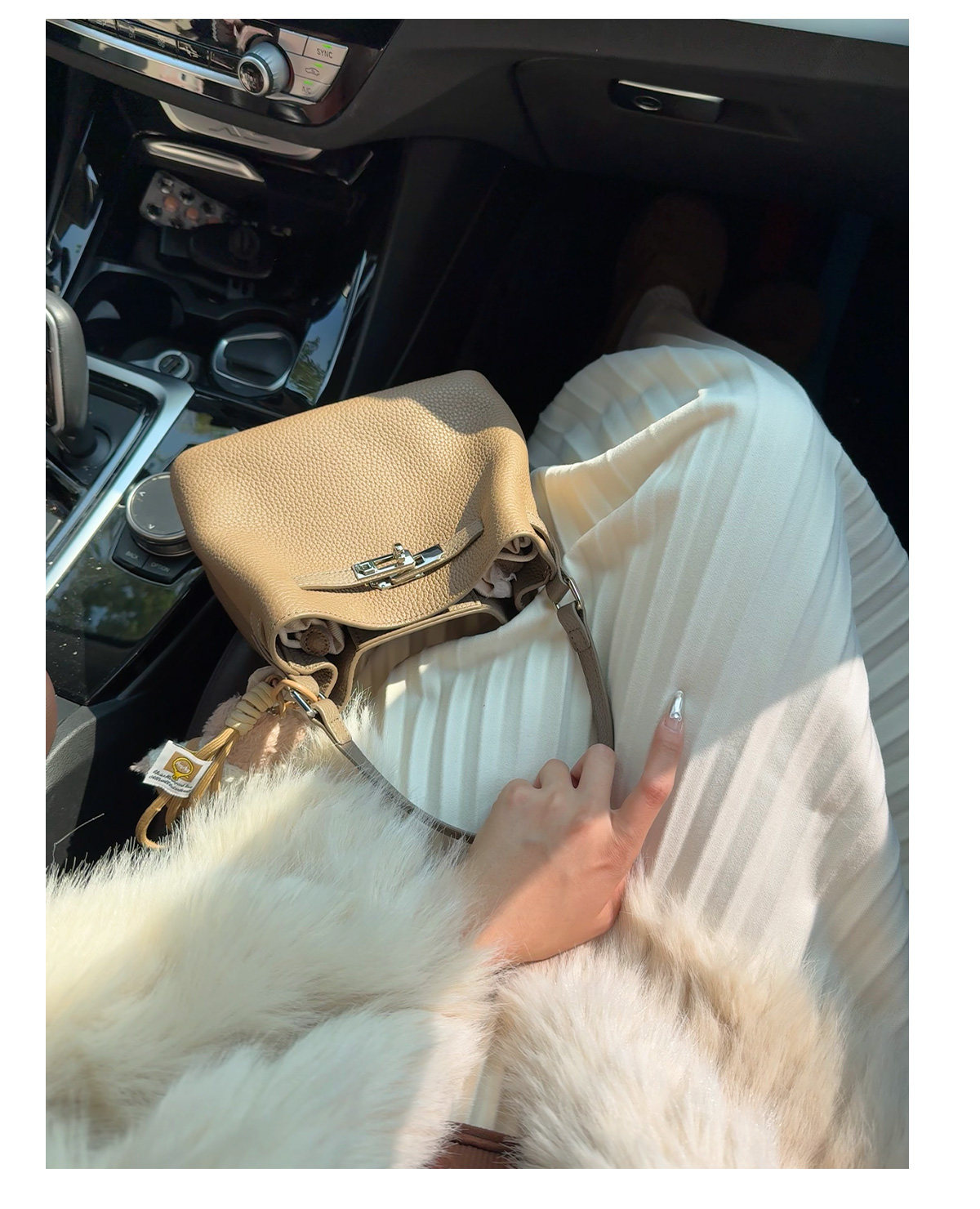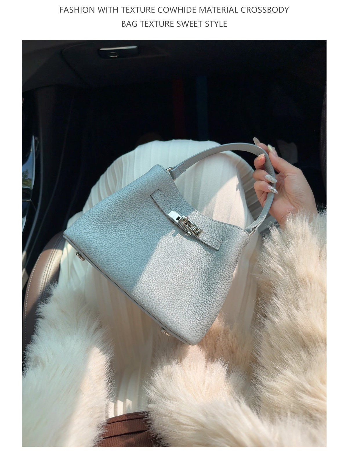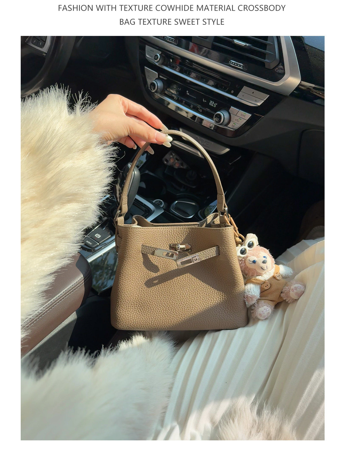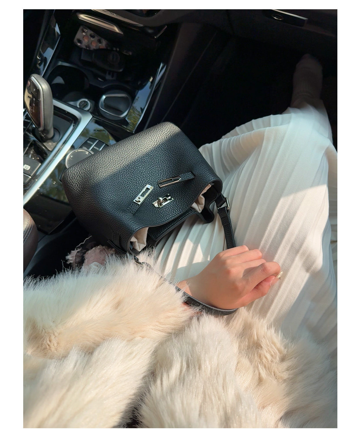 小衆頭層牛皮托特包女通勤百搭手提水桶包高級感單肩斜背菜籃子包