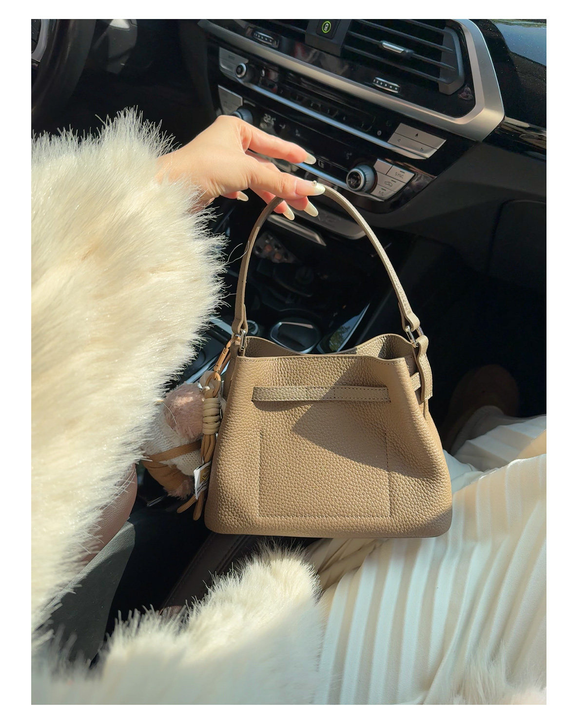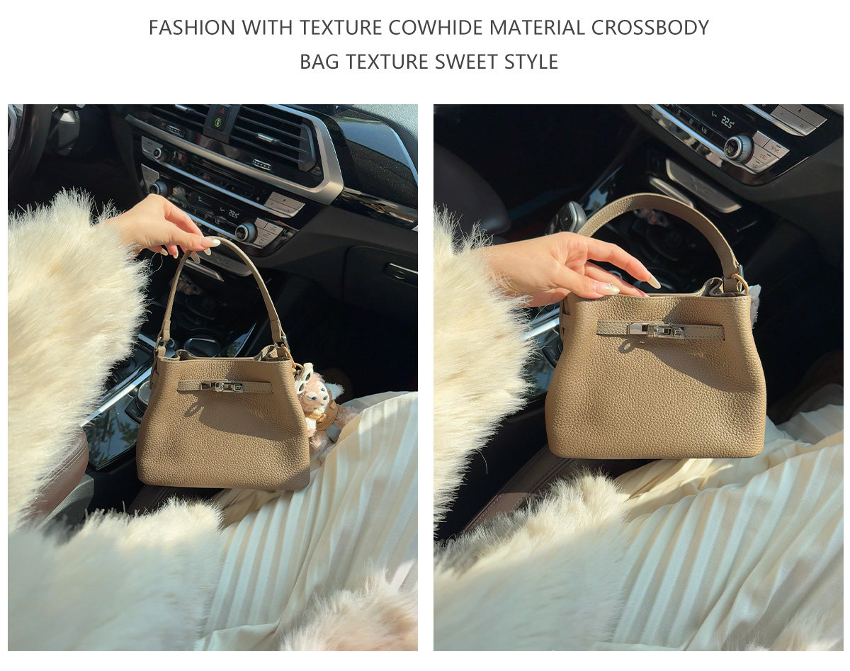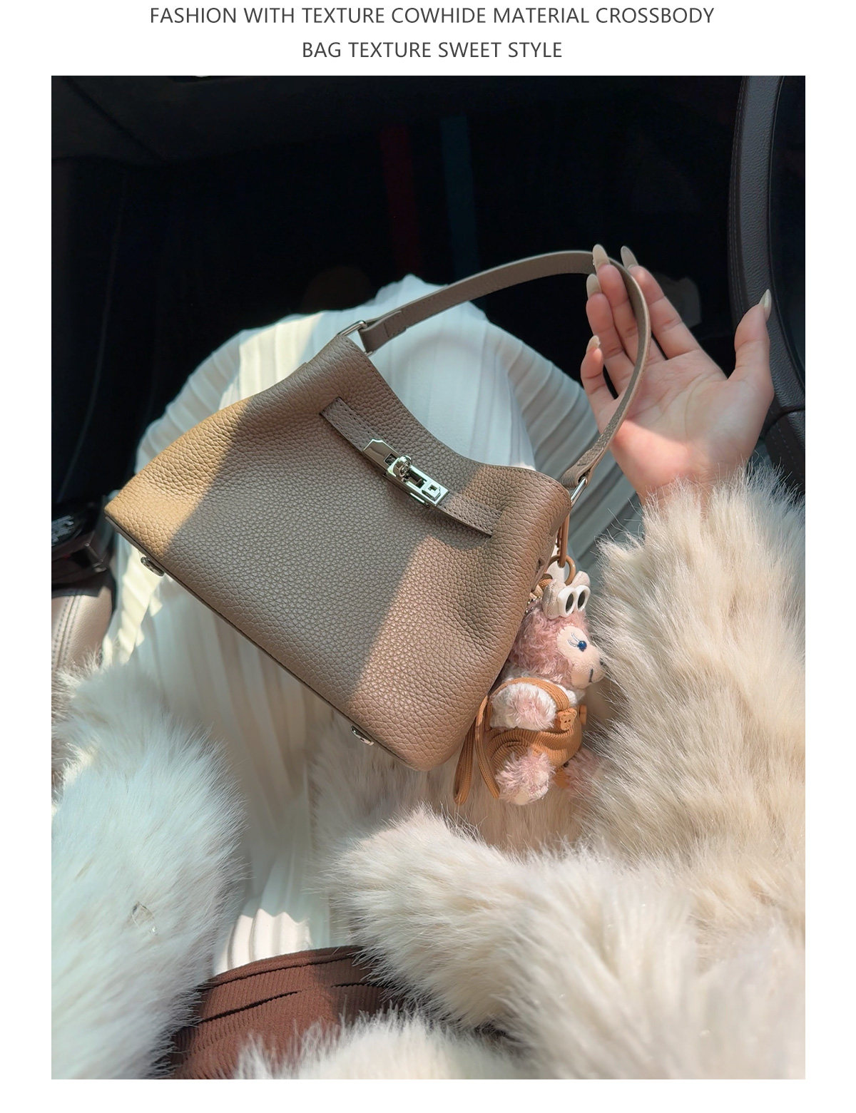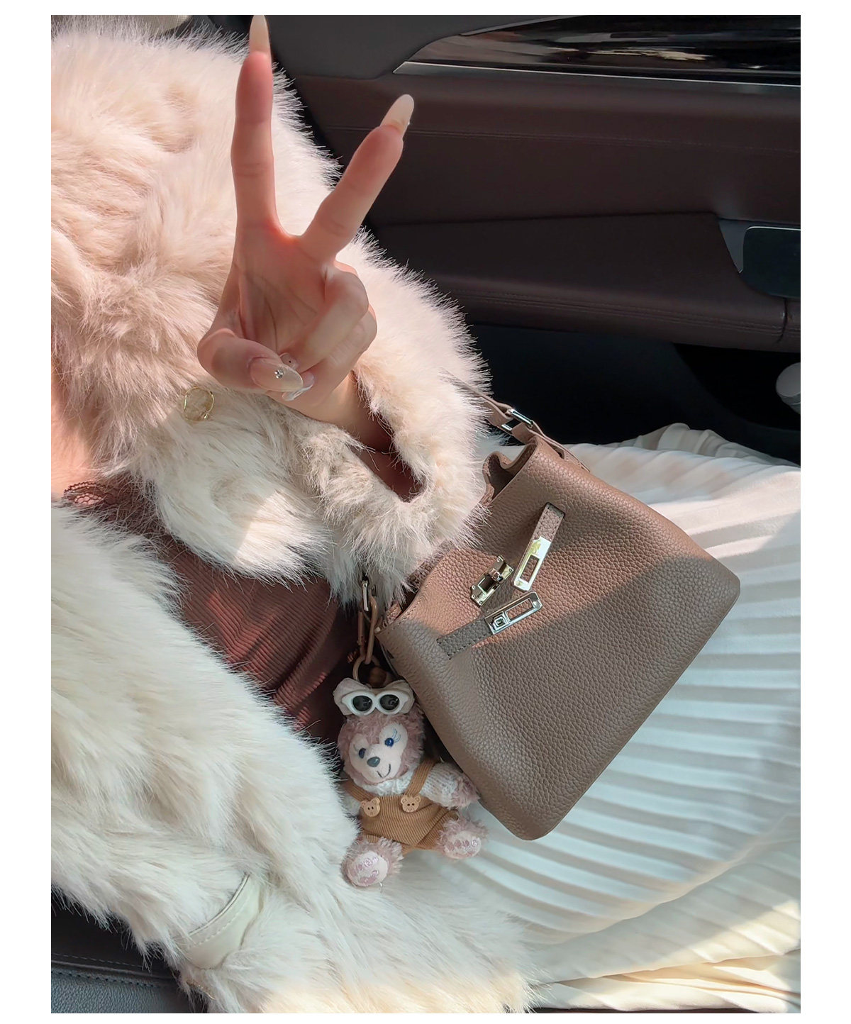 小衆頭層牛皮托特包女通勤百搭手提水桶包高級感單肩斜背菜籃子包