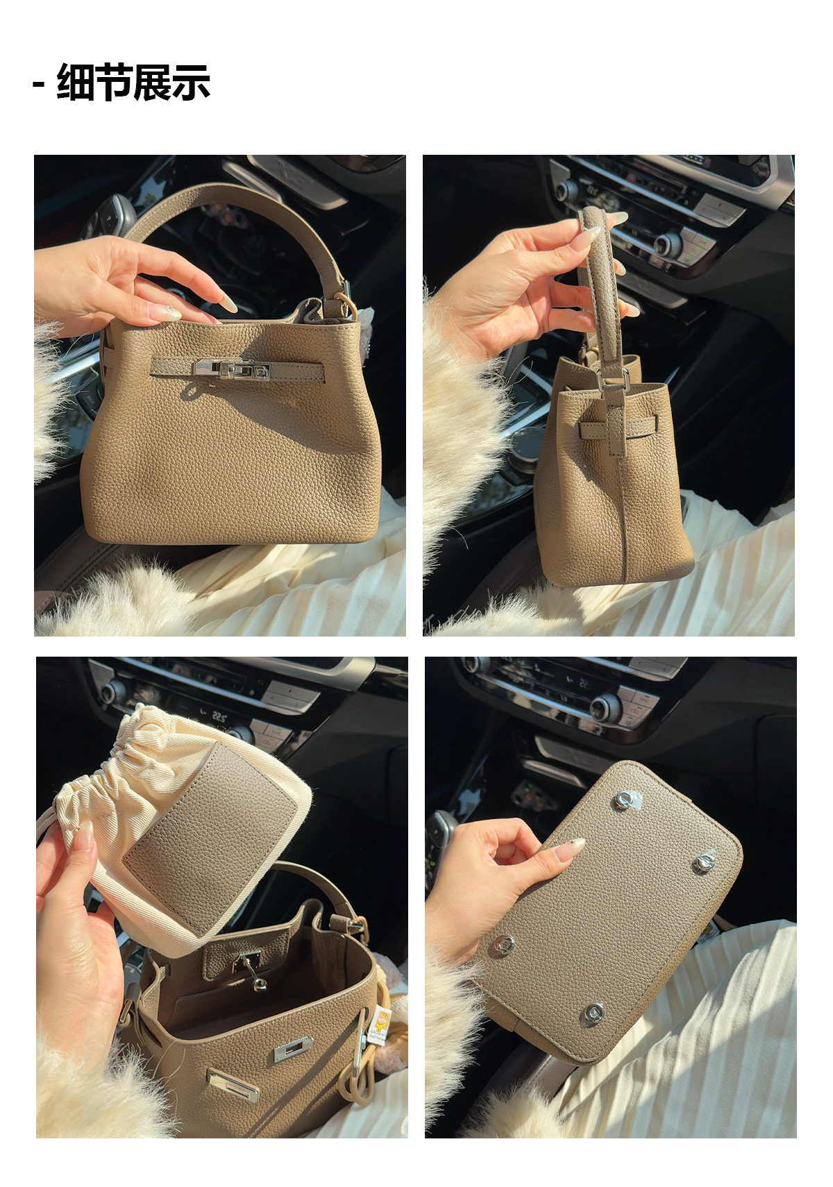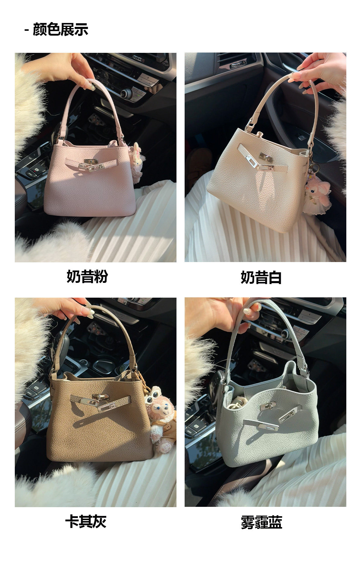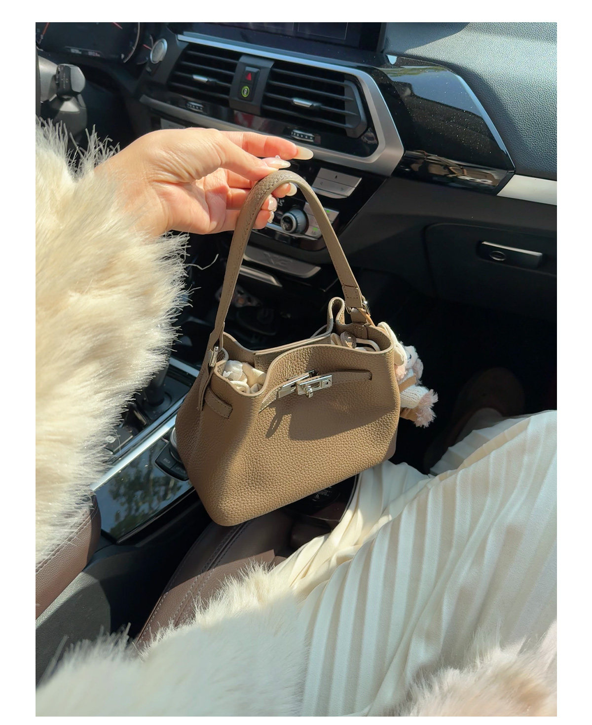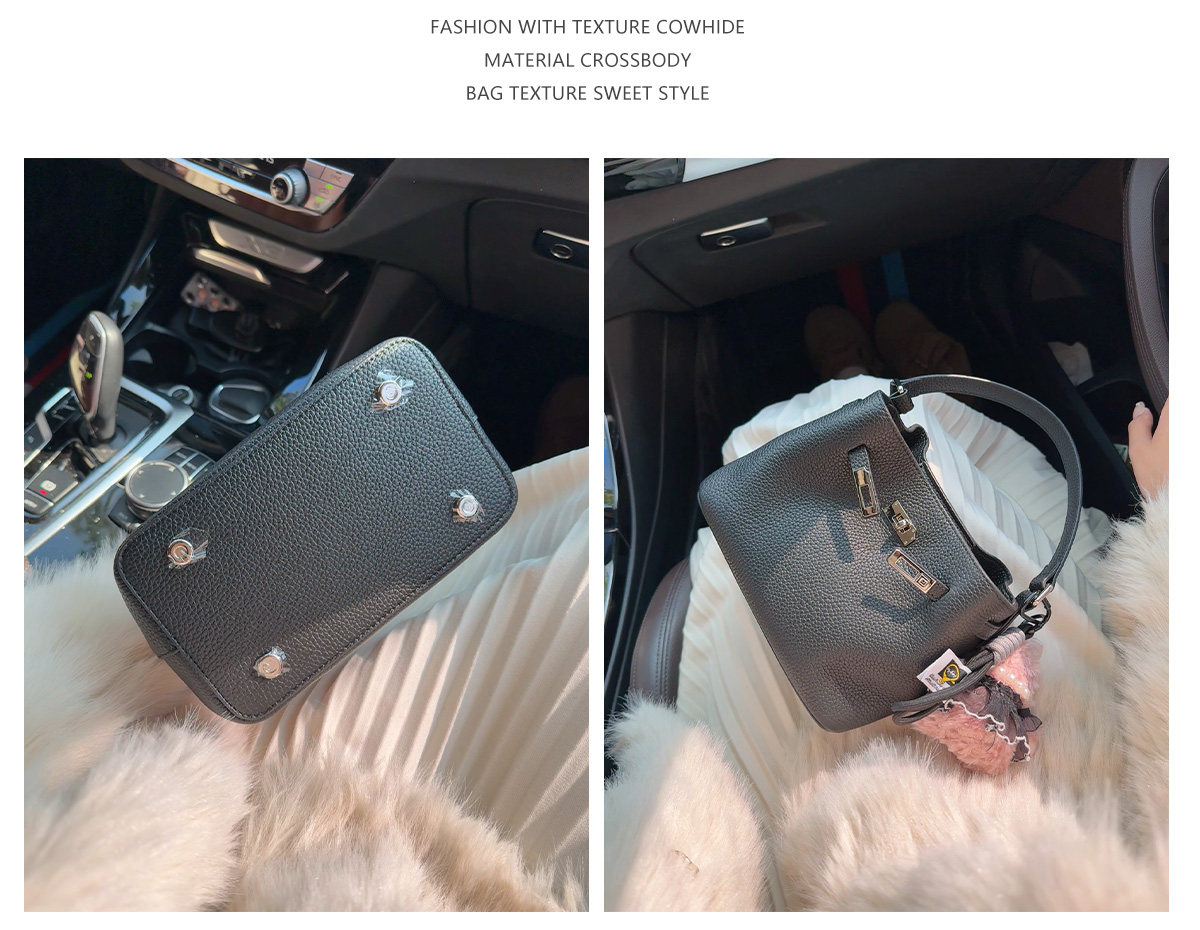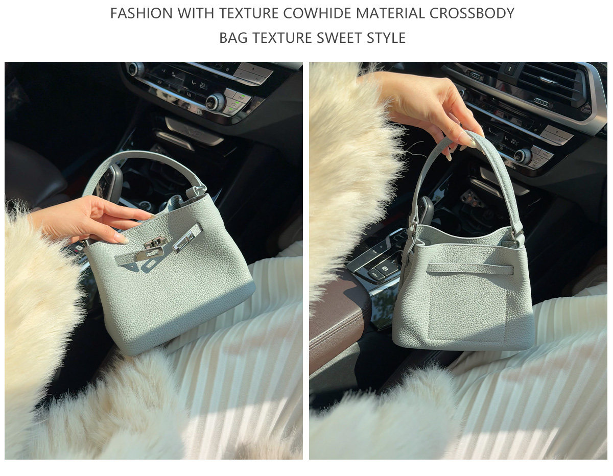 小衆頭層牛皮托特包女通勤百搭手提水桶包高級感單肩斜背菜籃子包