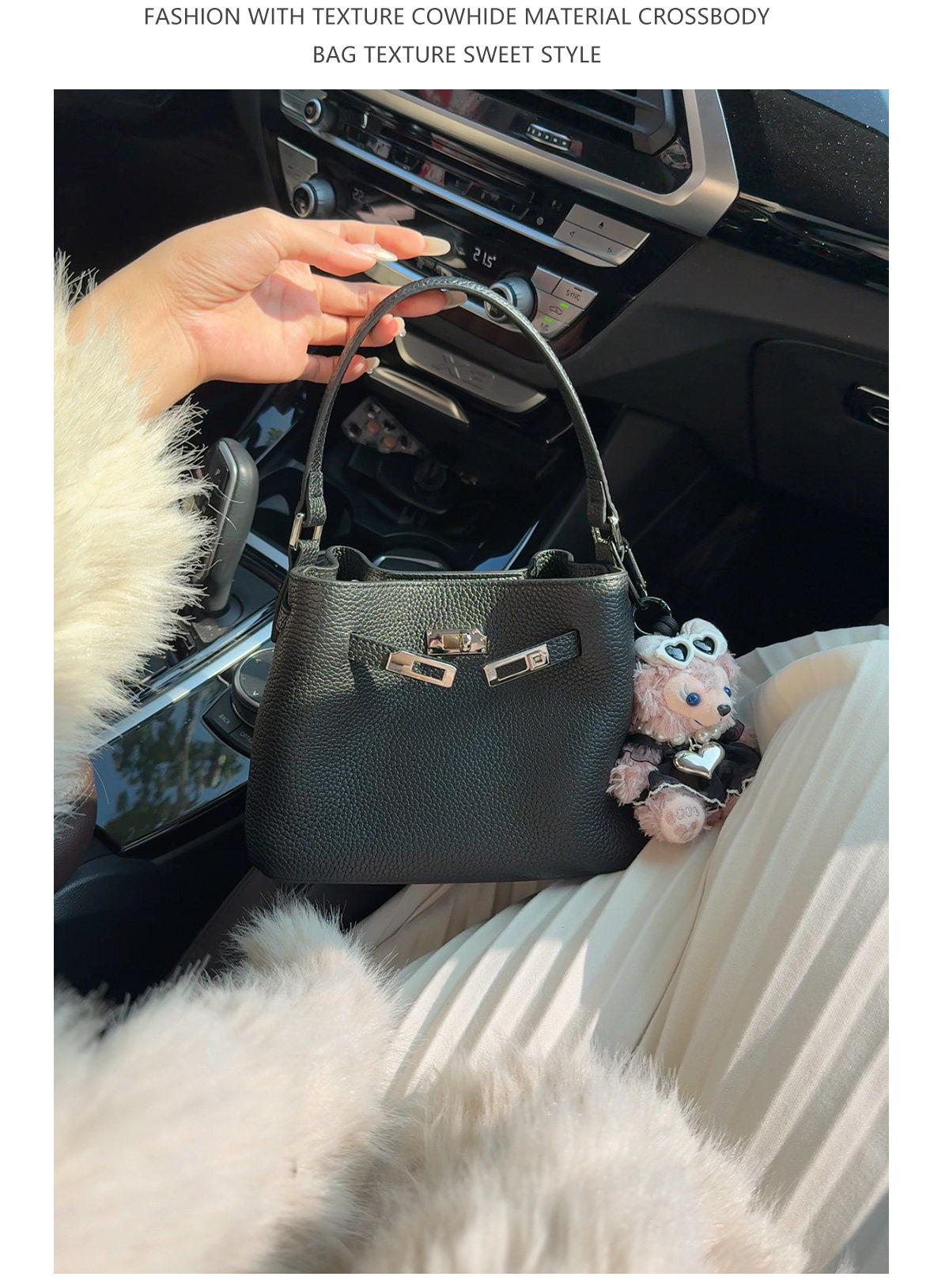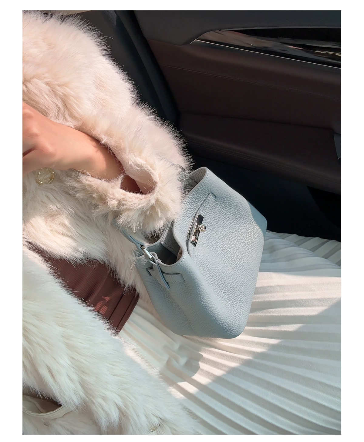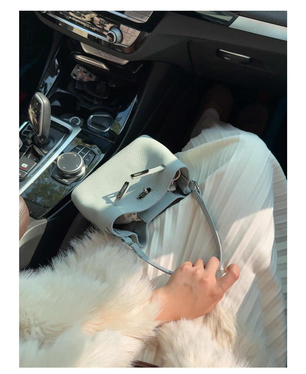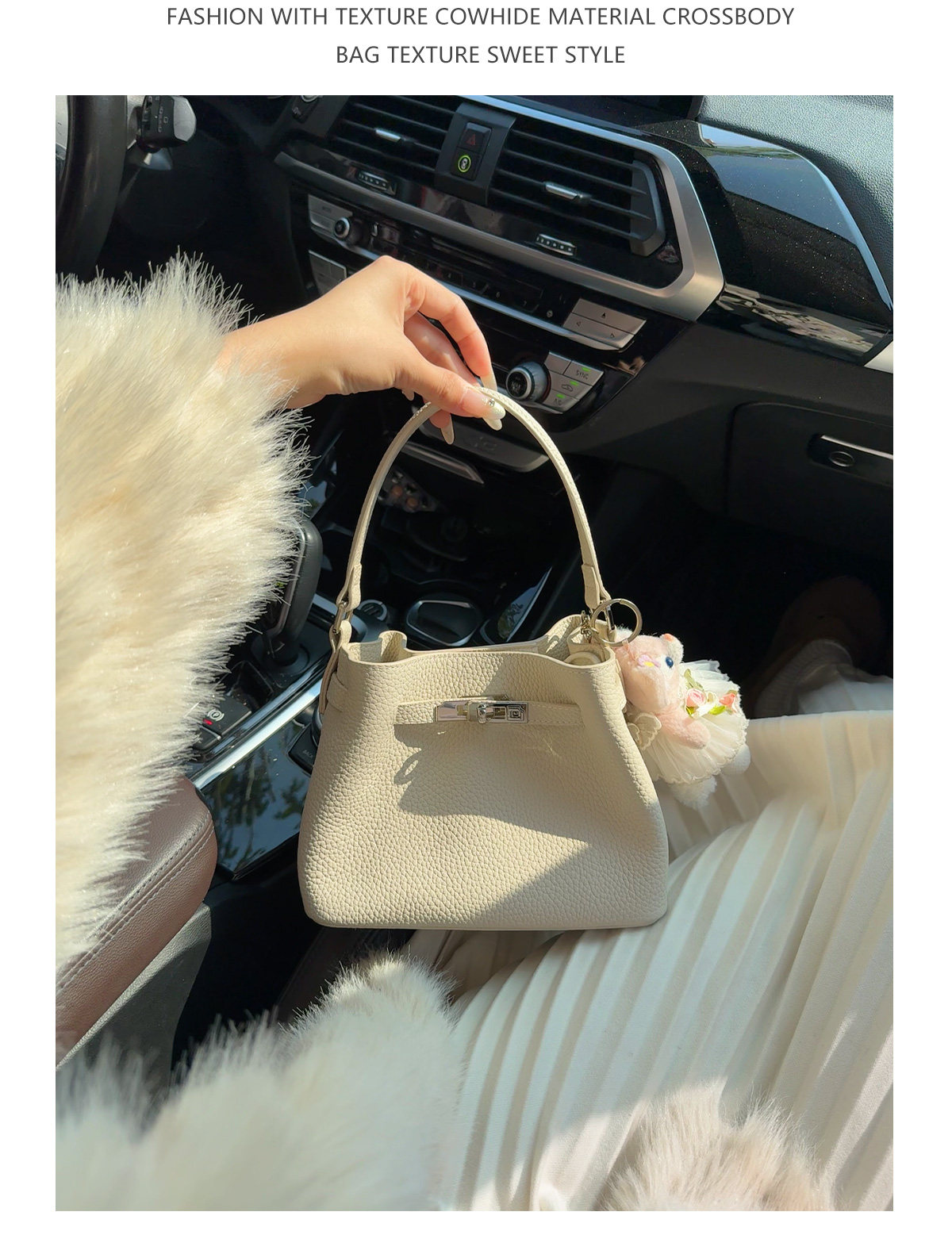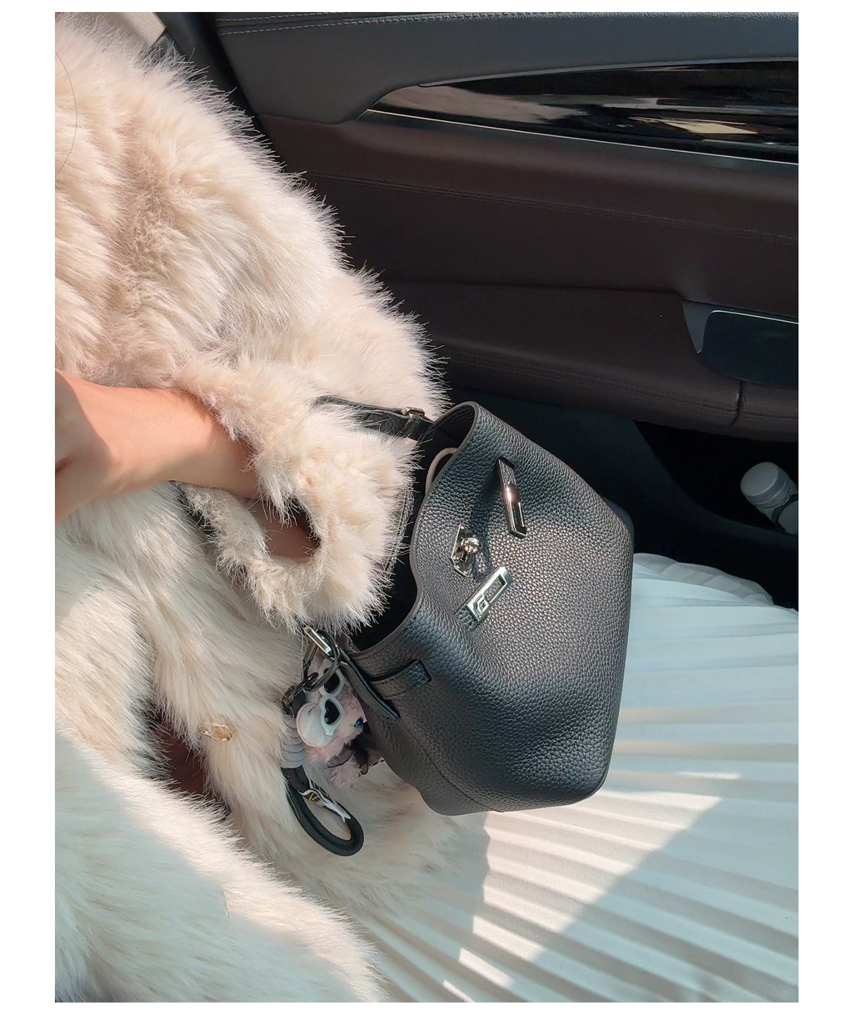 小衆頭層牛皮托特包女通勤百搭手提水桶包高級感單肩斜背菜籃子包