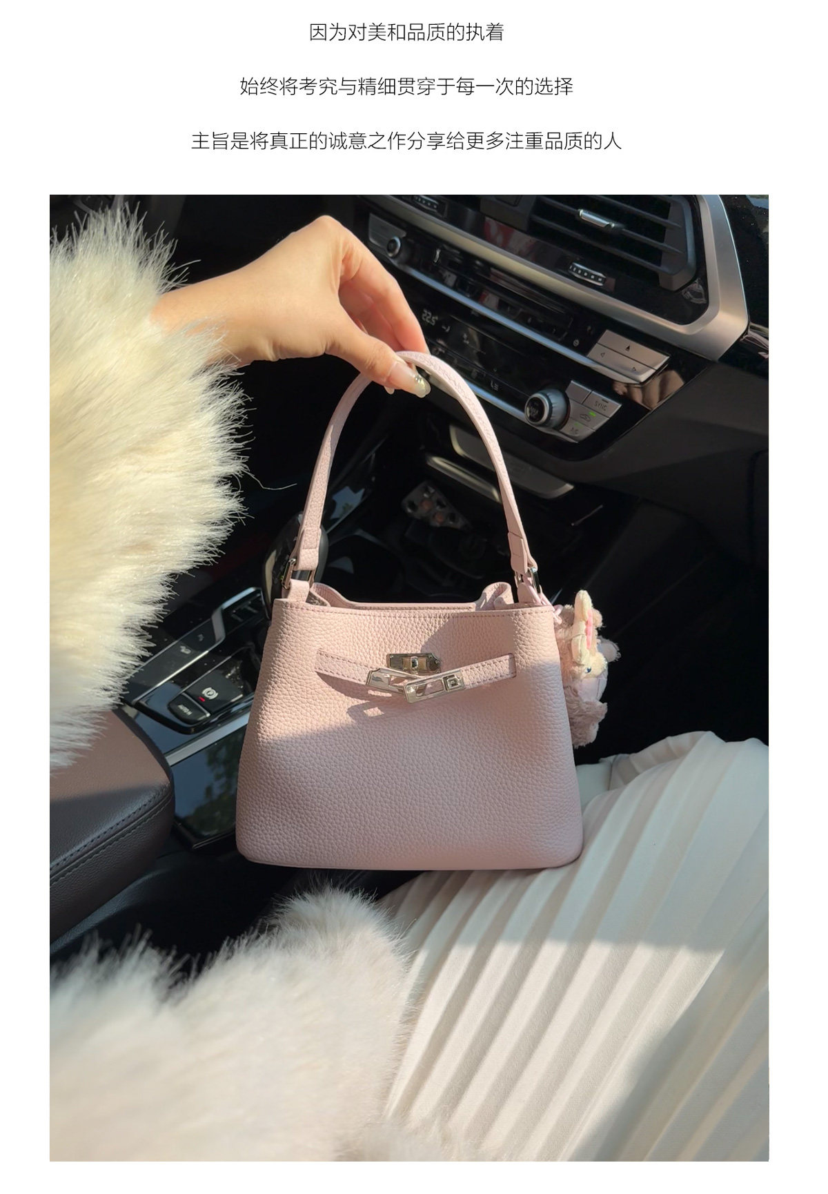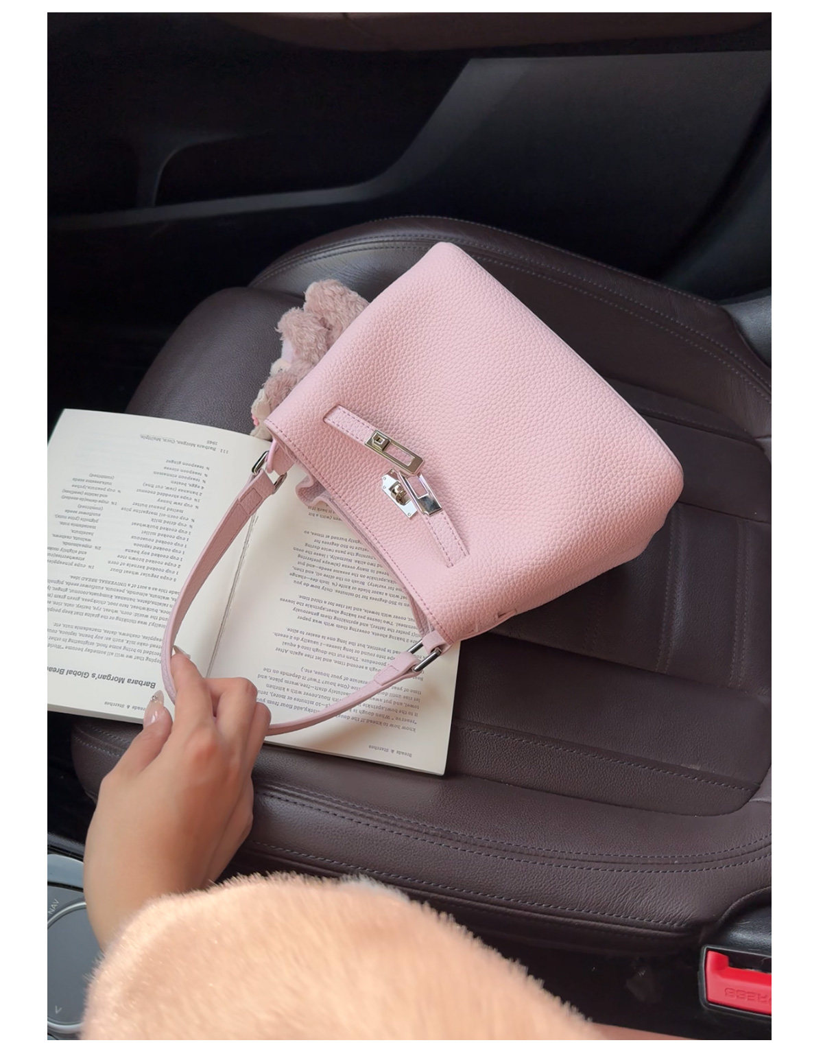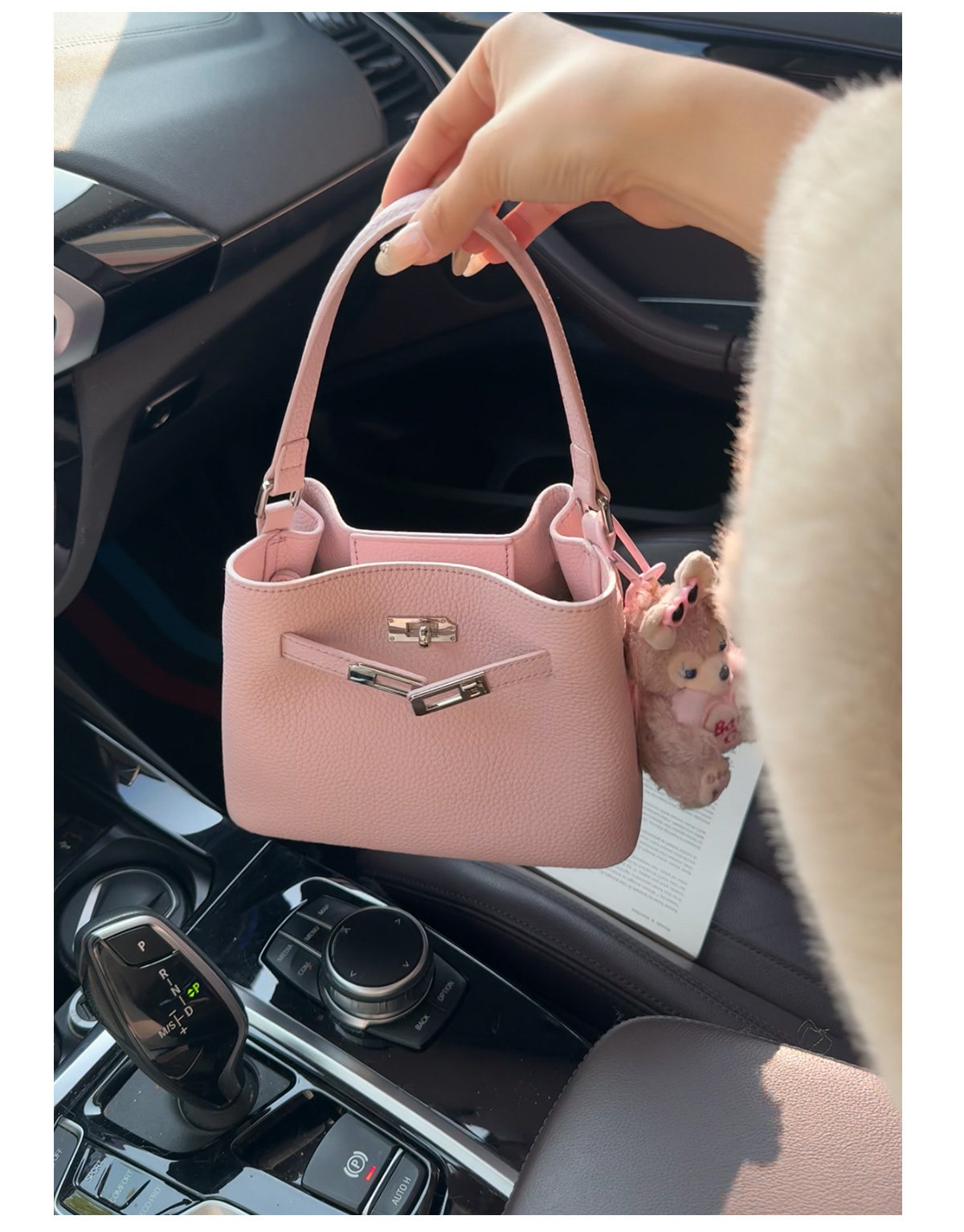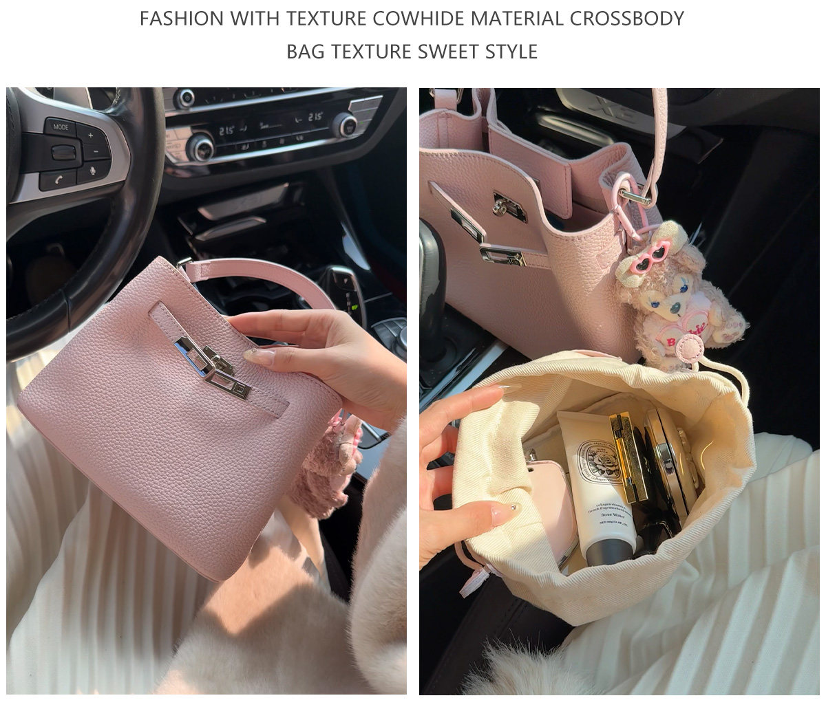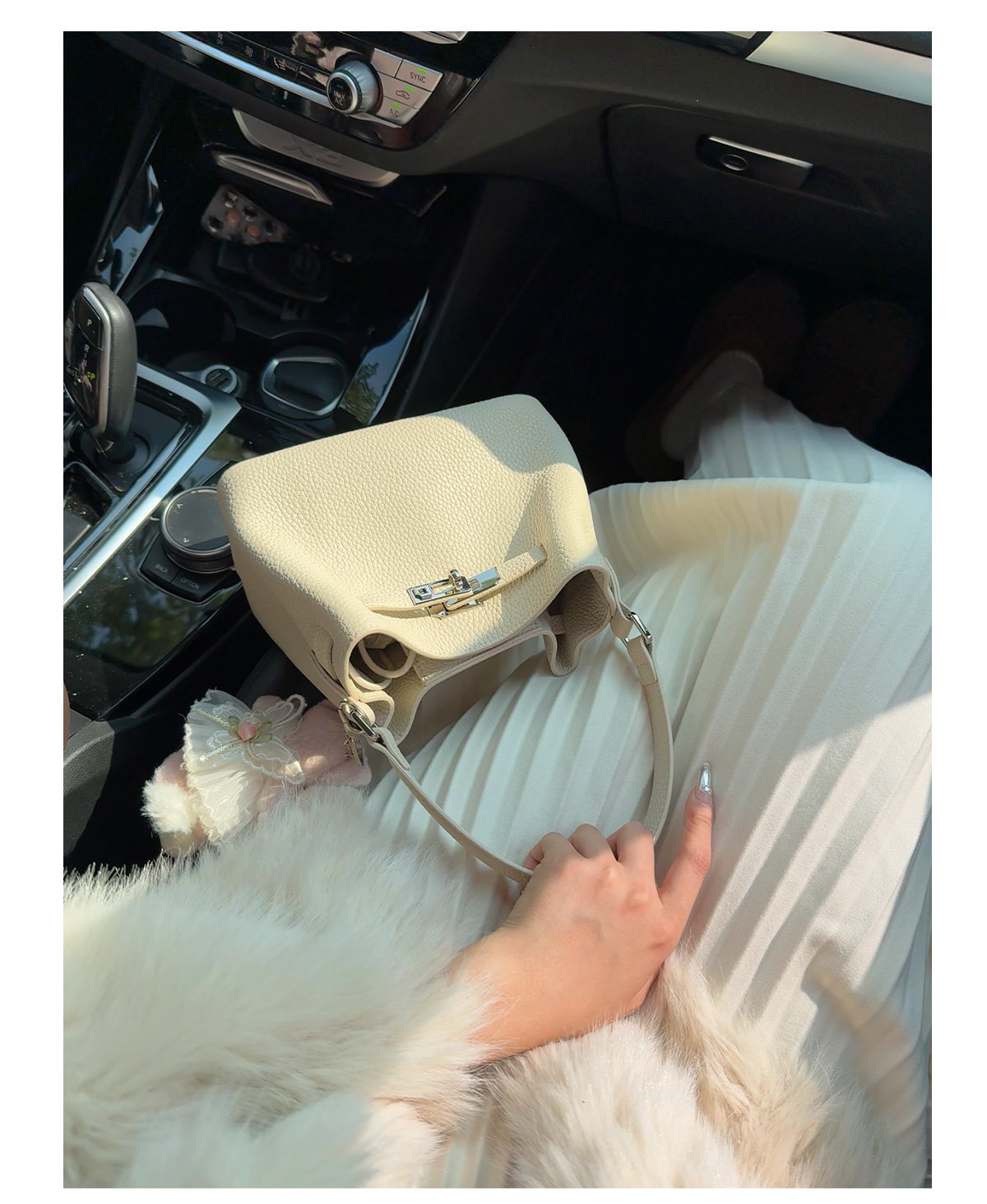 小衆頭層牛皮托特包女通勤百搭手提水桶包高級感單肩斜背菜籃子包