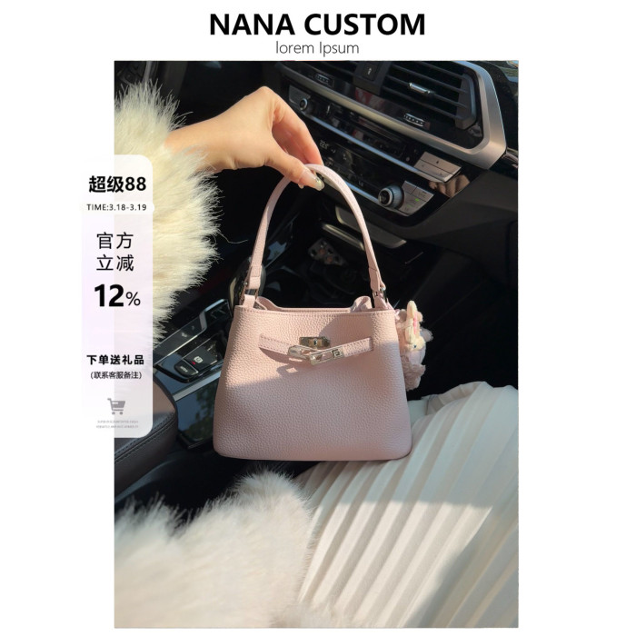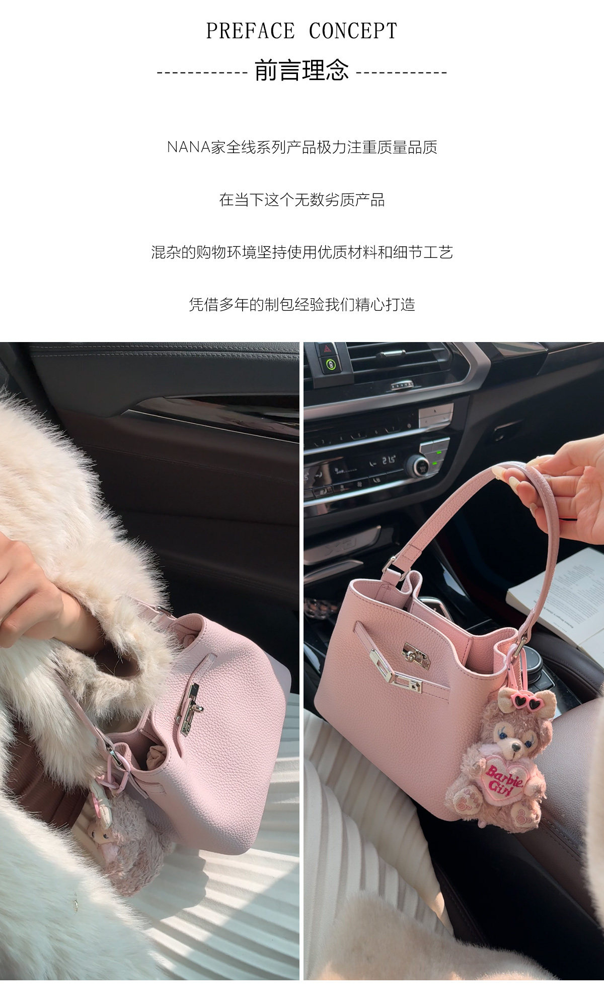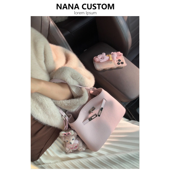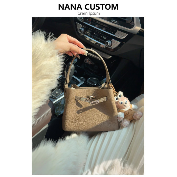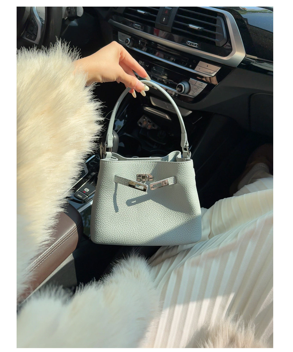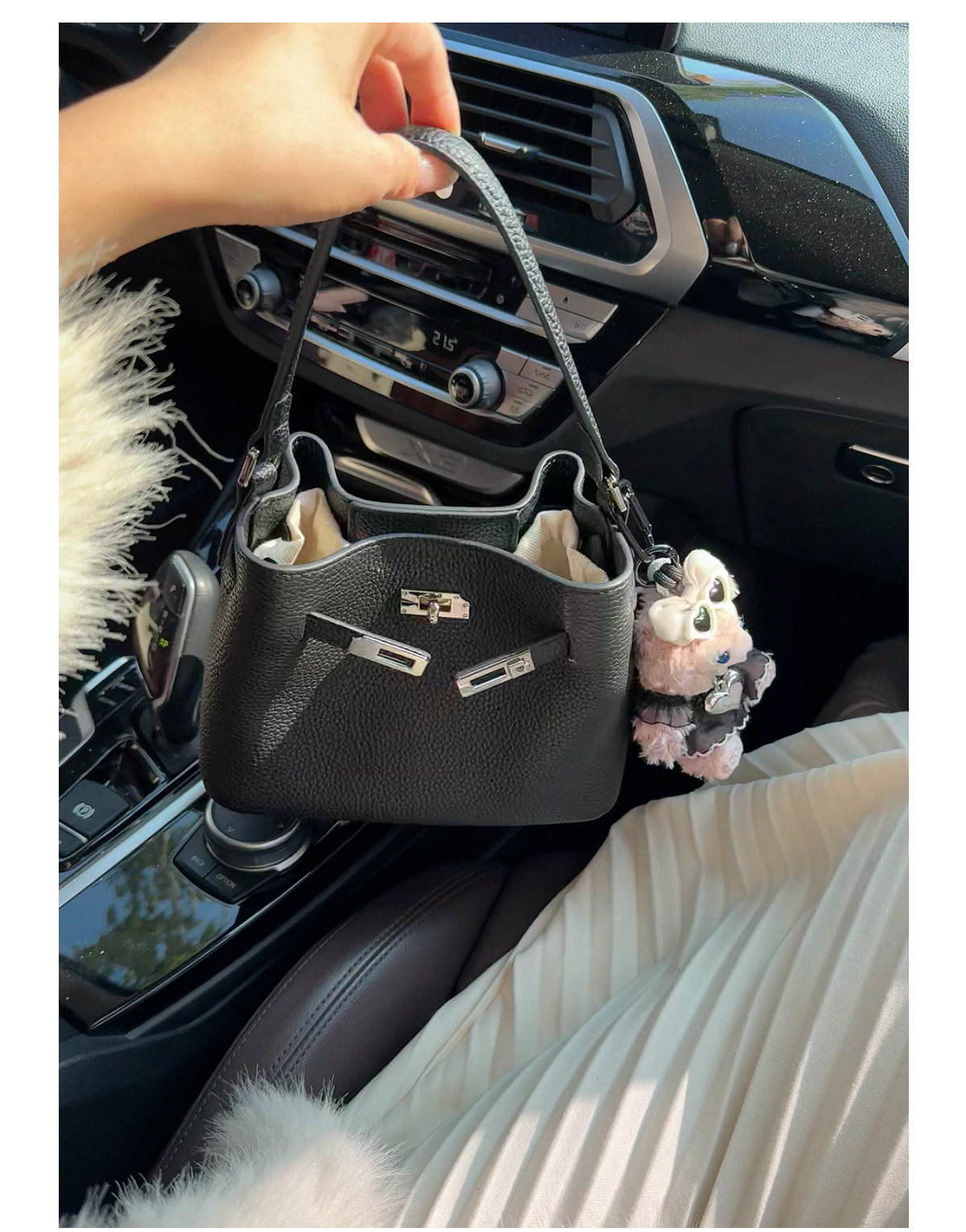 小衆頭層牛皮托特包女通勤百搭手提水桶包高級感單肩斜背菜籃子包