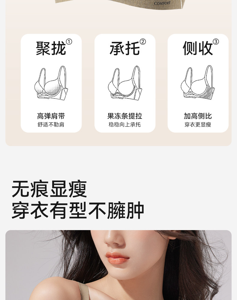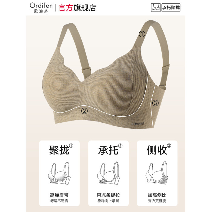 歐迪芬無痕內衣女士收副乳防外擴上托防下垂無鋼圈大胸顯小文胸罩