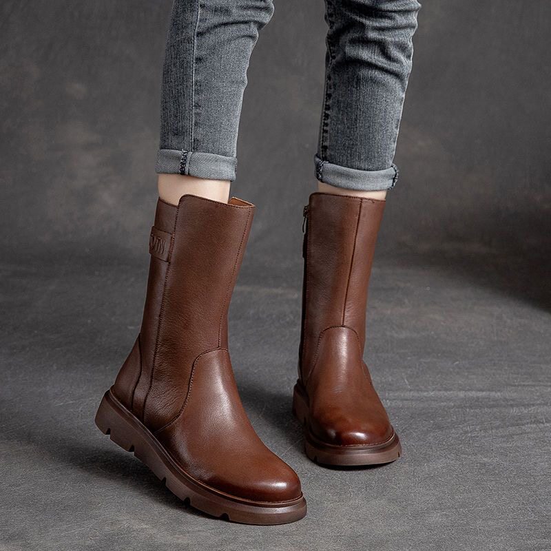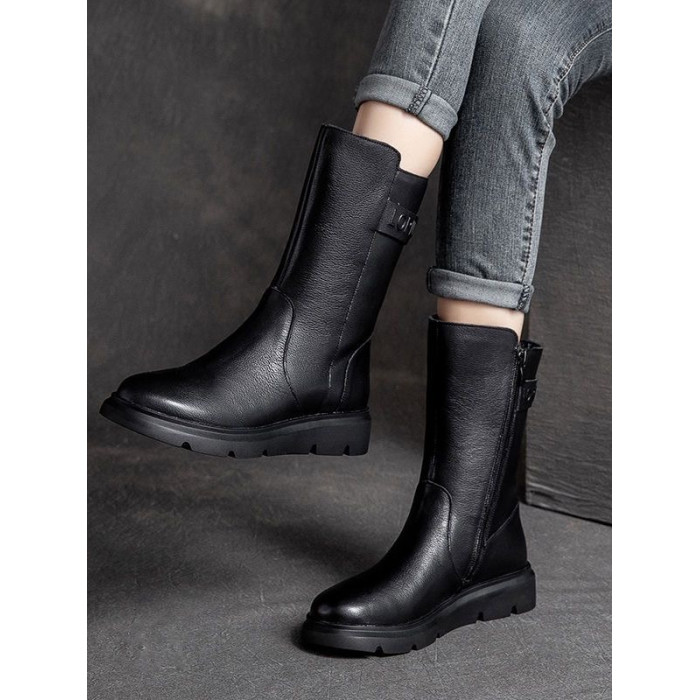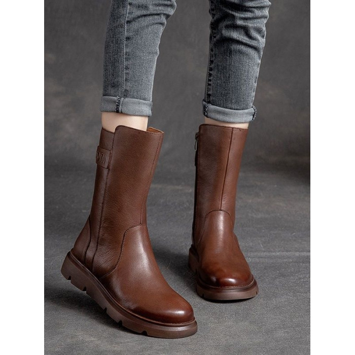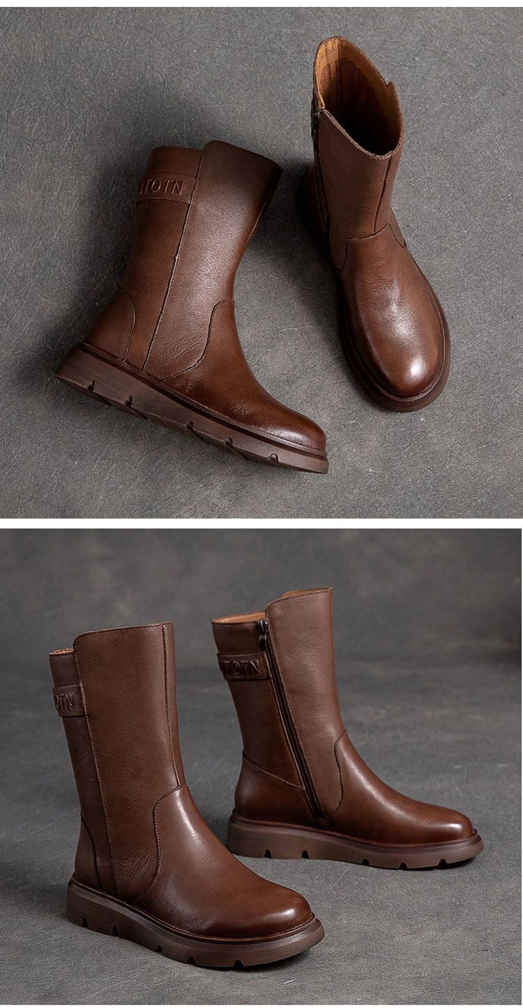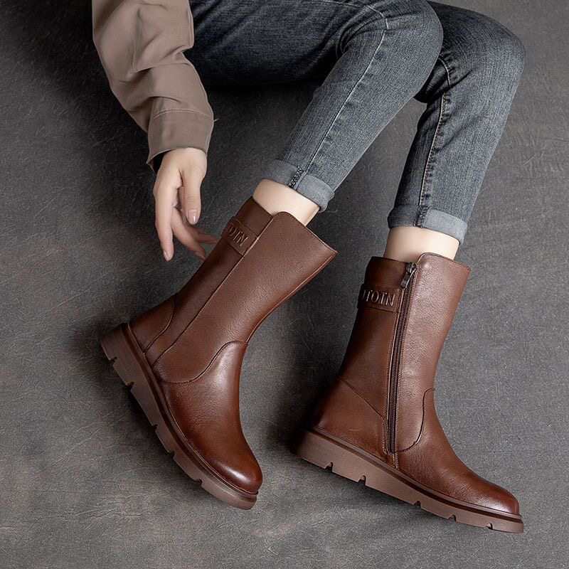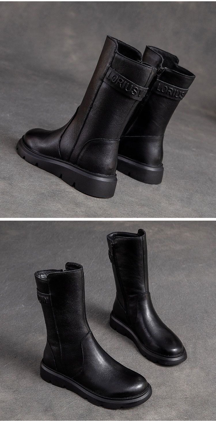 特價秋冬新款復古真皮中筒馬丁靴女軟底機車靴子ins潮短靴