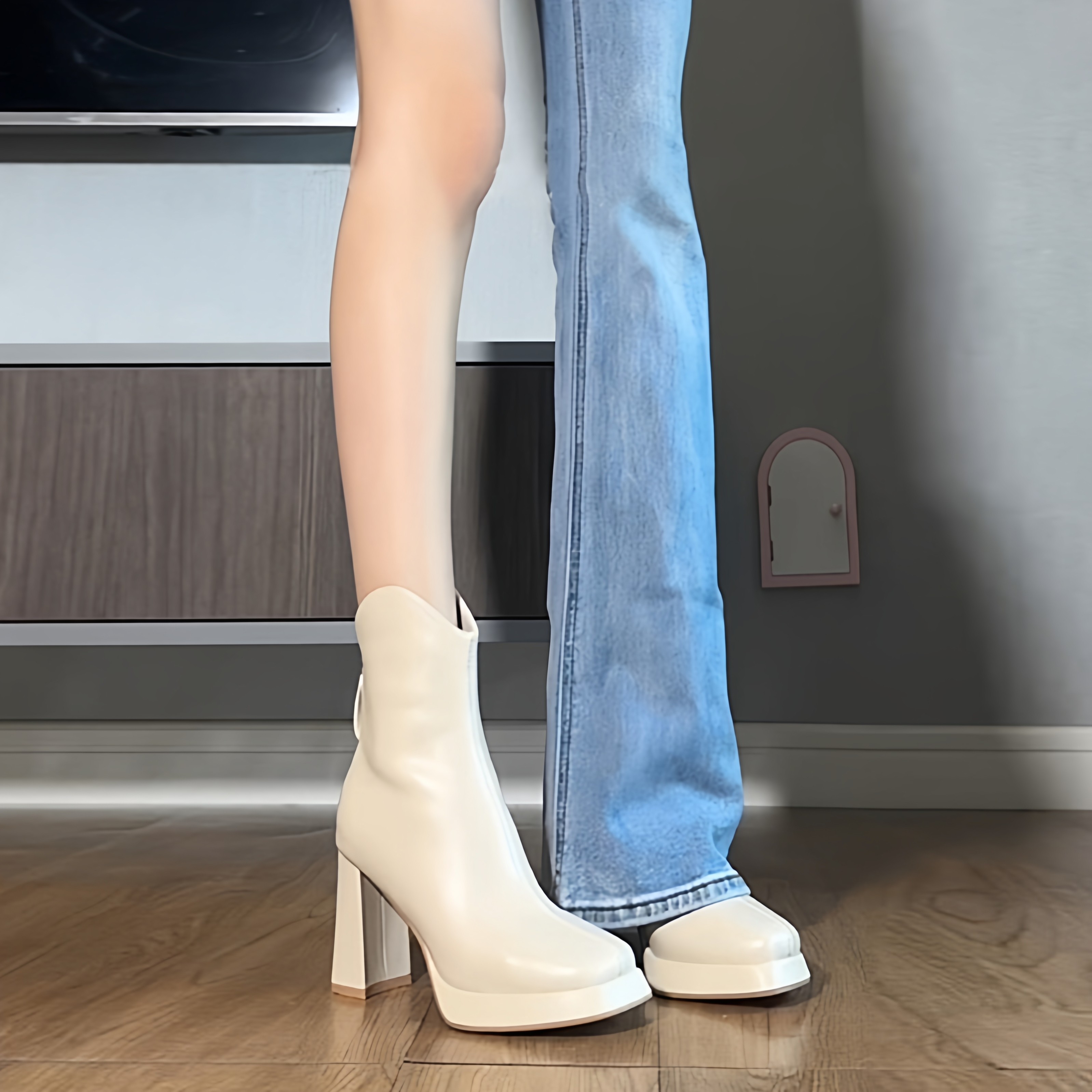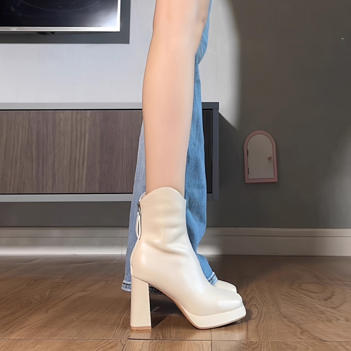 白色瘦瘦馬丁靴炸街小短靴粗跟高跟厚底防水台秋冬新款切爾西靴女