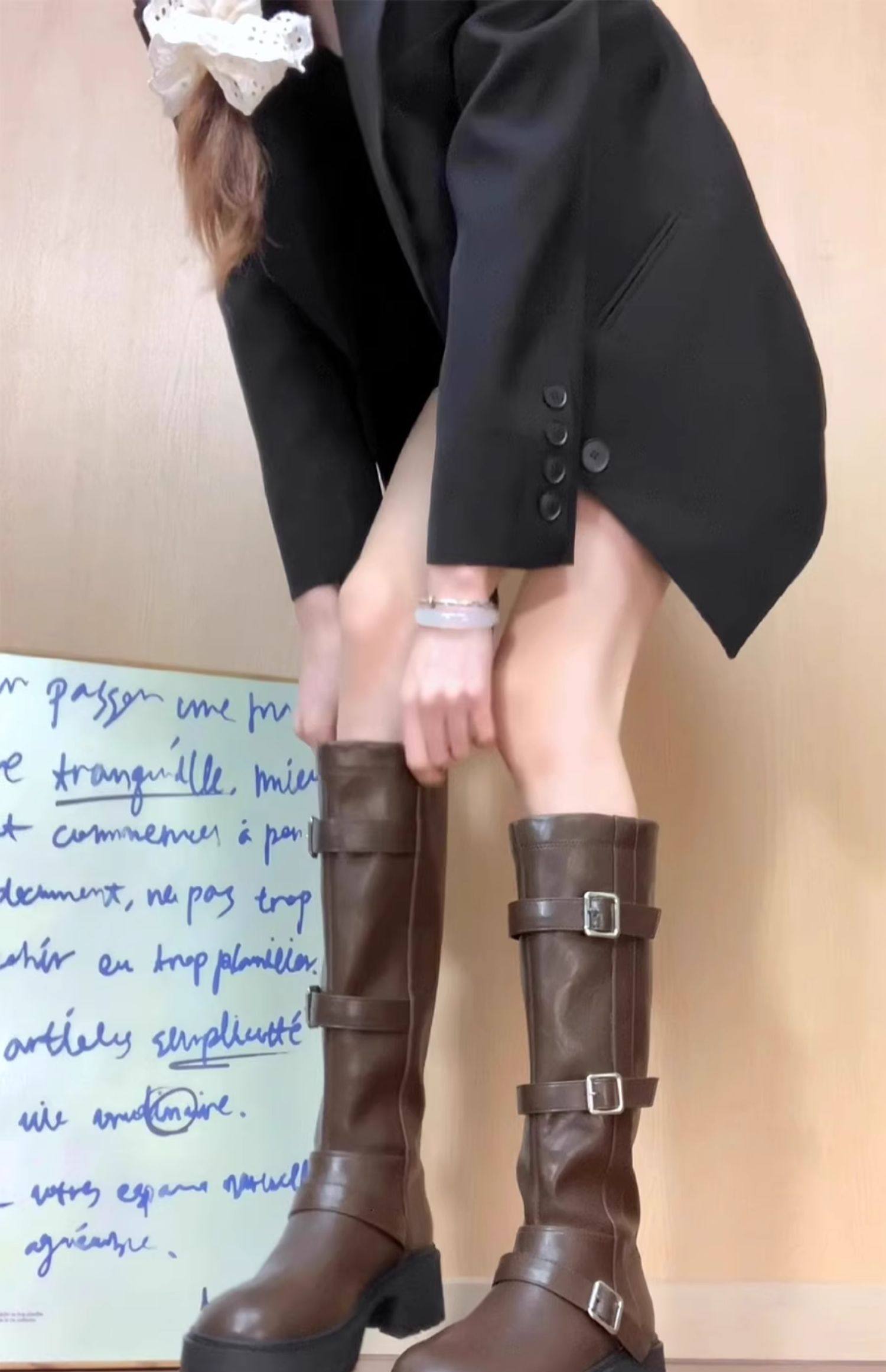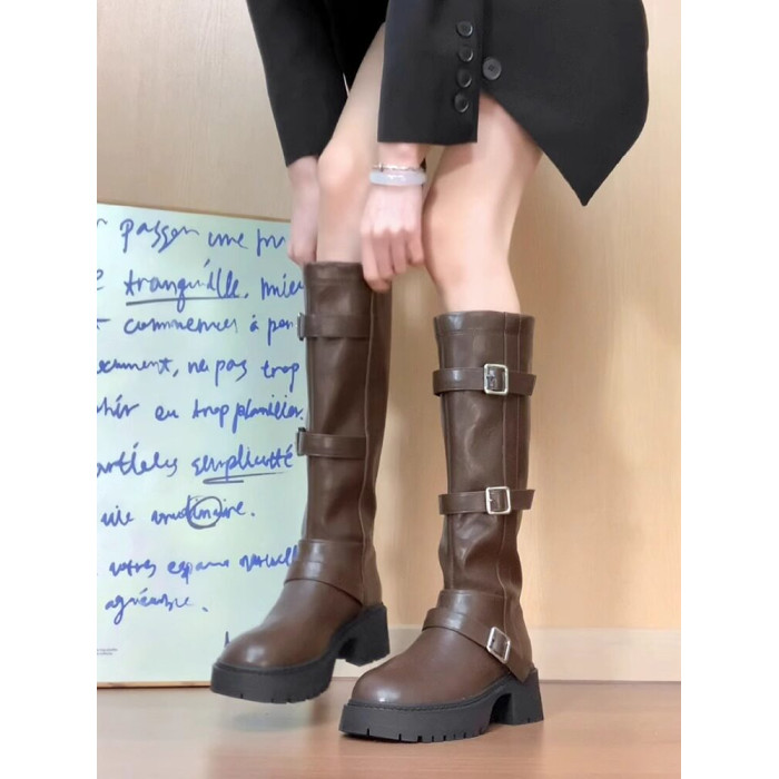 厚底騎士靴女2026新款秋季不過膝棕色美拉德西部牛仔高筒長筒靴子