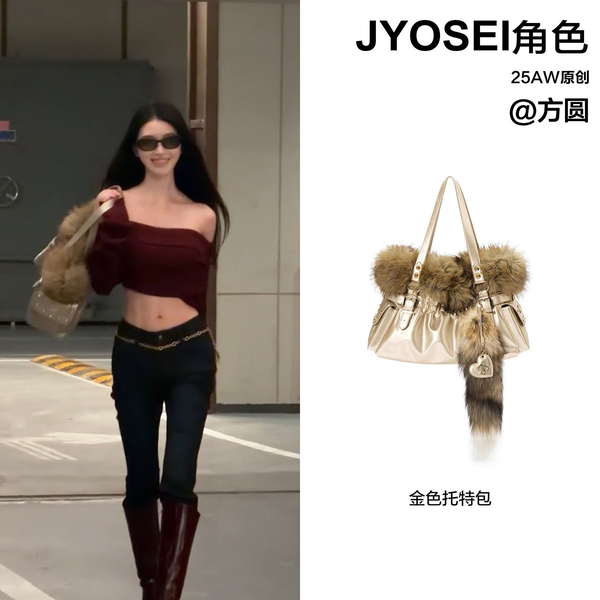 方圓同款JYOSEI角色原創“欲望都市”復古辣妹風大容量腋下托特包