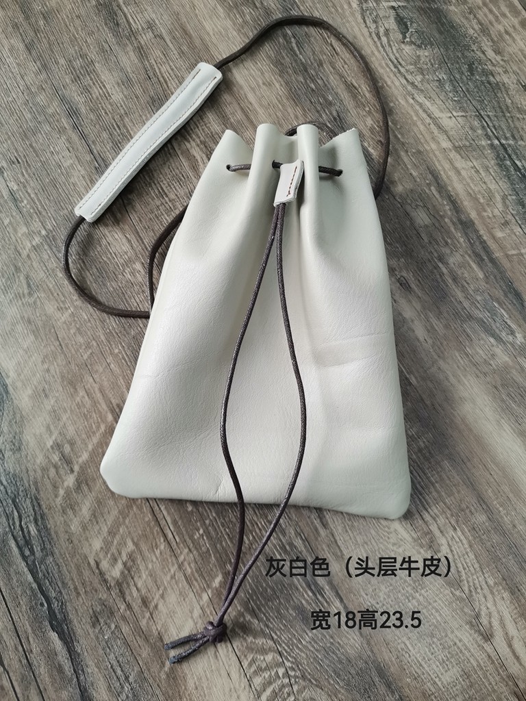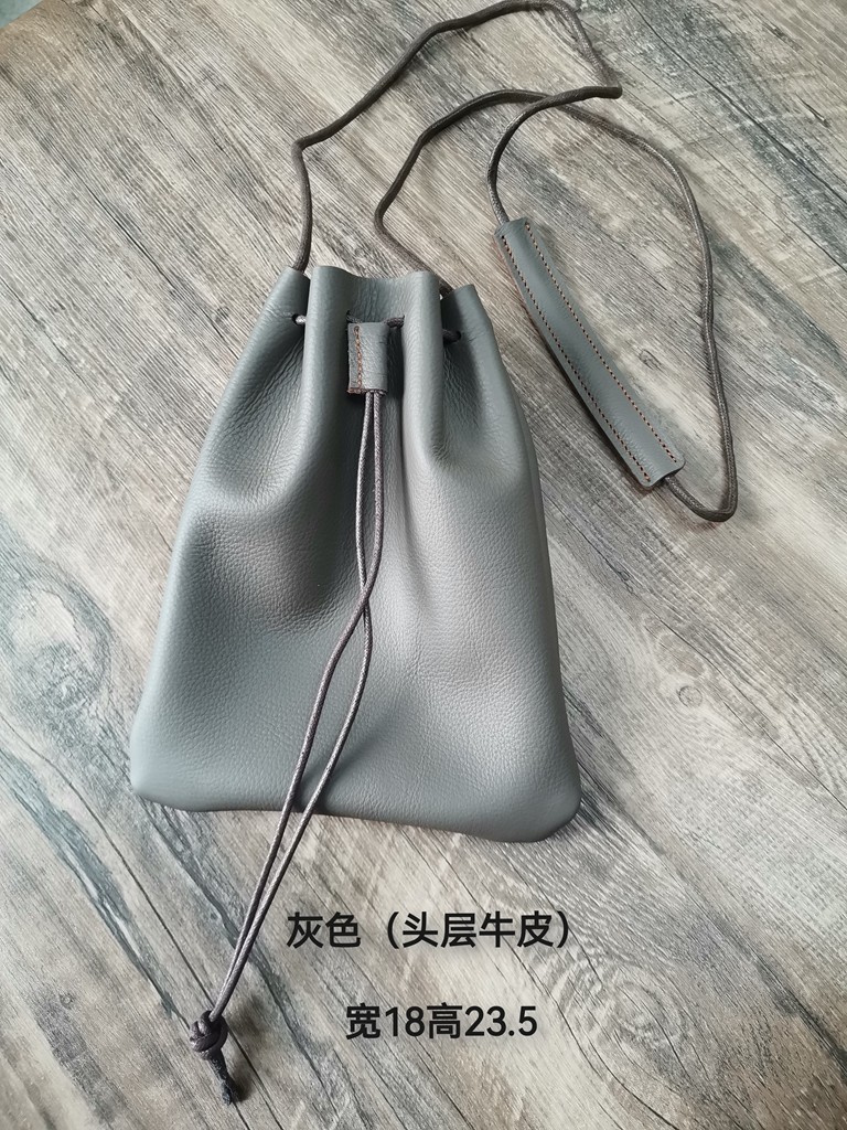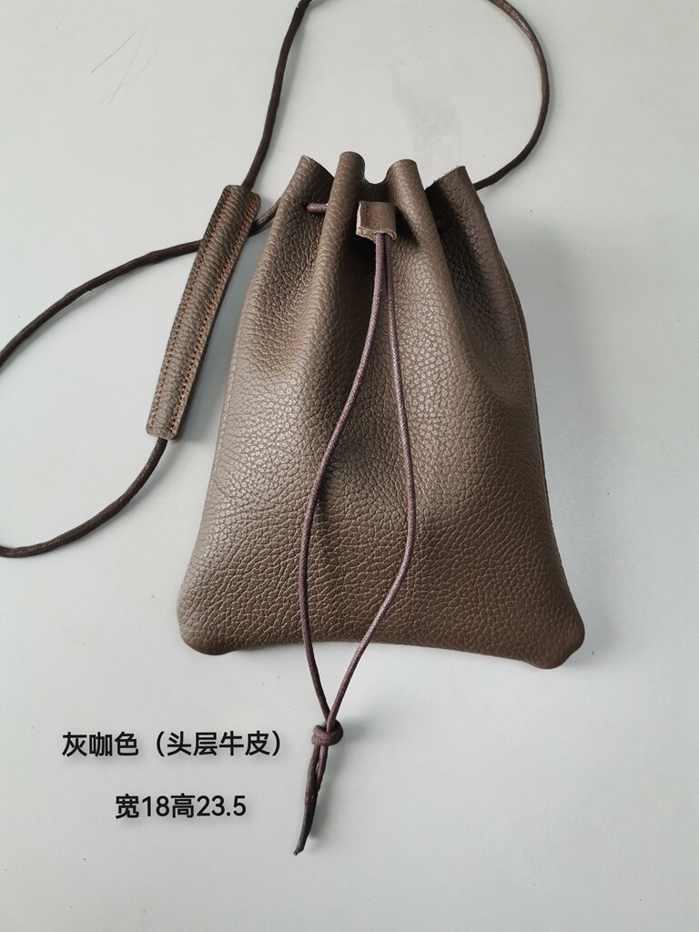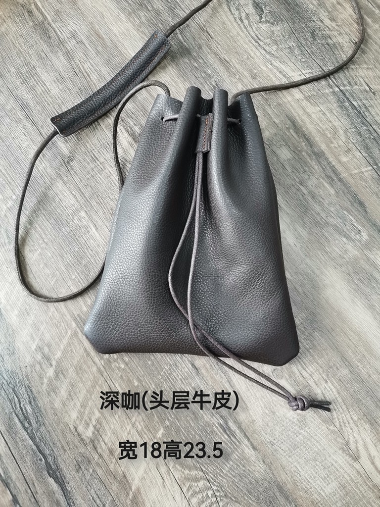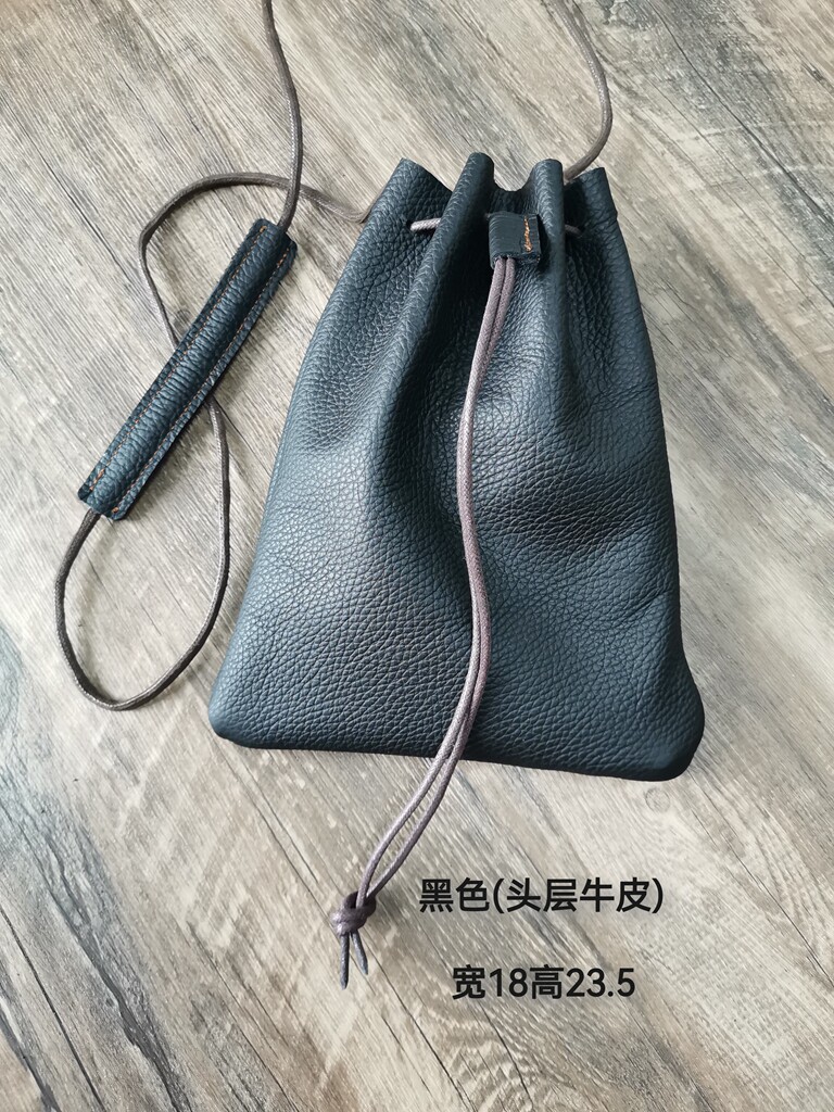 創意復古文藝風頭層牛皮真皮女包抽繩水桶斜背收納手機包