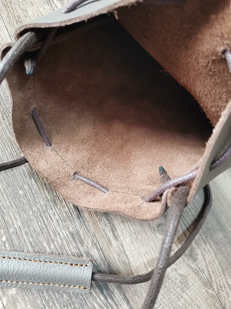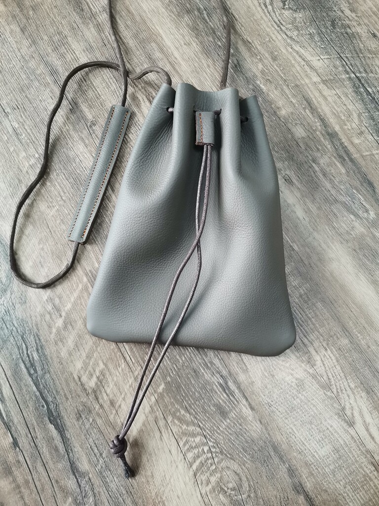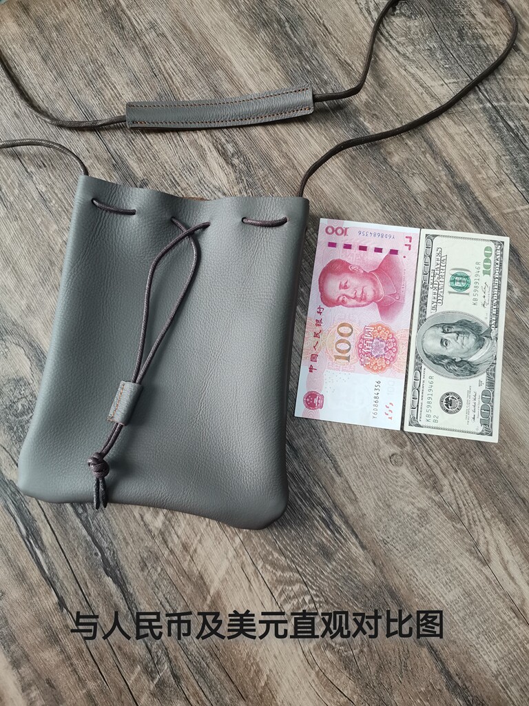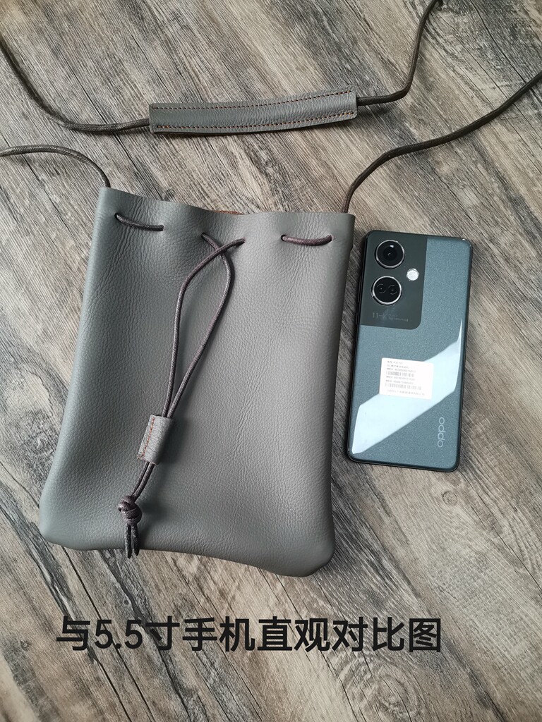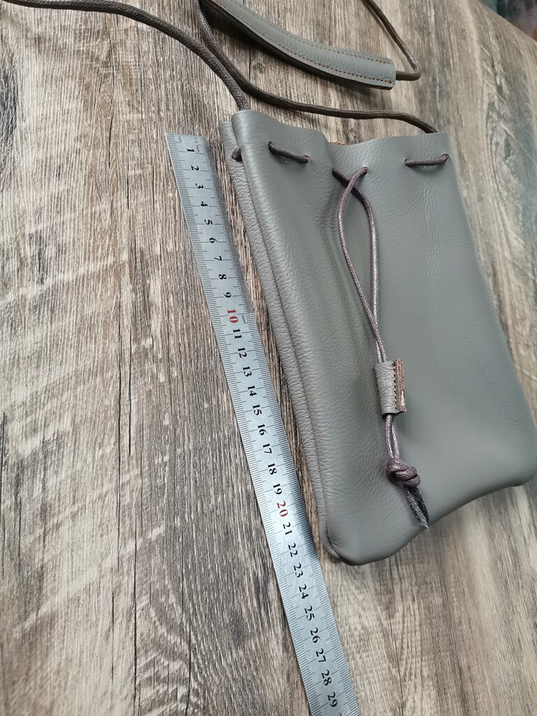 創意復古文藝風頭層牛皮真皮女包抽繩水桶斜背收納手機包