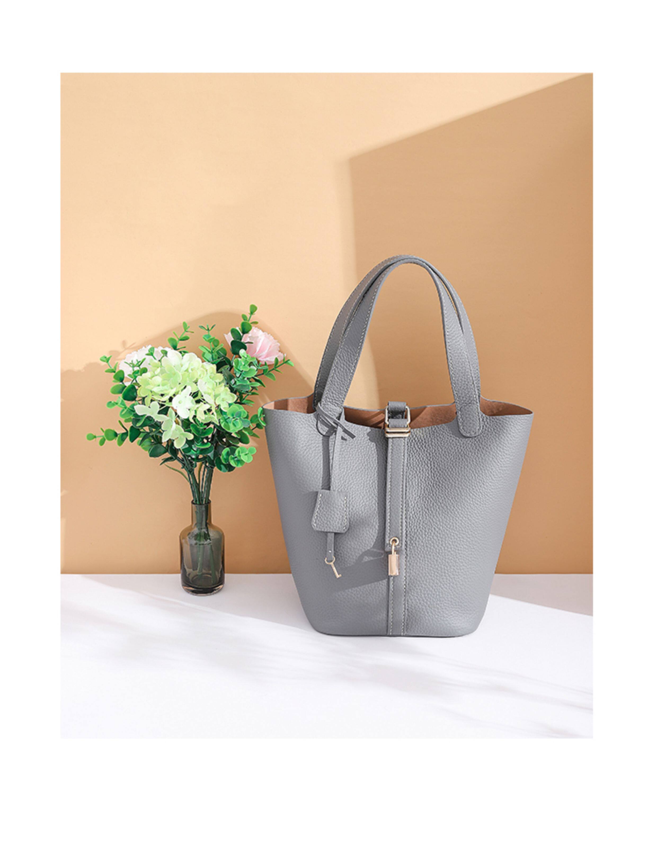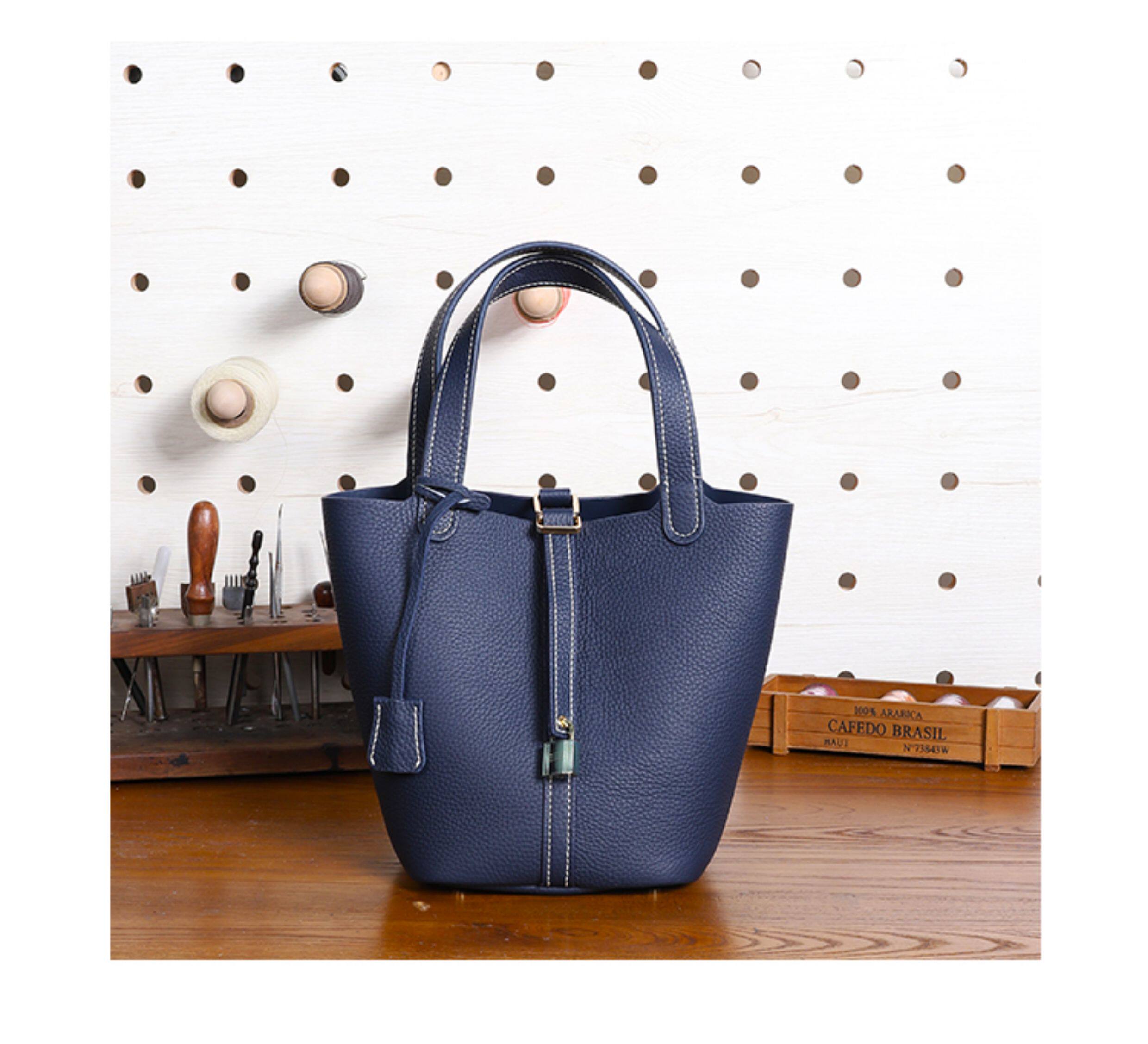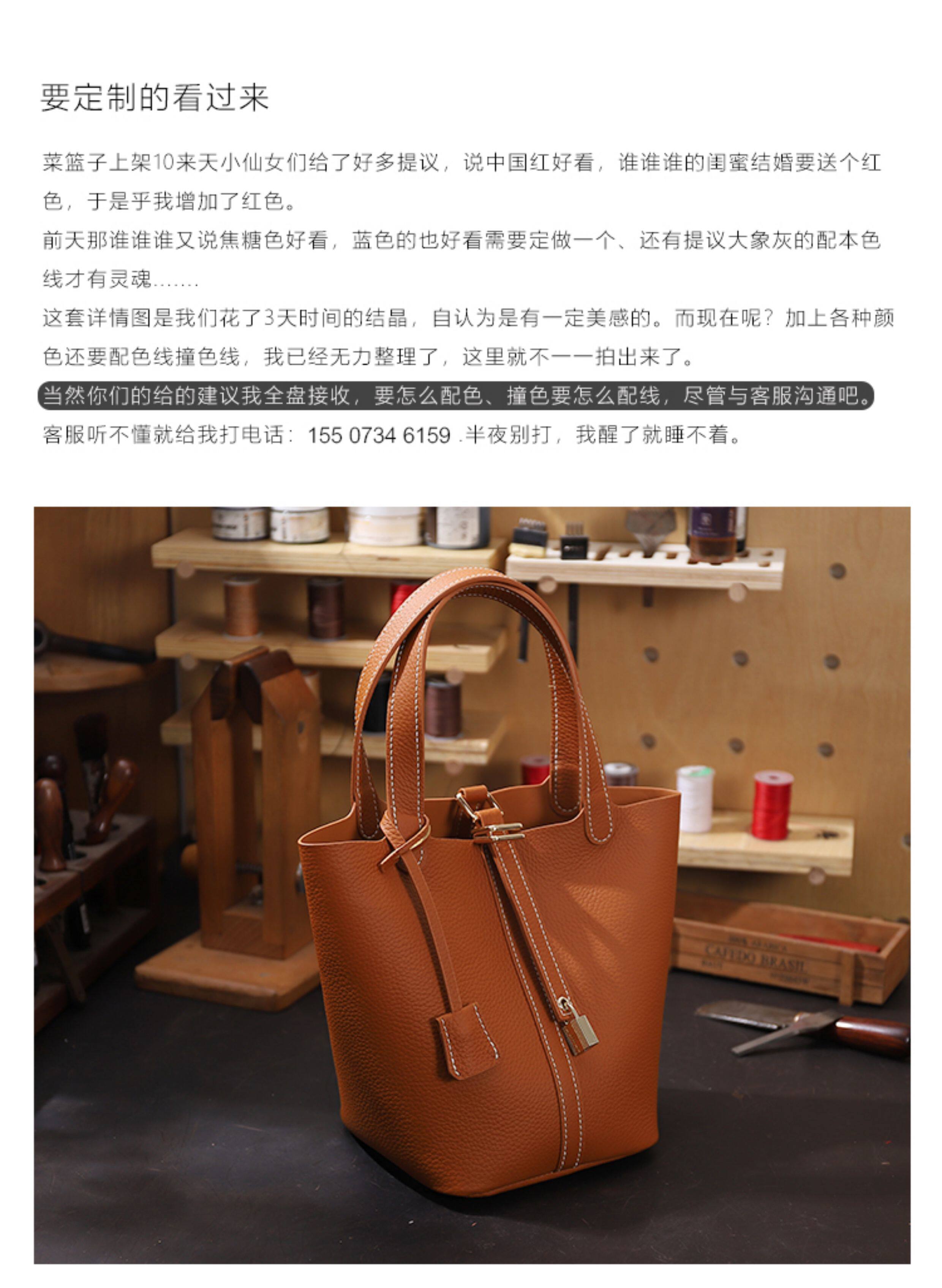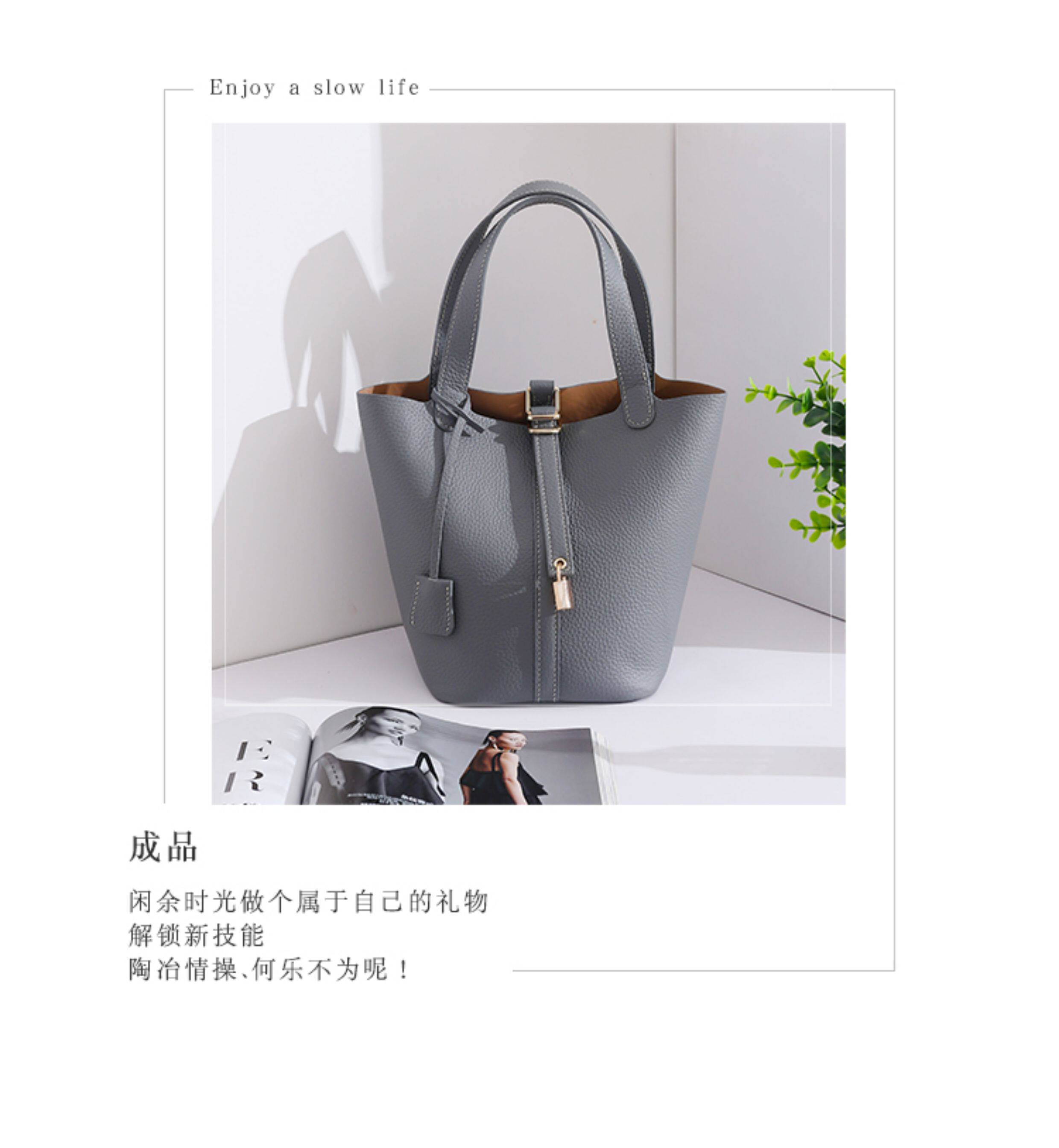 菜籃子女包原版真牛皮水桶包全手縫蠟線手工diy自製材料包大象灰