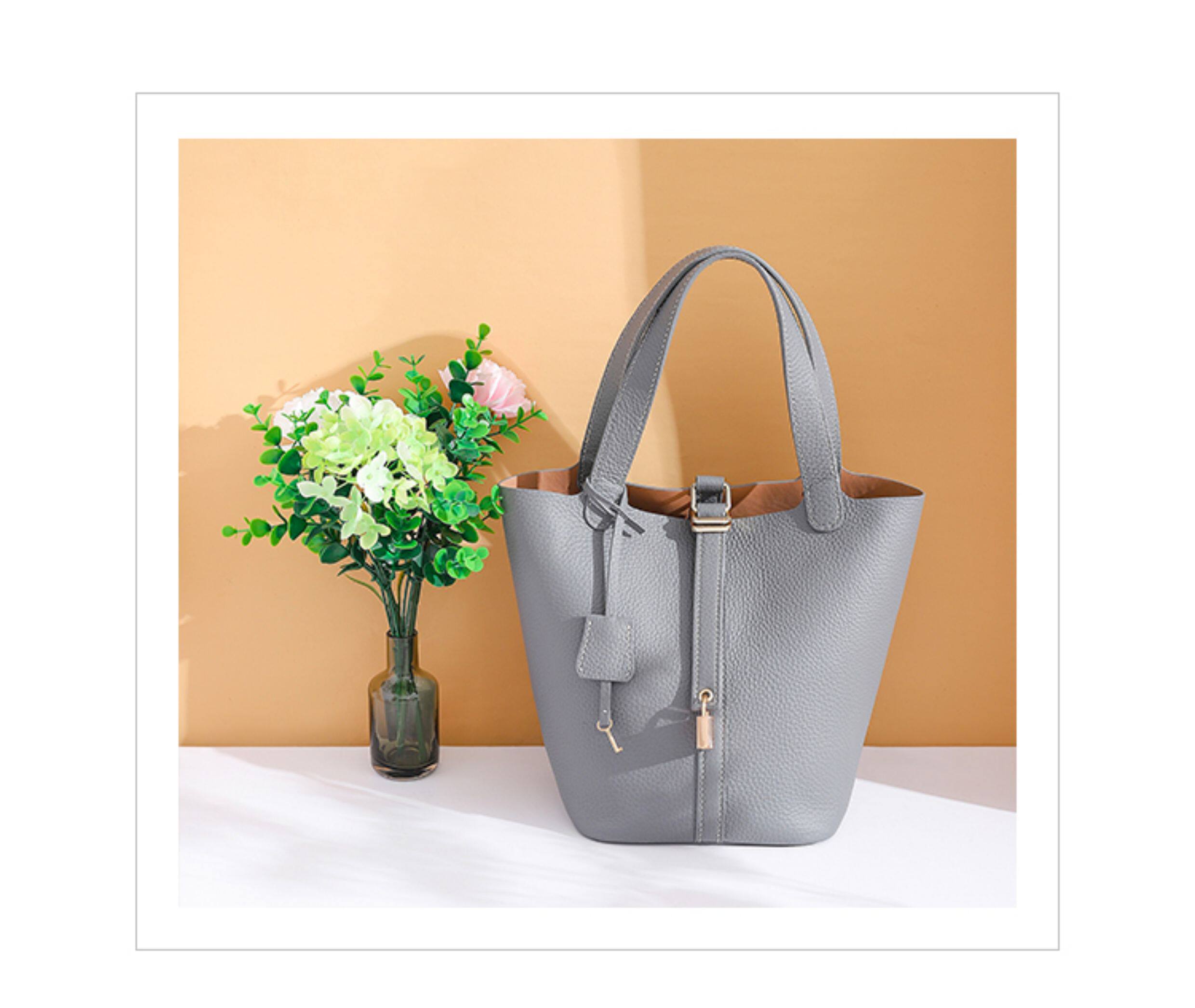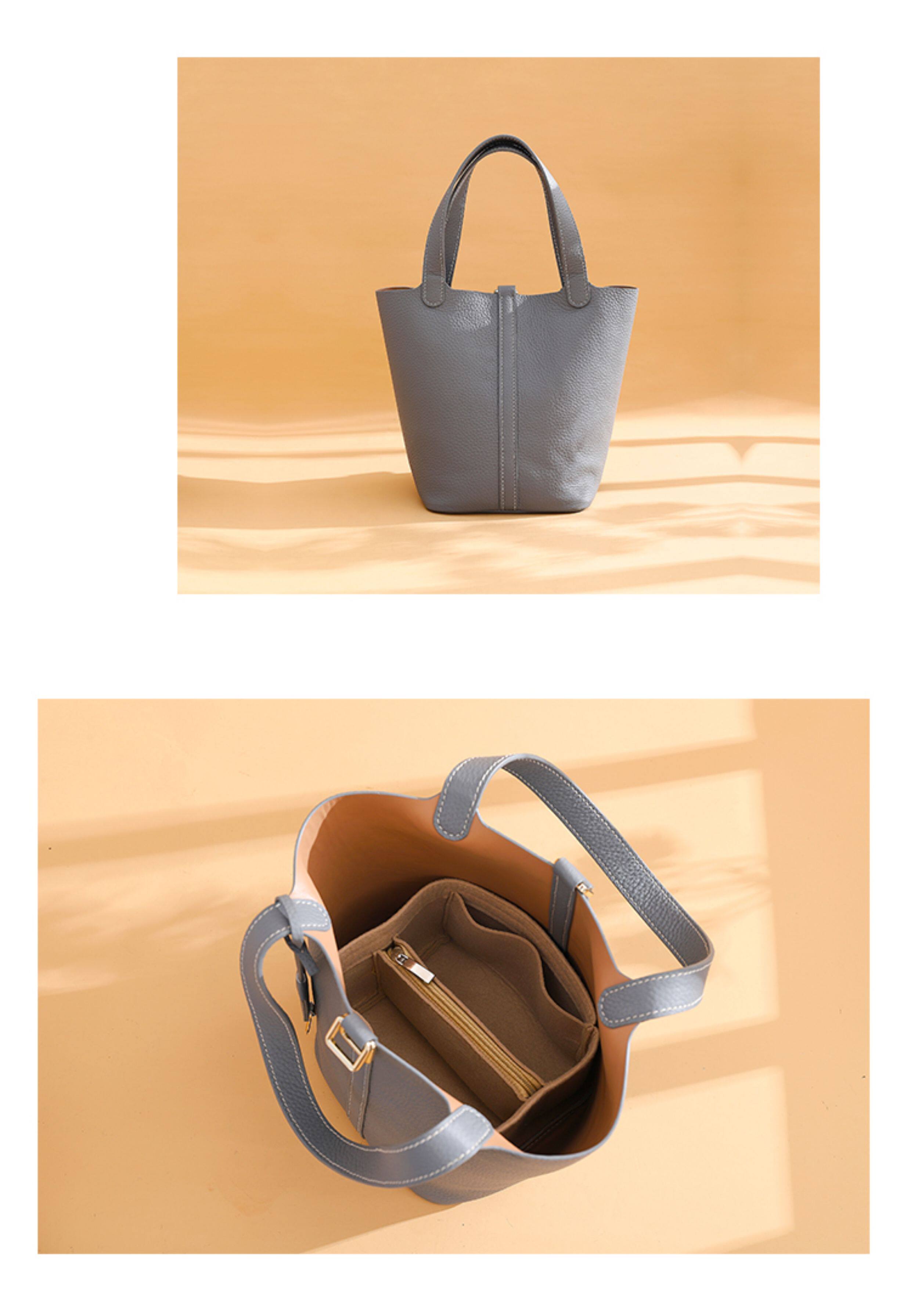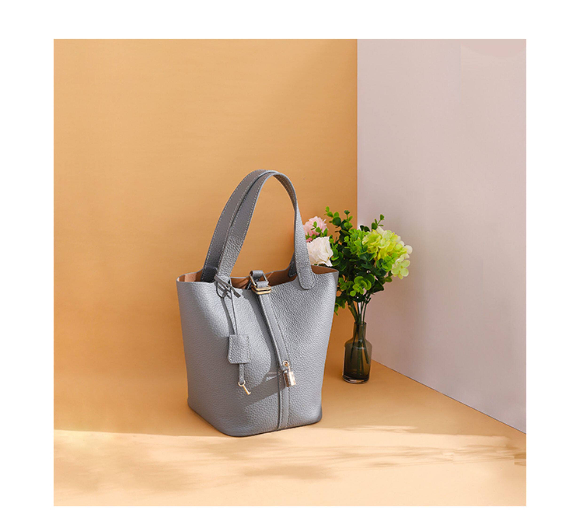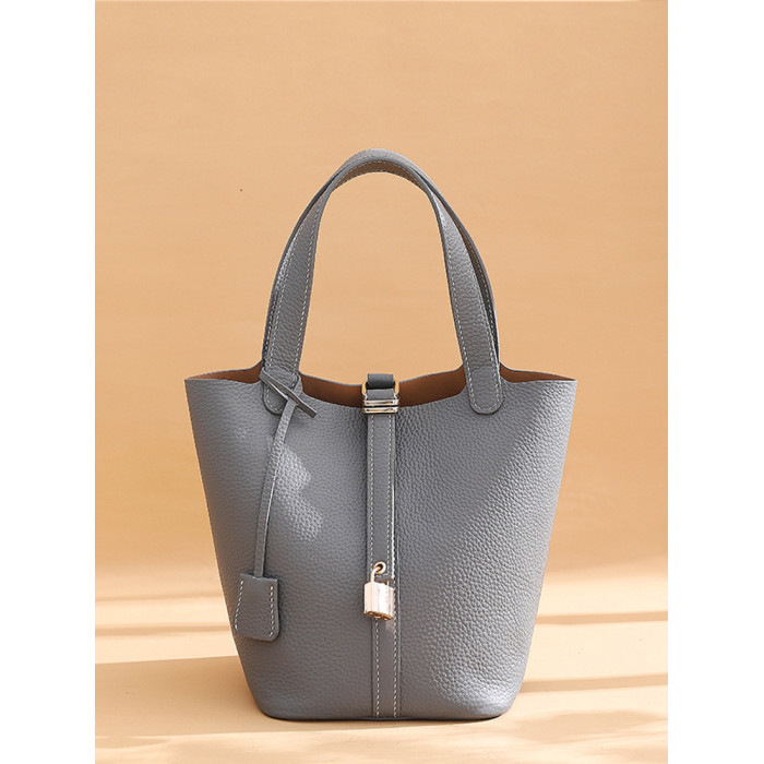 菜籃子女包原版真牛皮水桶包全手縫蠟線手工diy自製材料包大象灰