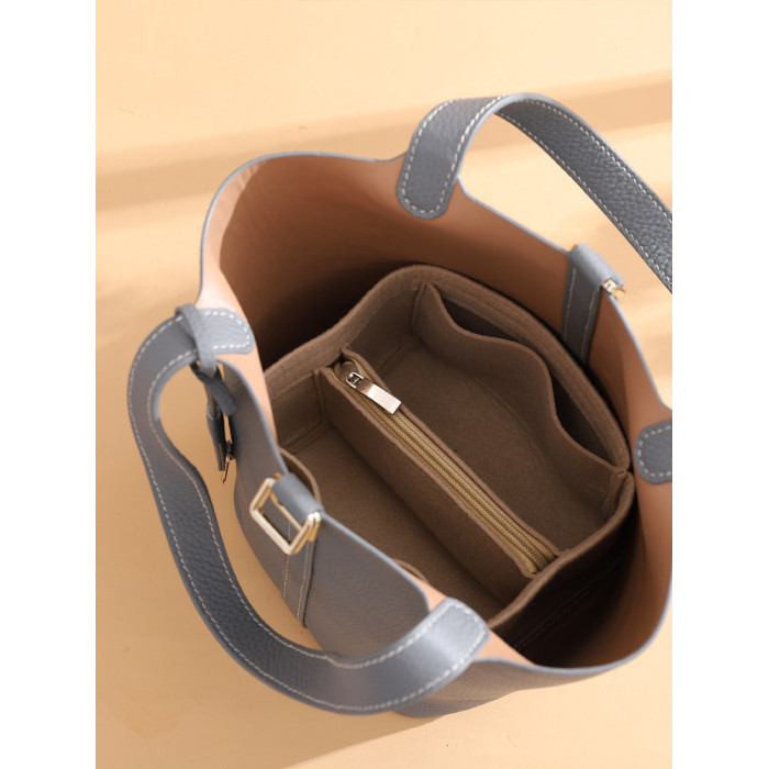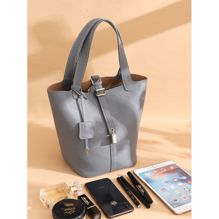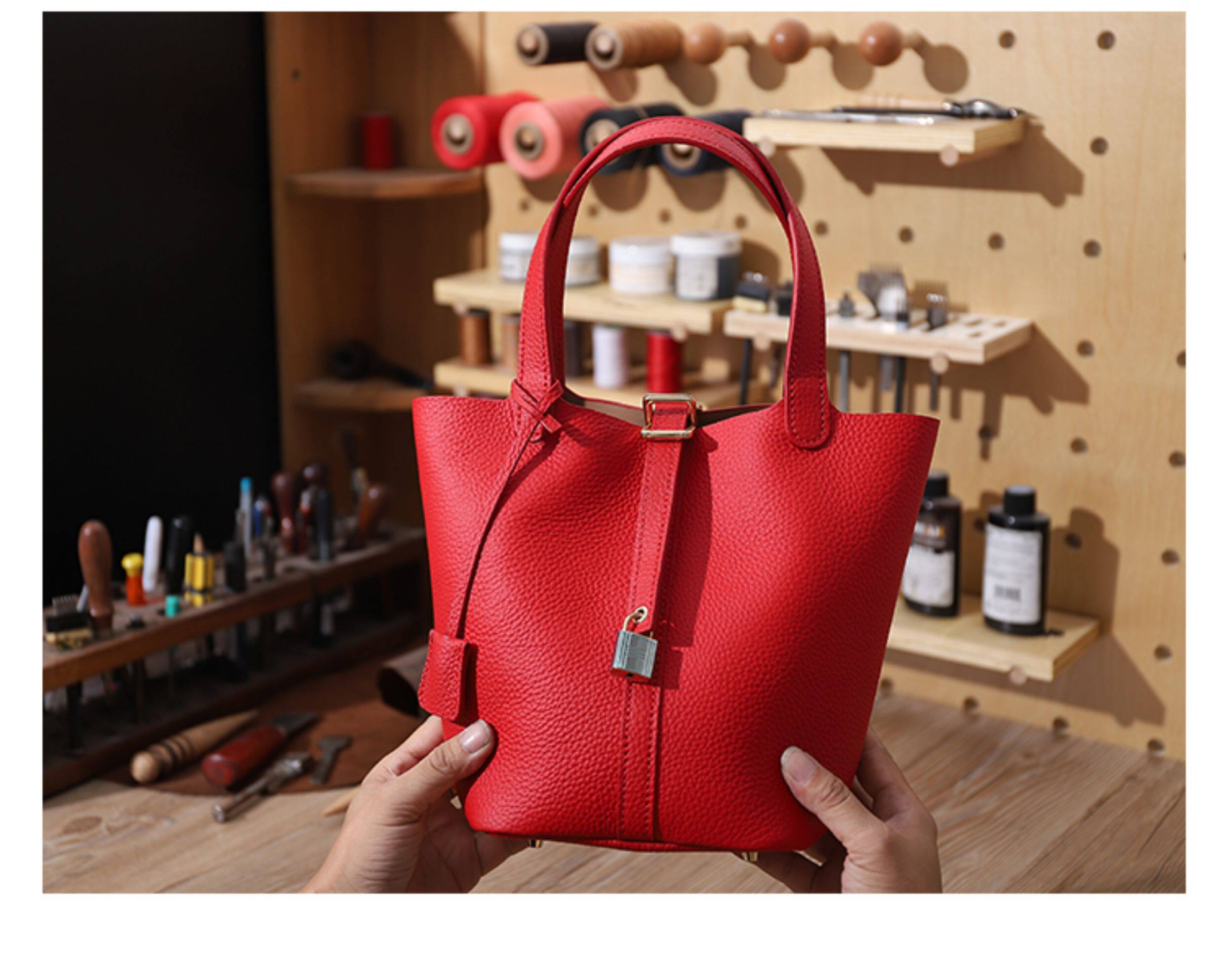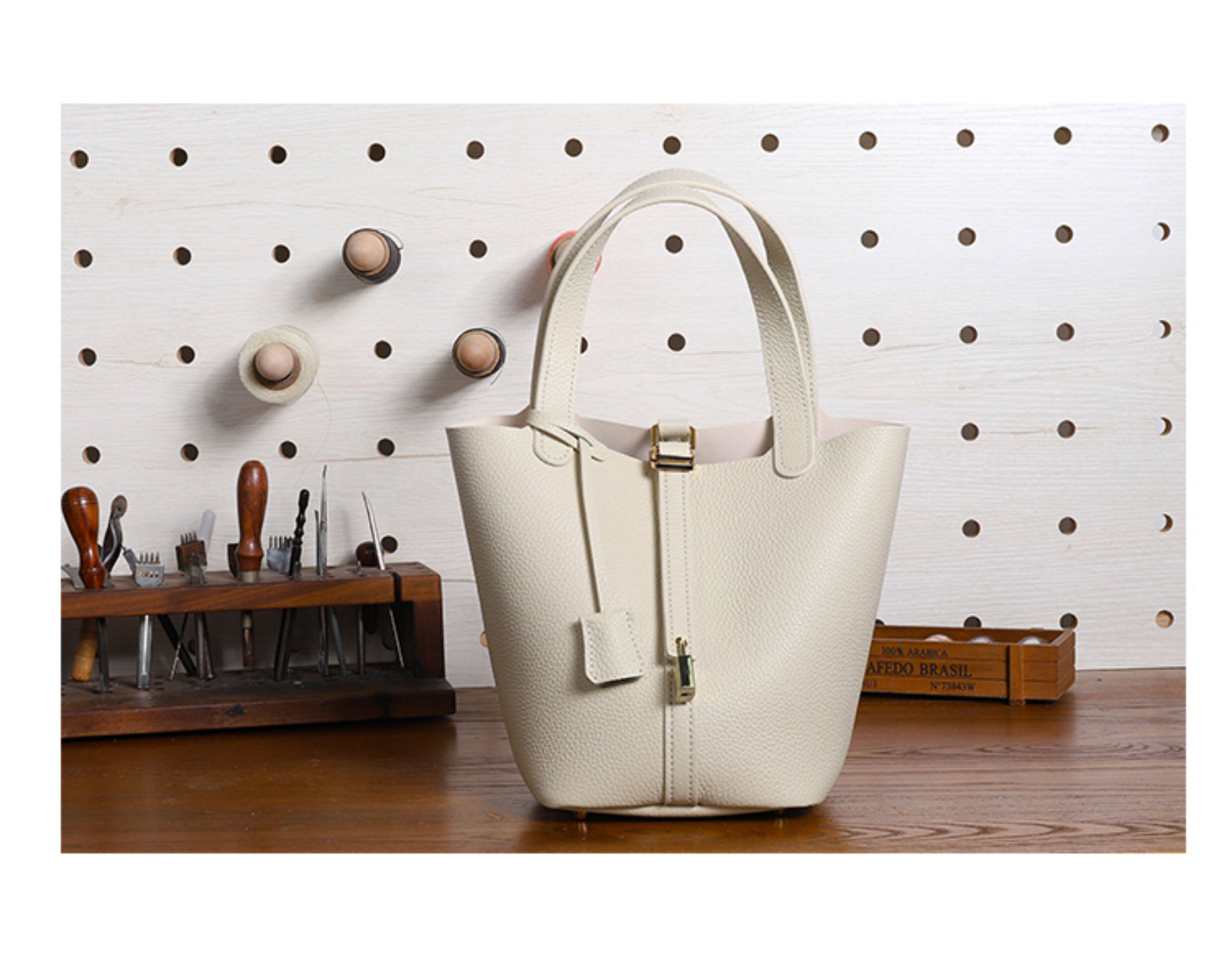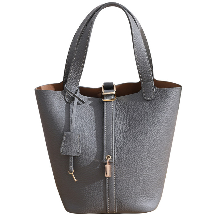 菜籃子女包原版真牛皮水桶包全手縫蠟線手工diy自製材料包大象灰