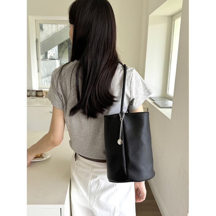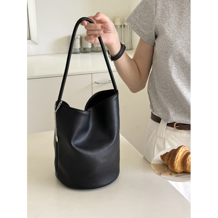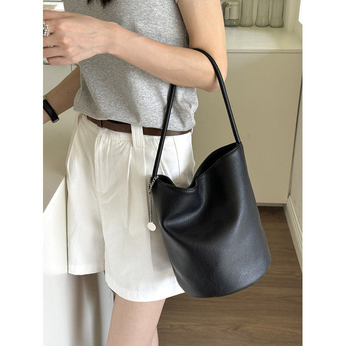 2026新款韓國小衆ins荔枝紋軟皮簡約水桶包時尚百搭單肩腋下包女