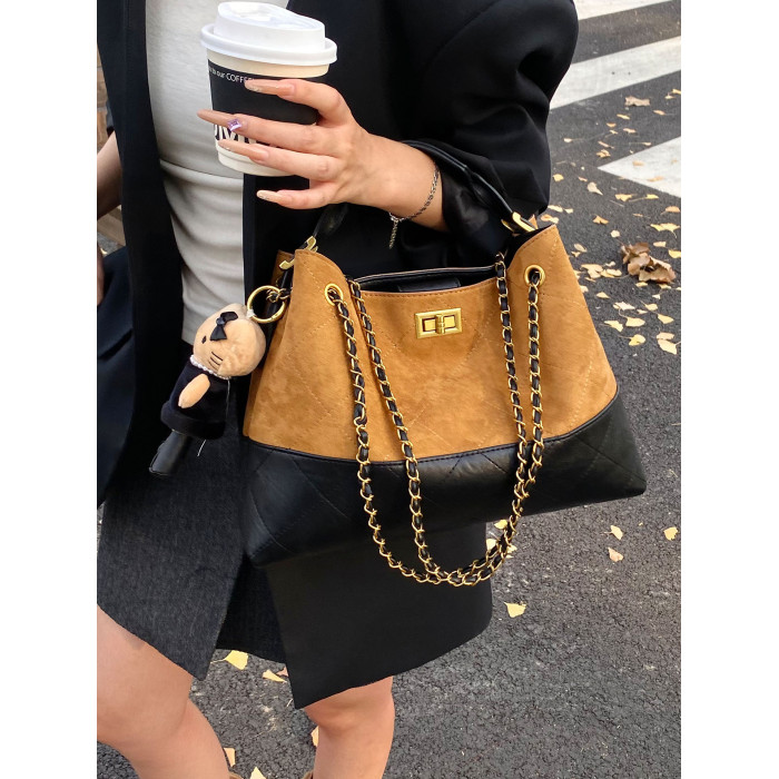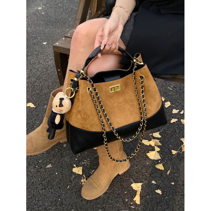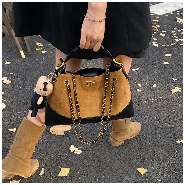 鏈條小香風大容量水桶包包2025秋季新款麂皮絨高級感通勤女斜後後背包