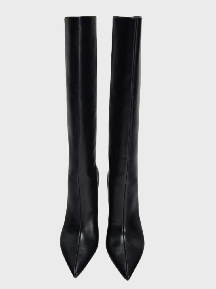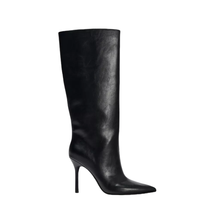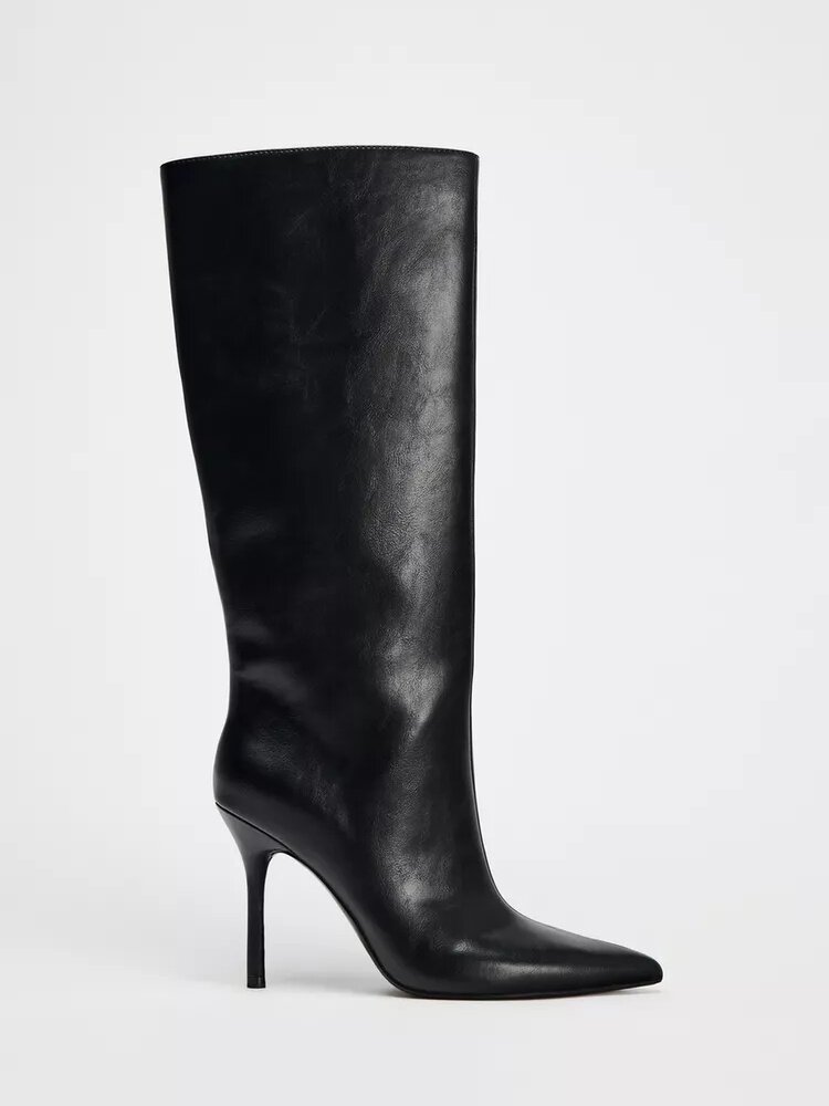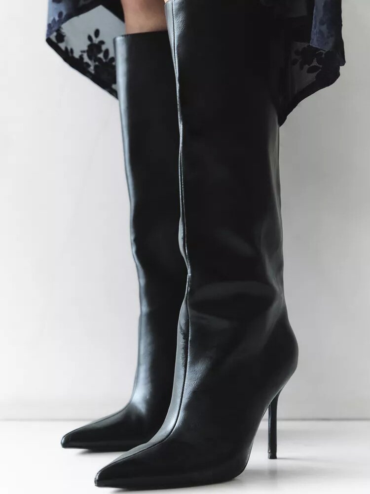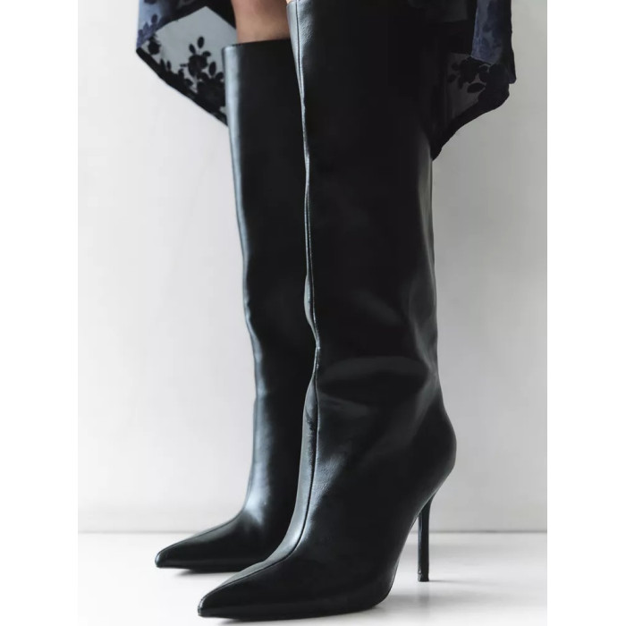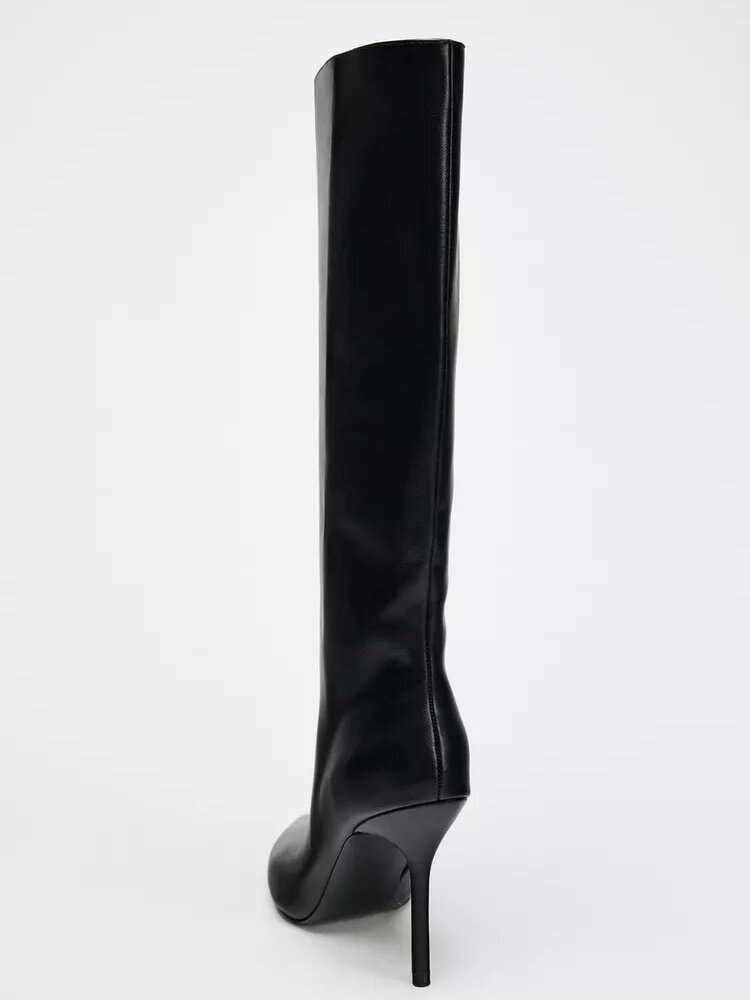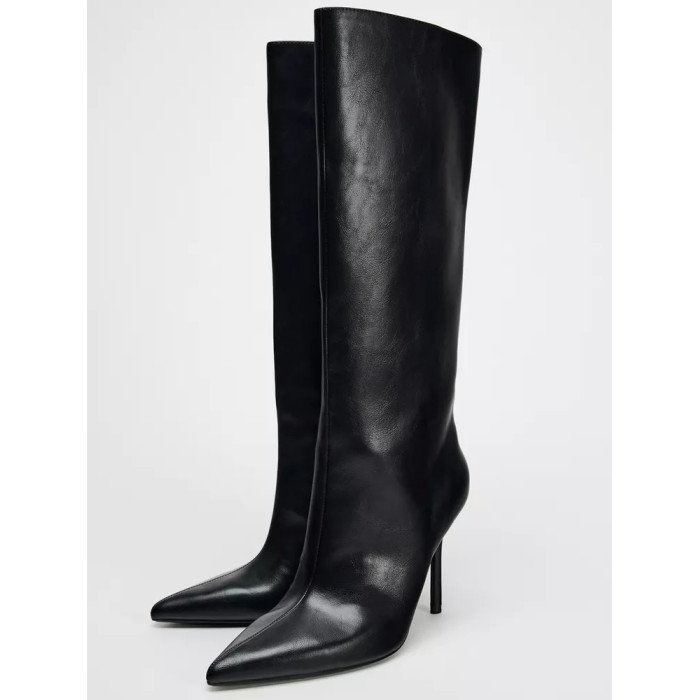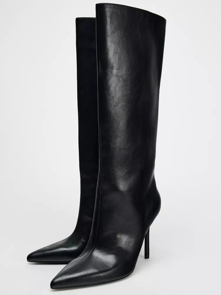 ZA黑色長靴2026秋冬新款寬筒細高跟尖頭高筒靴百搭側拉鍊時裝女靴