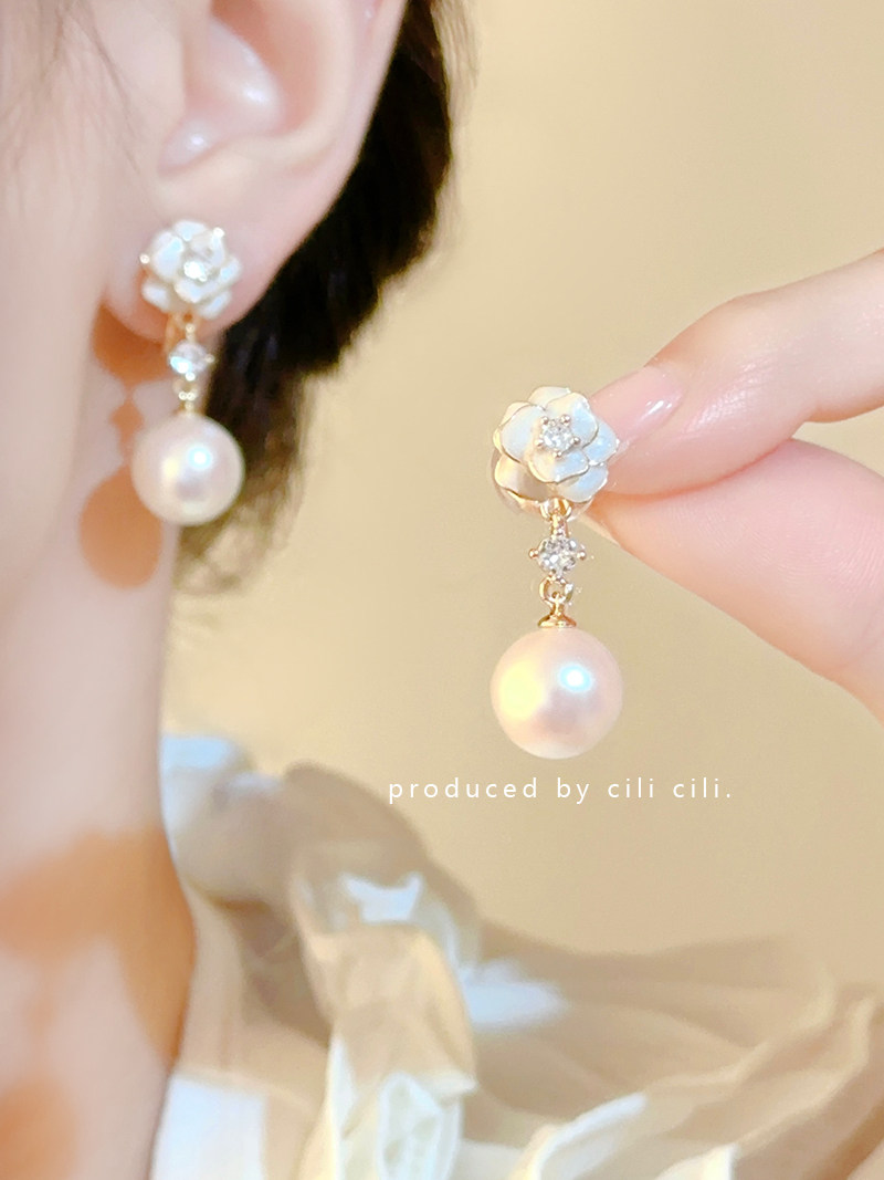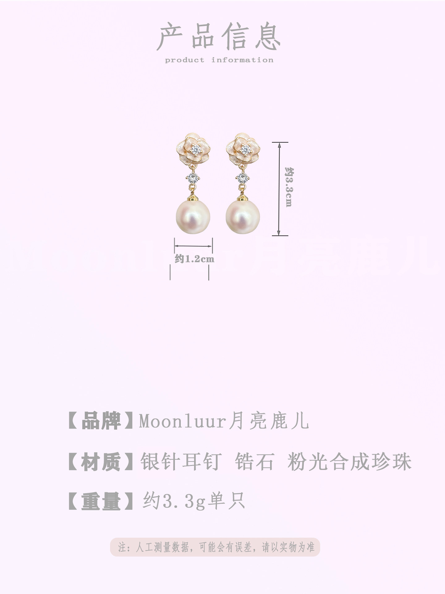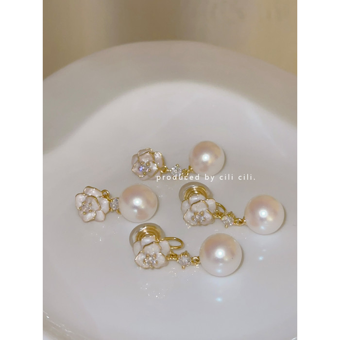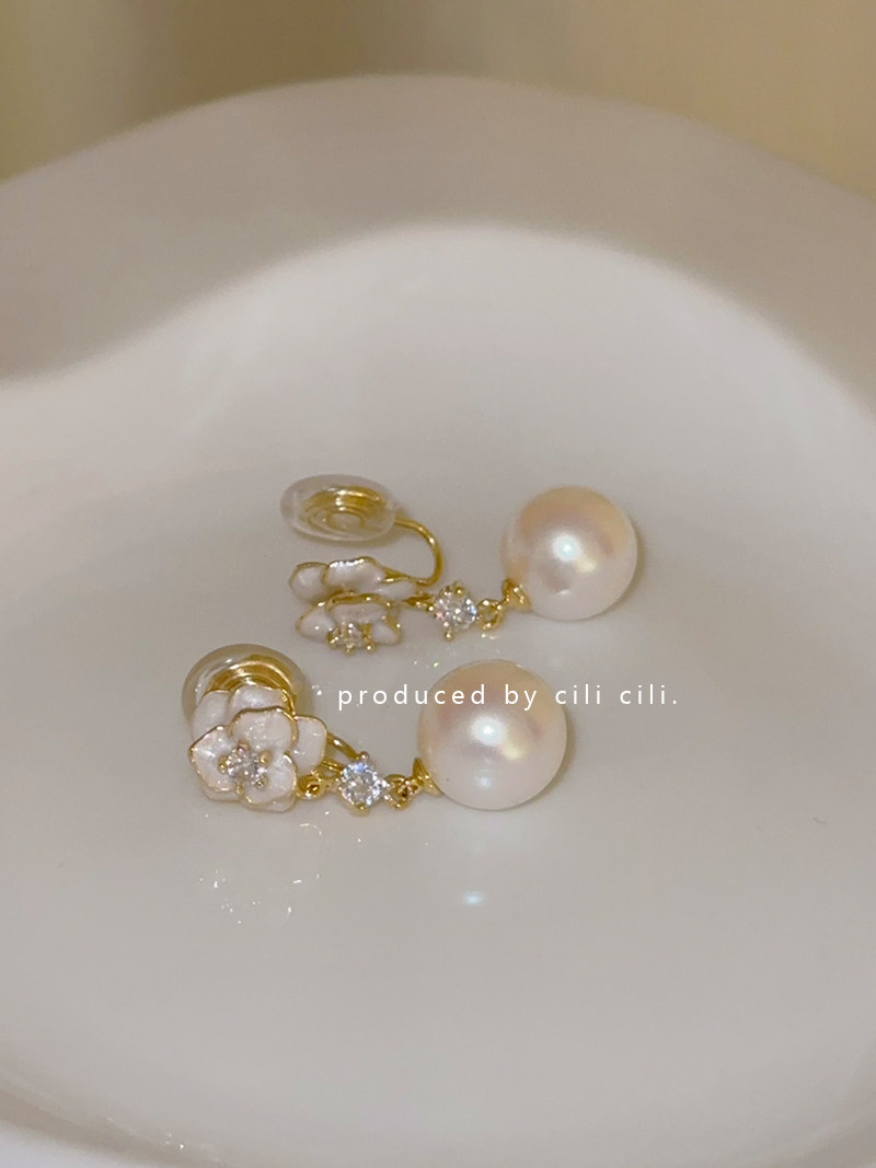 山茶花大珍珠耳飾2025新款爆款高級感耳墜無耳洞蚊香盤耳夾耳環女