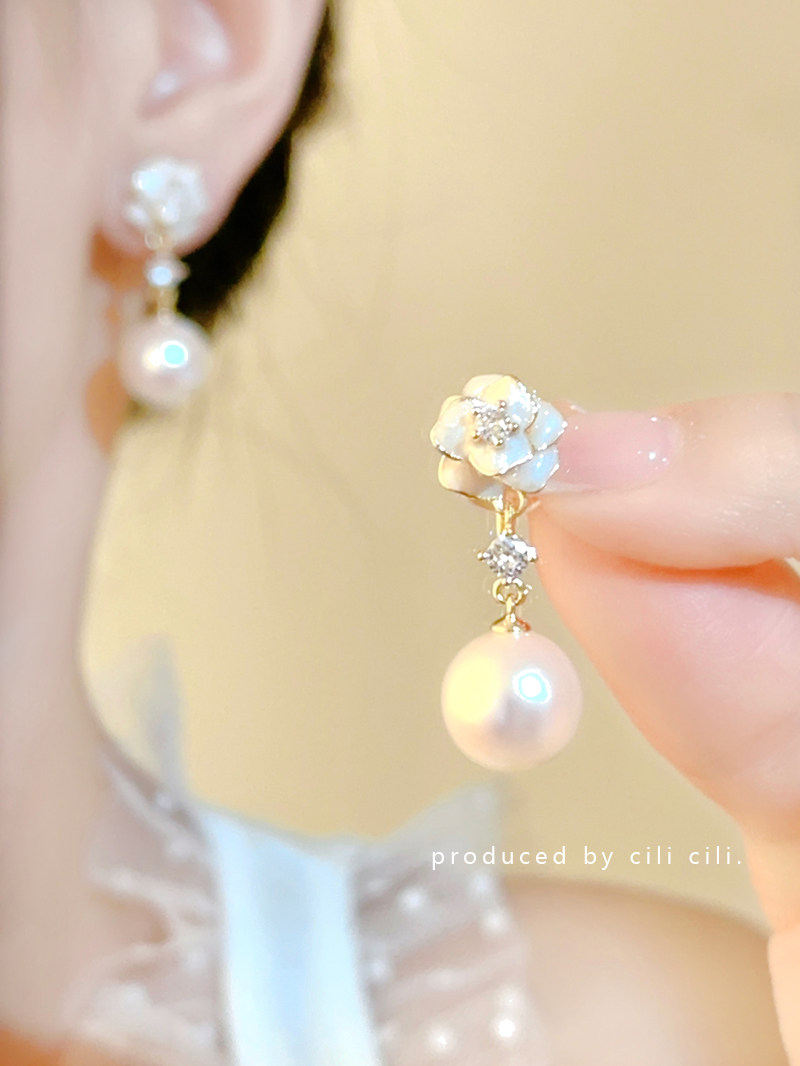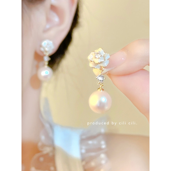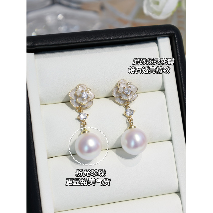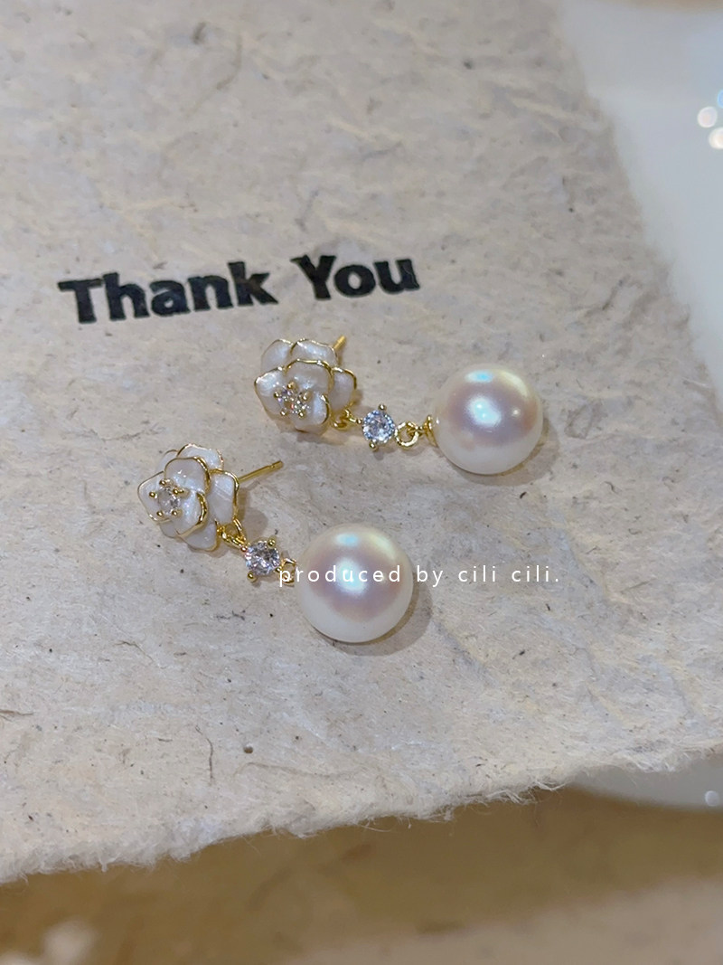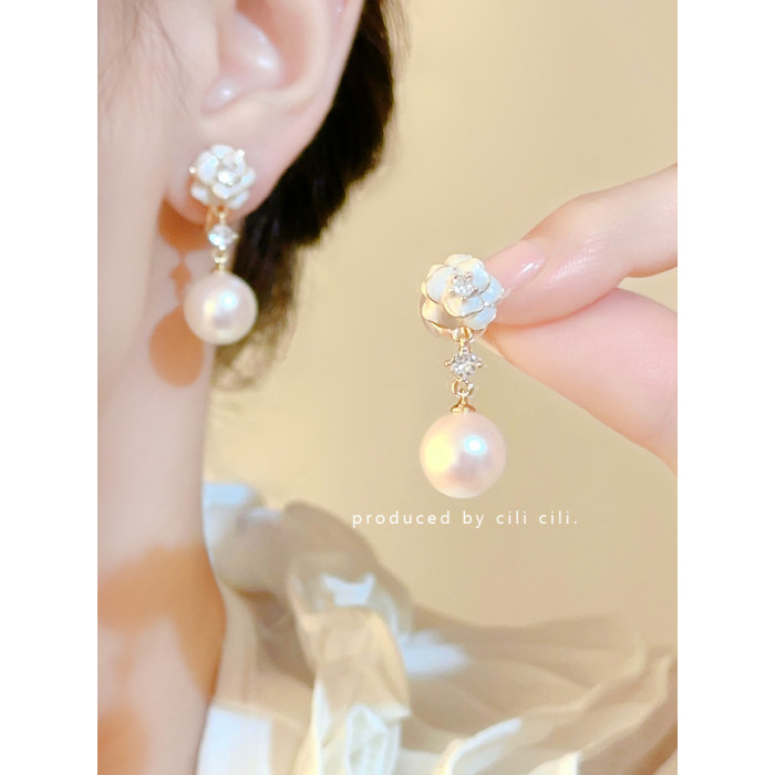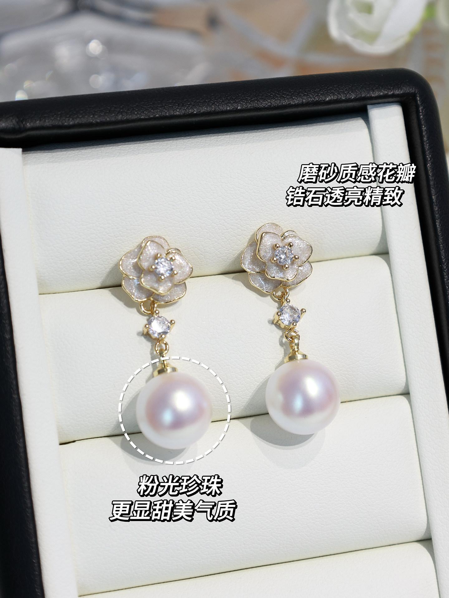 山茶花大珍珠耳飾2025新款爆款高級感耳墜無耳洞蚊香盤耳夾耳環女