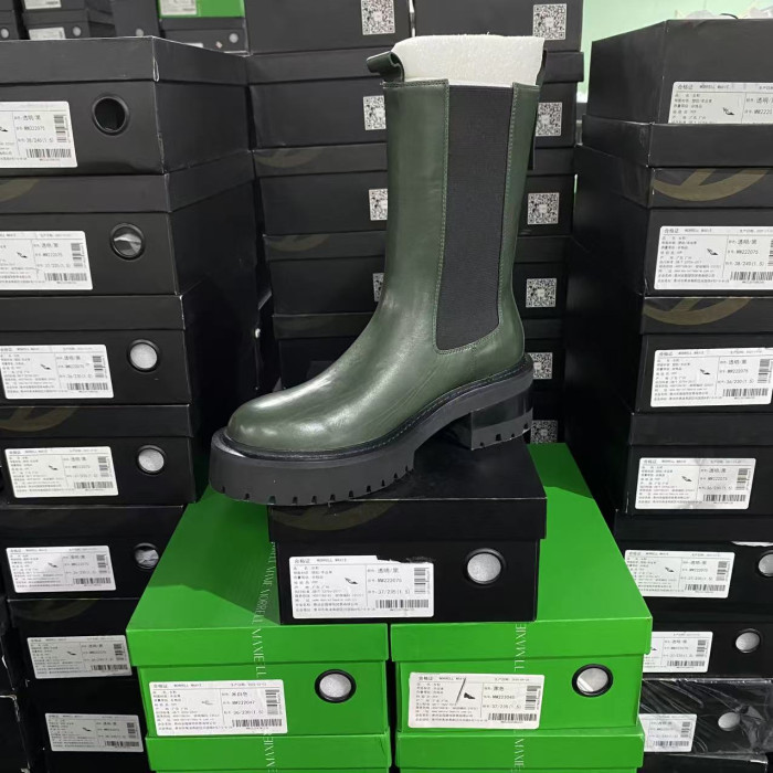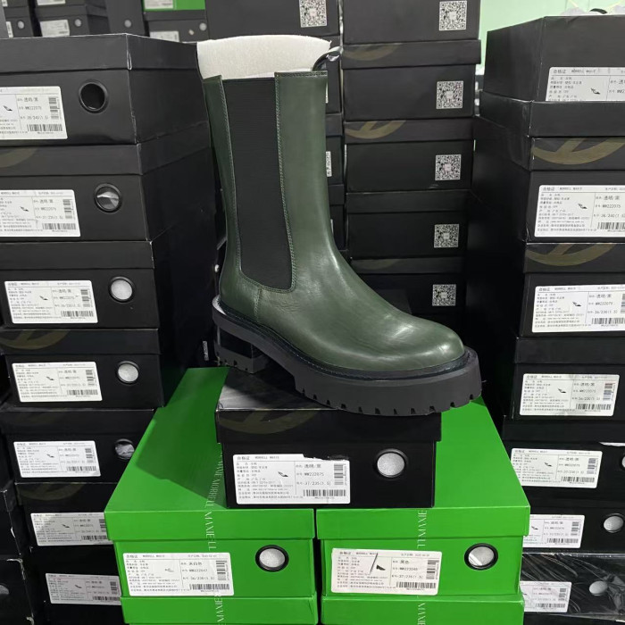 美國設計師買手高奢品牌K牛皮英倫風厚底長筒菸琯靴4144墨綠色