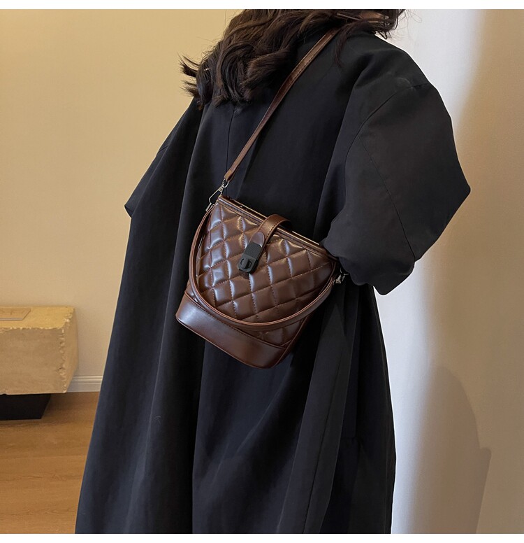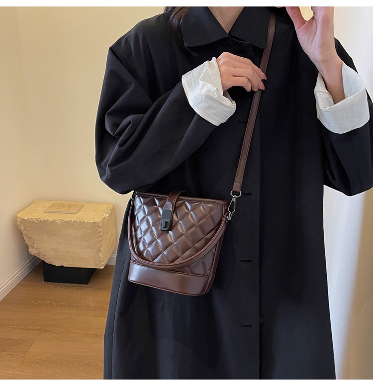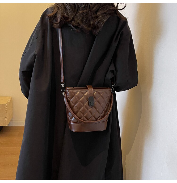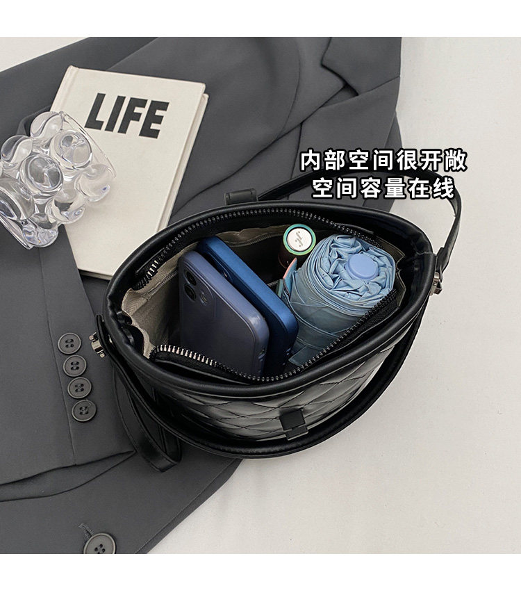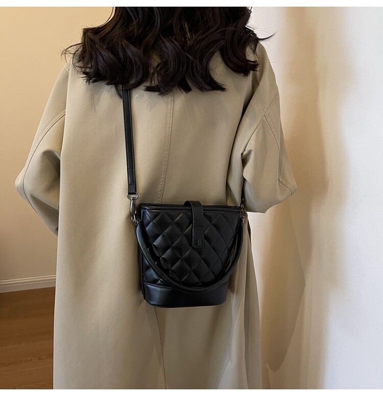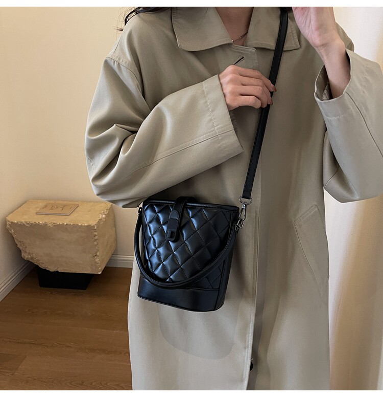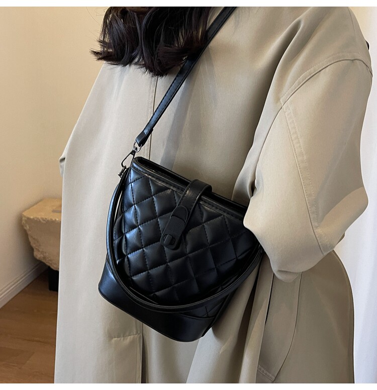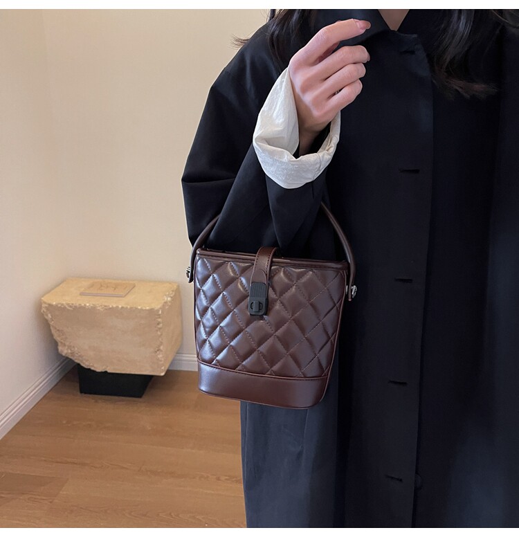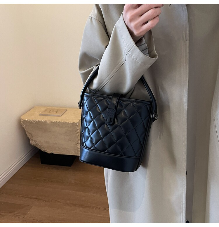時尚百搭手拎包包女2025新款冬季小香風菱格水桶包高級質感斜後後背包
