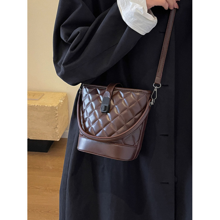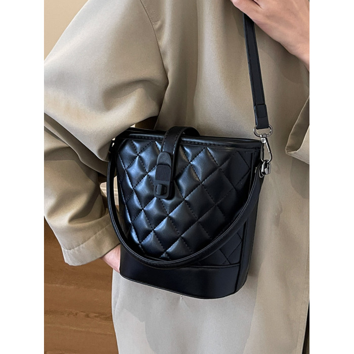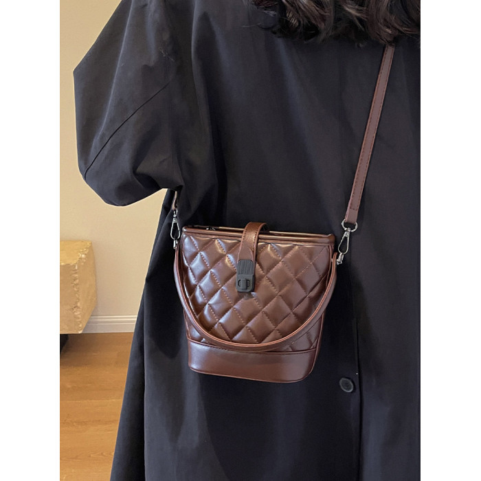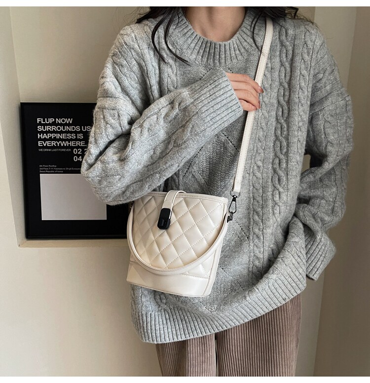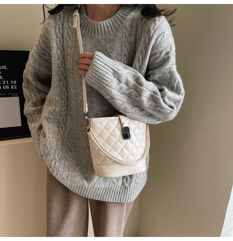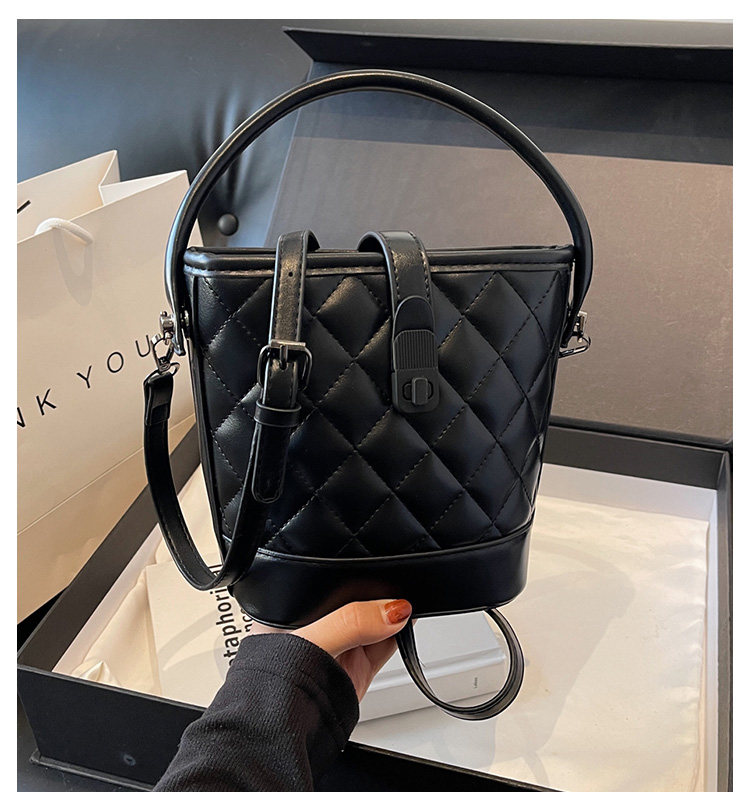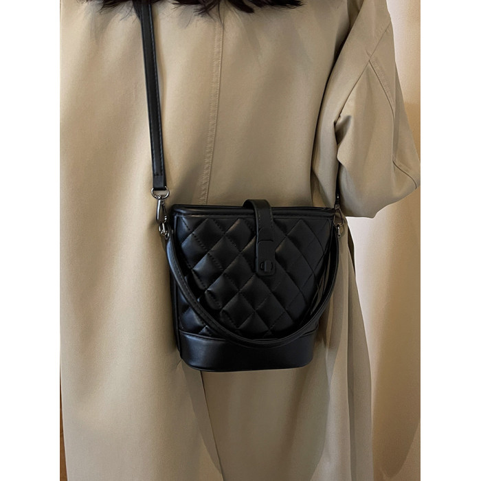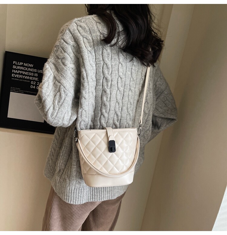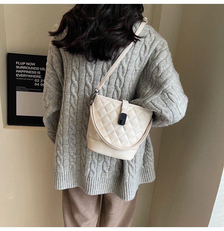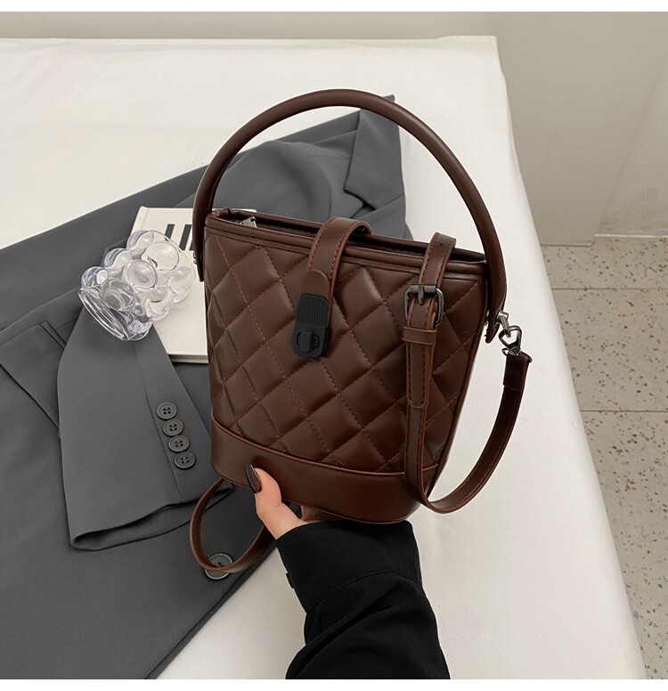 時尚百搭手拎包包女2025新款冬季小香風菱格水桶包高級質感斜後後背包