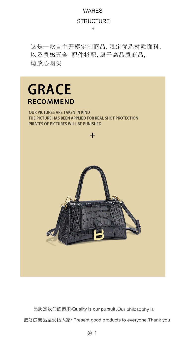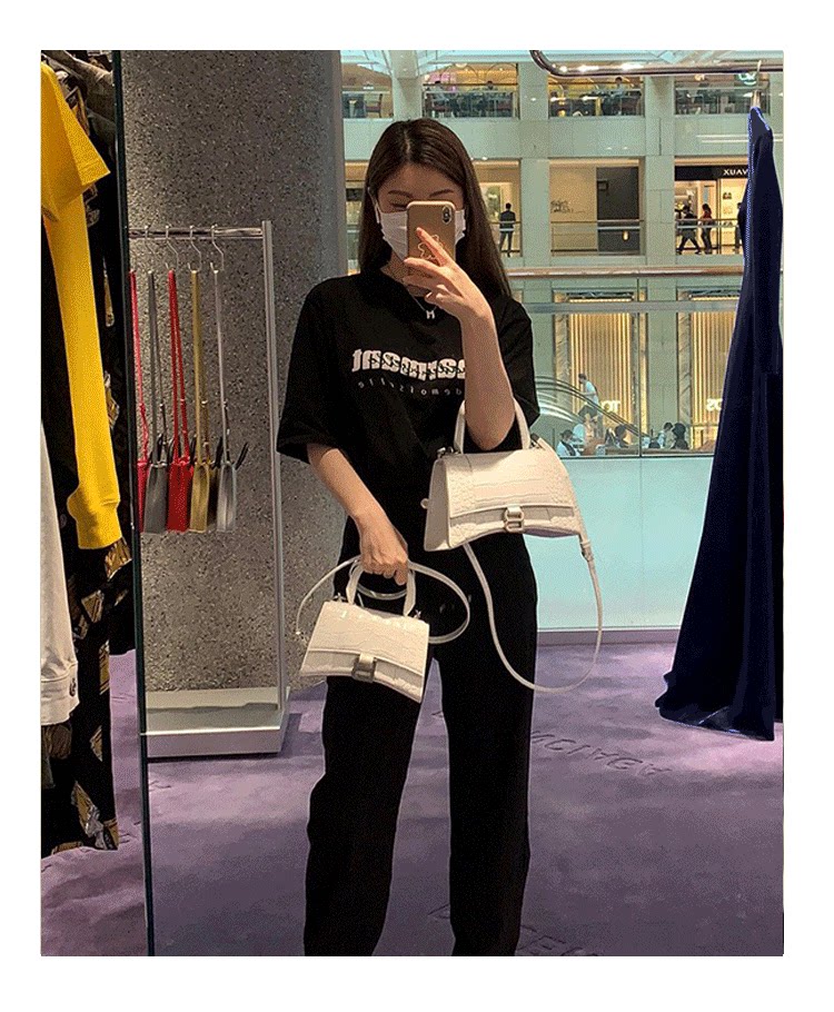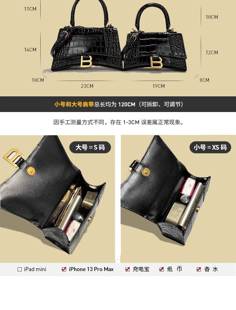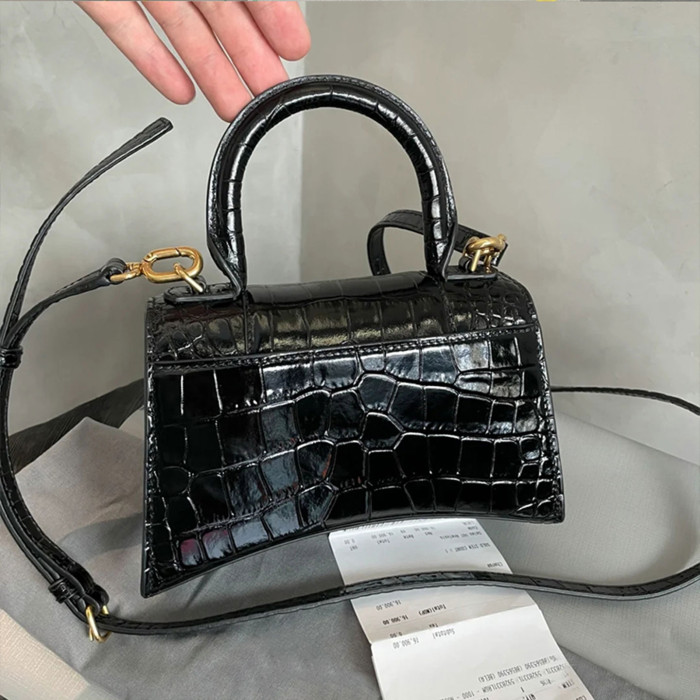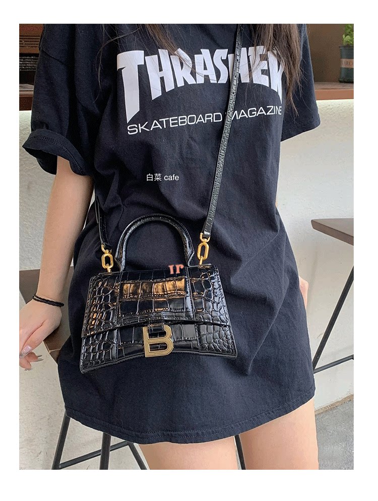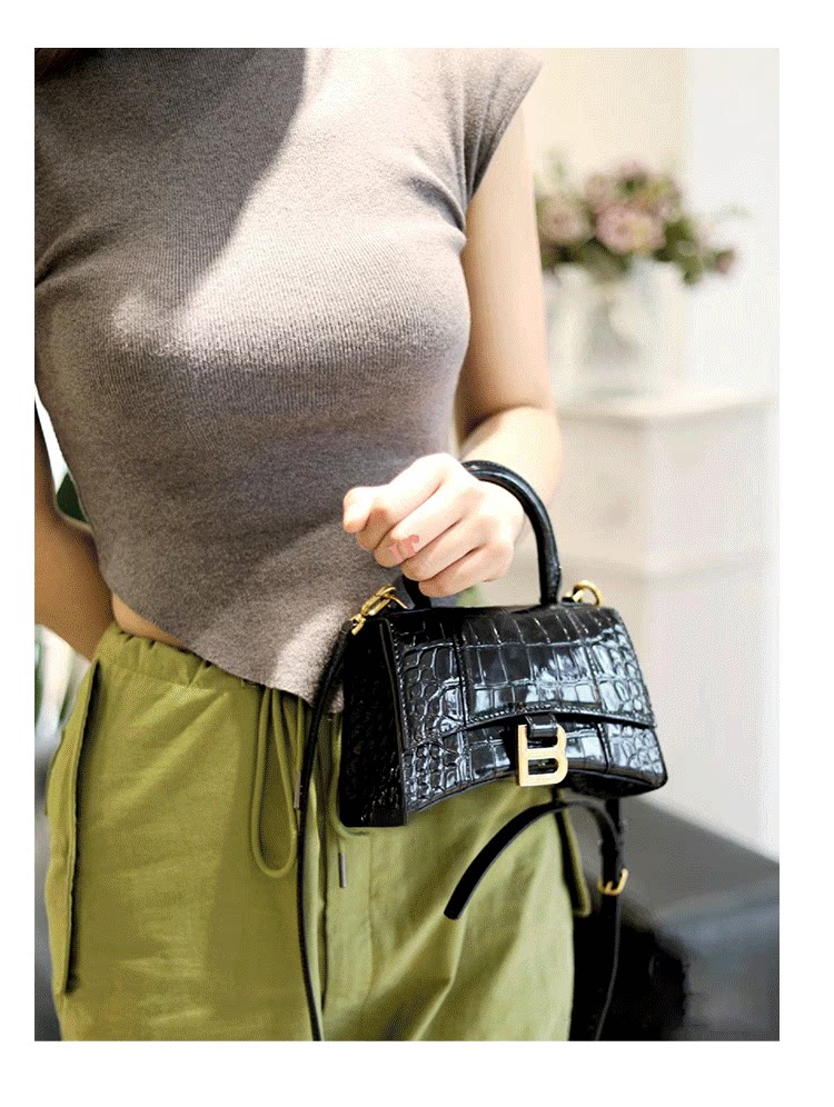 高級感B家沙漏包高版本小衆包包女2025新款鱷魚紋手提單肩斜後後背包