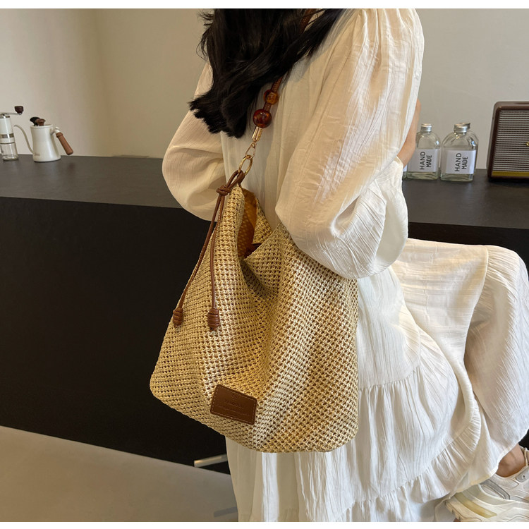 手拎休閒百搭編織包女2025夏季新款ins時尚簡約草編包潮流單肩包