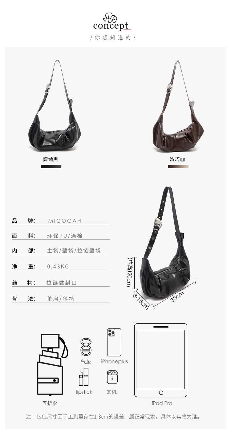 Micocah「自在可頌」通勤新款包包斜後後背包大容量牛角包女包餃子包