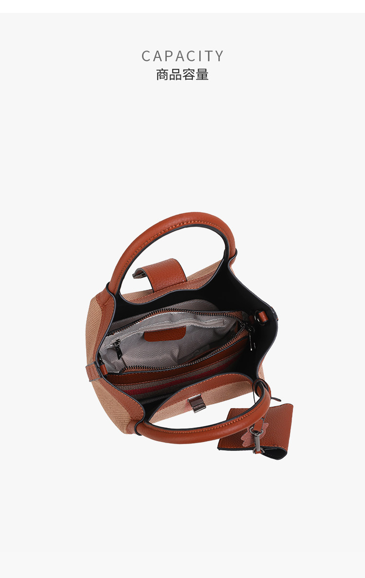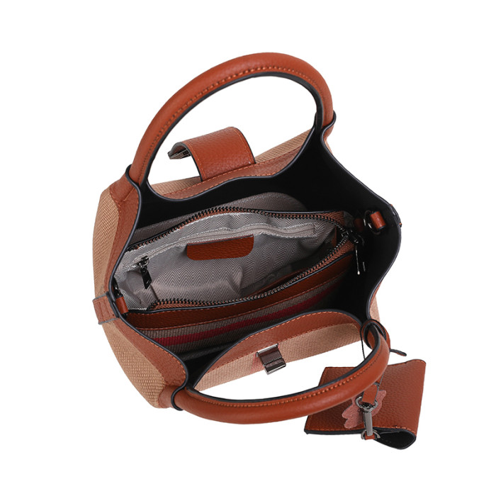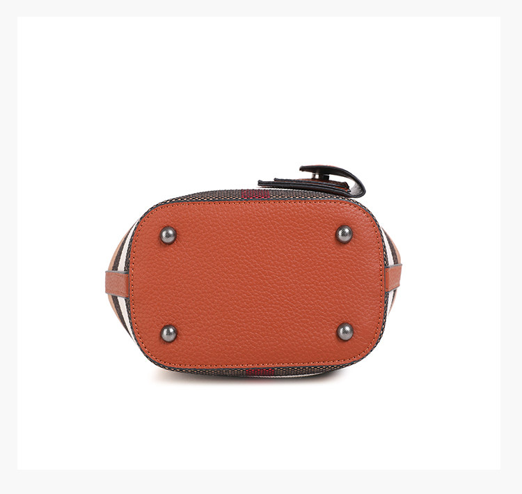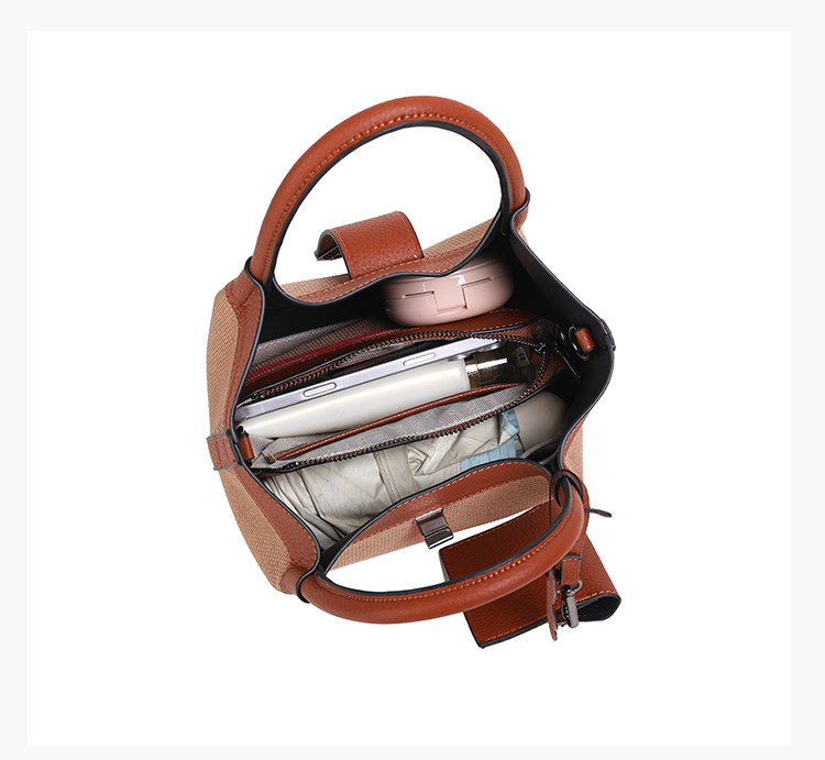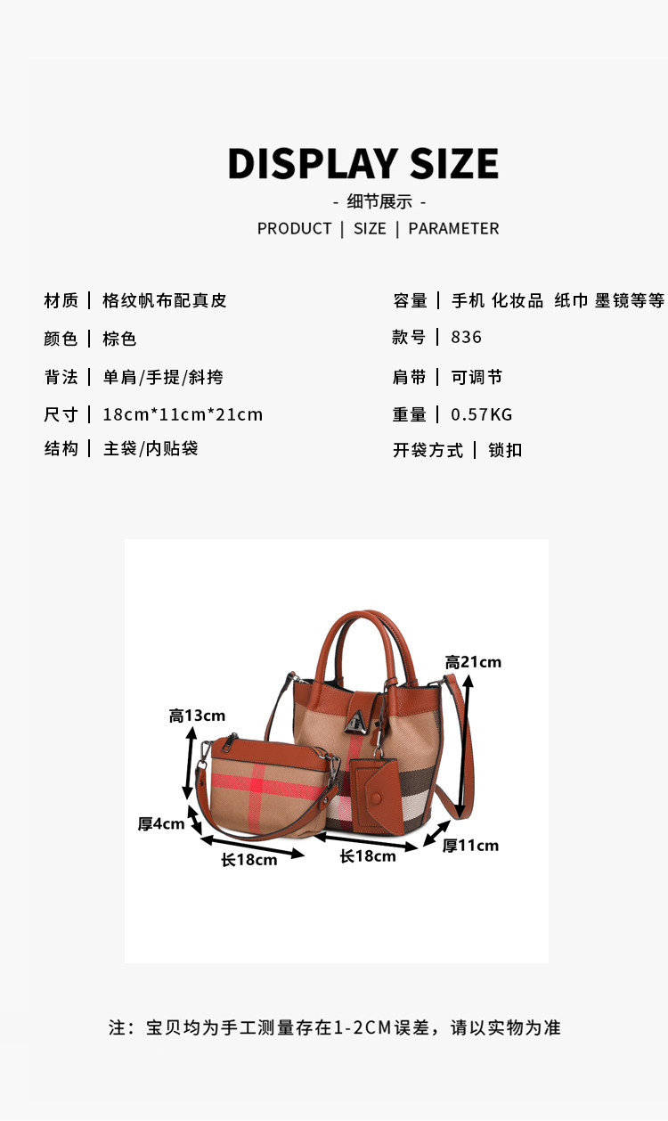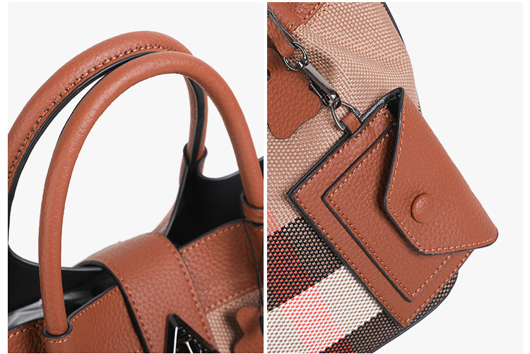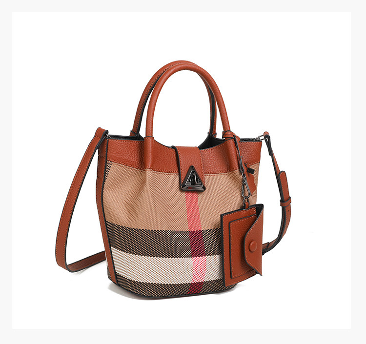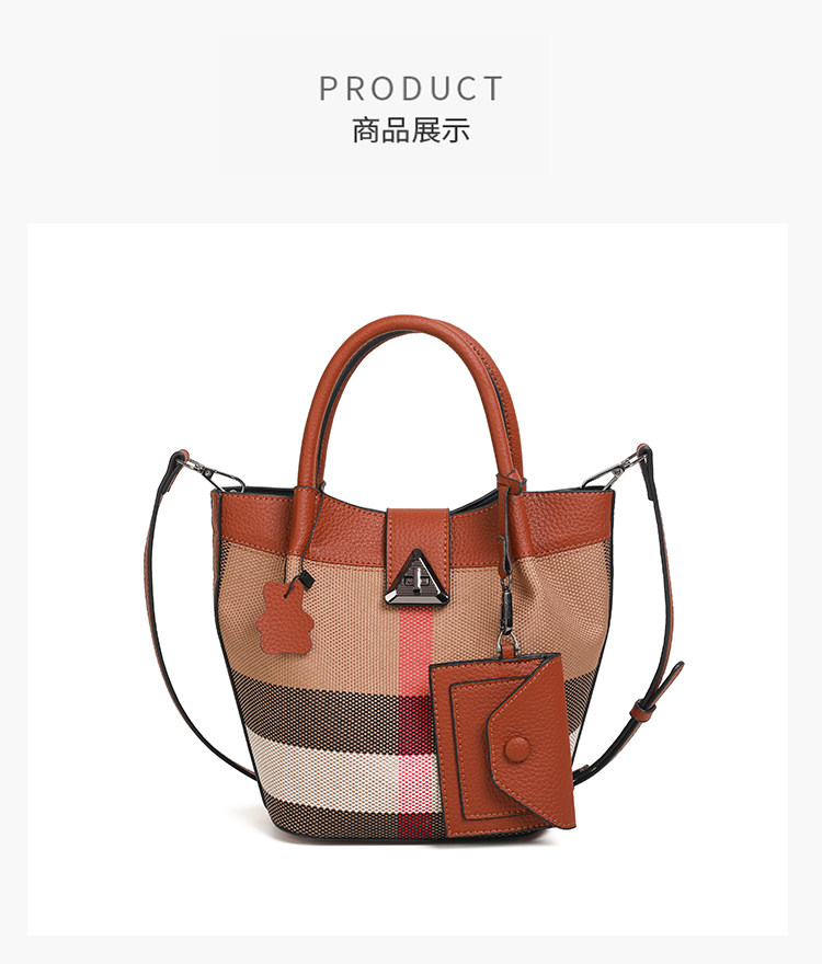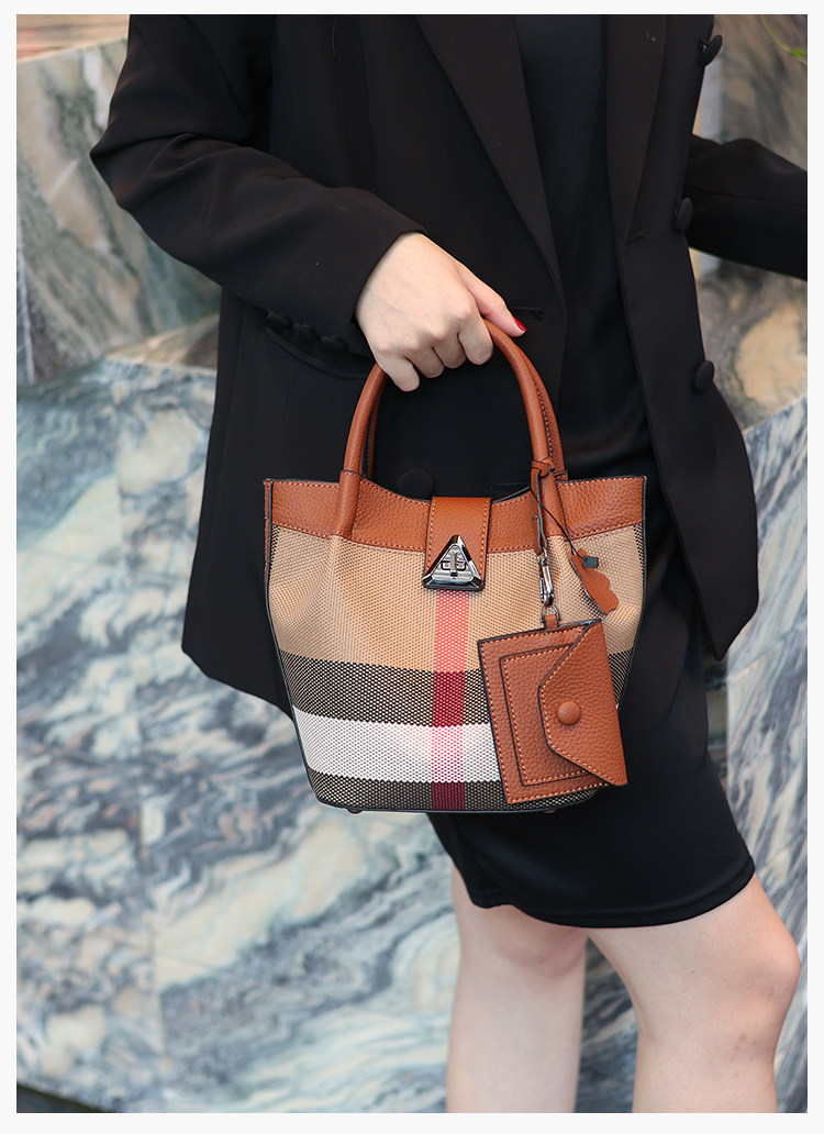 包包女新款格子帆布包時尚真皮子母包三件套水桶包手提單肩斜後後背包