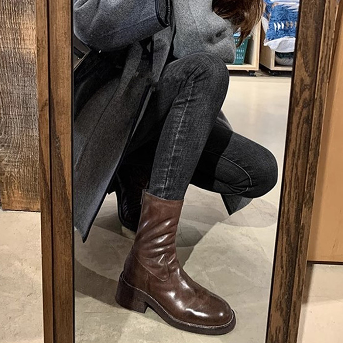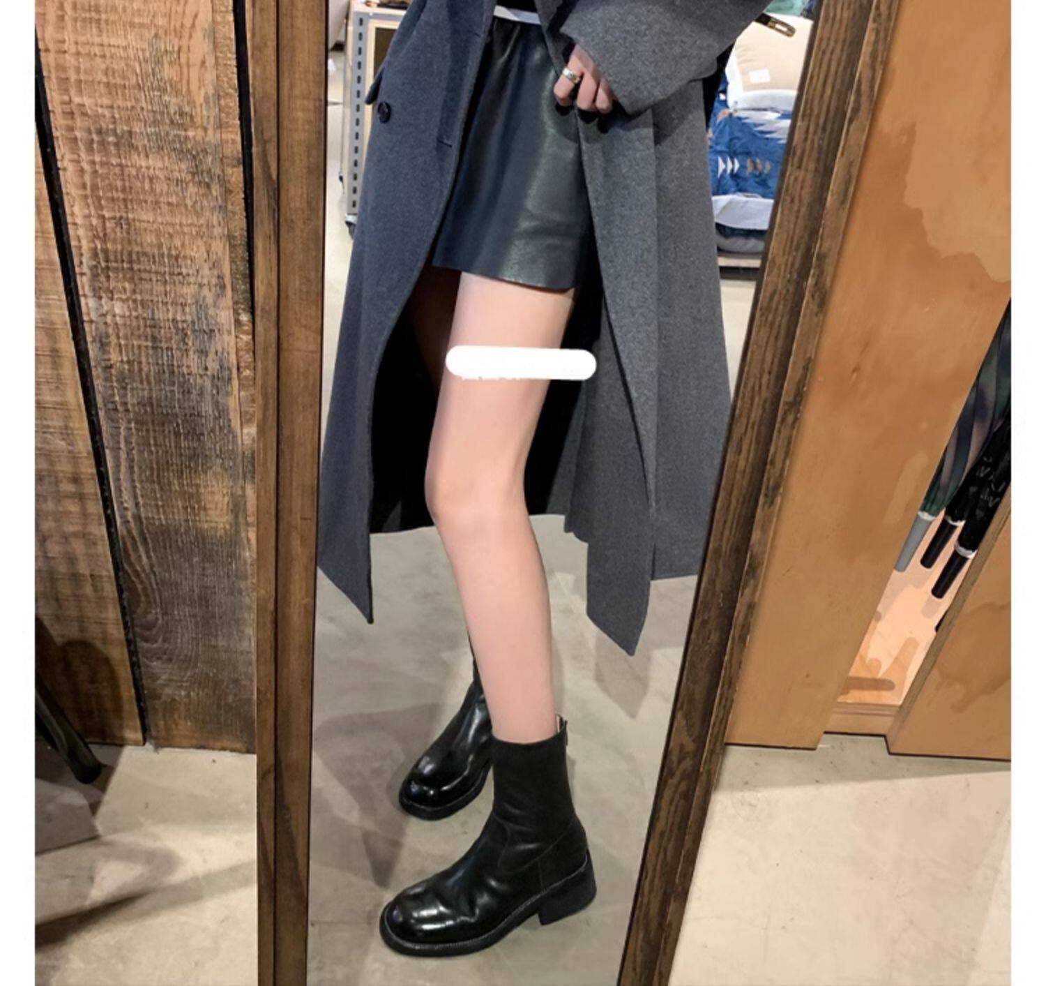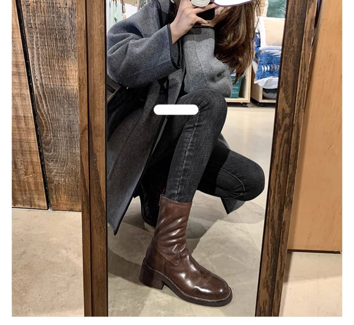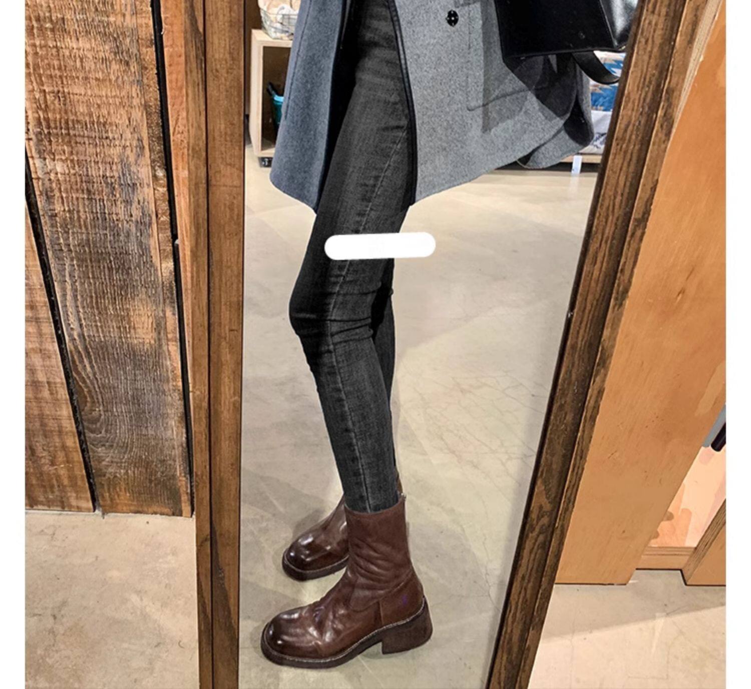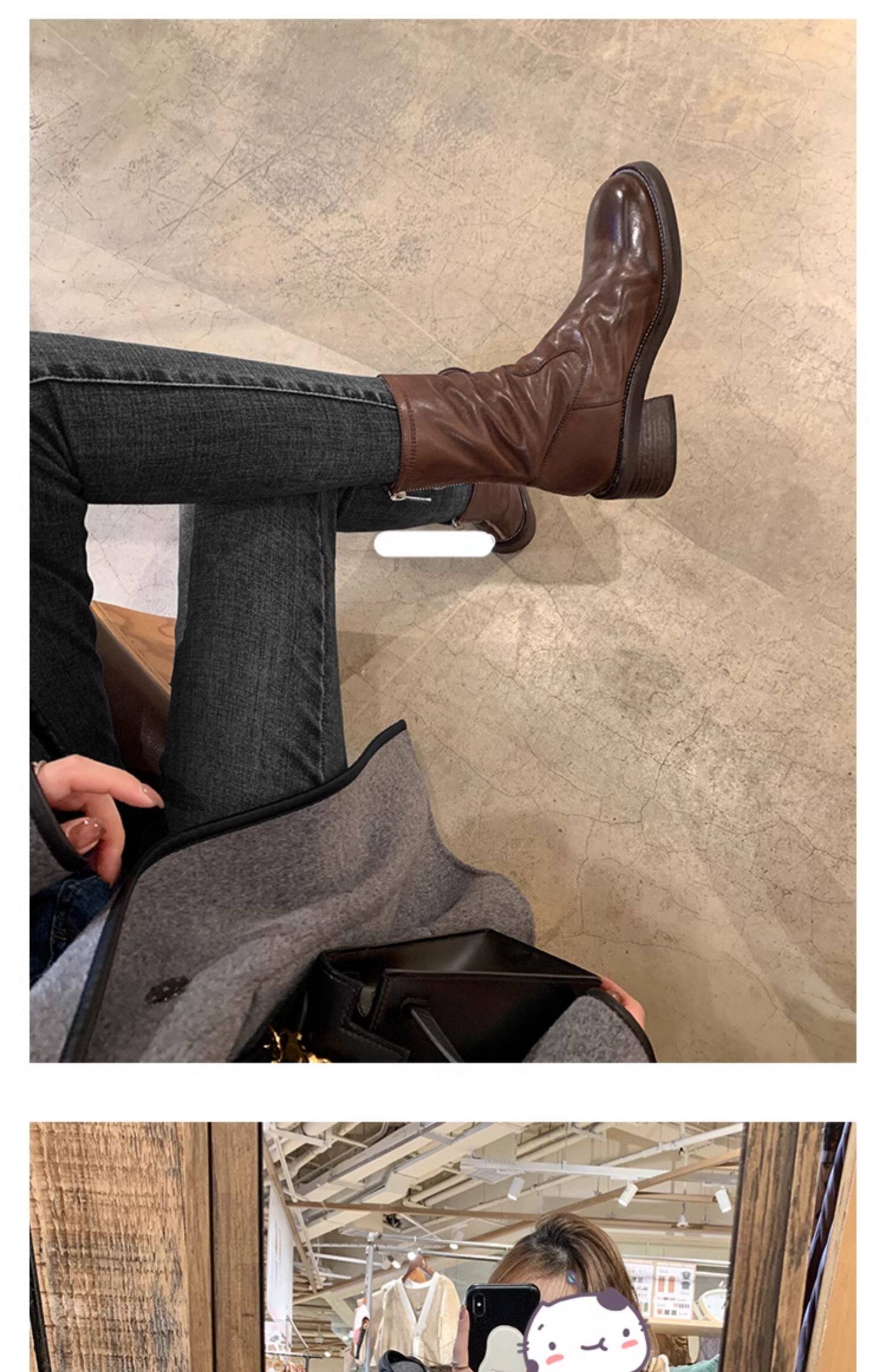 厚底瘦瘦靴子女2025新款秋冬韓系小踝靴粗跟法式真皮圓頭馬丁短靴