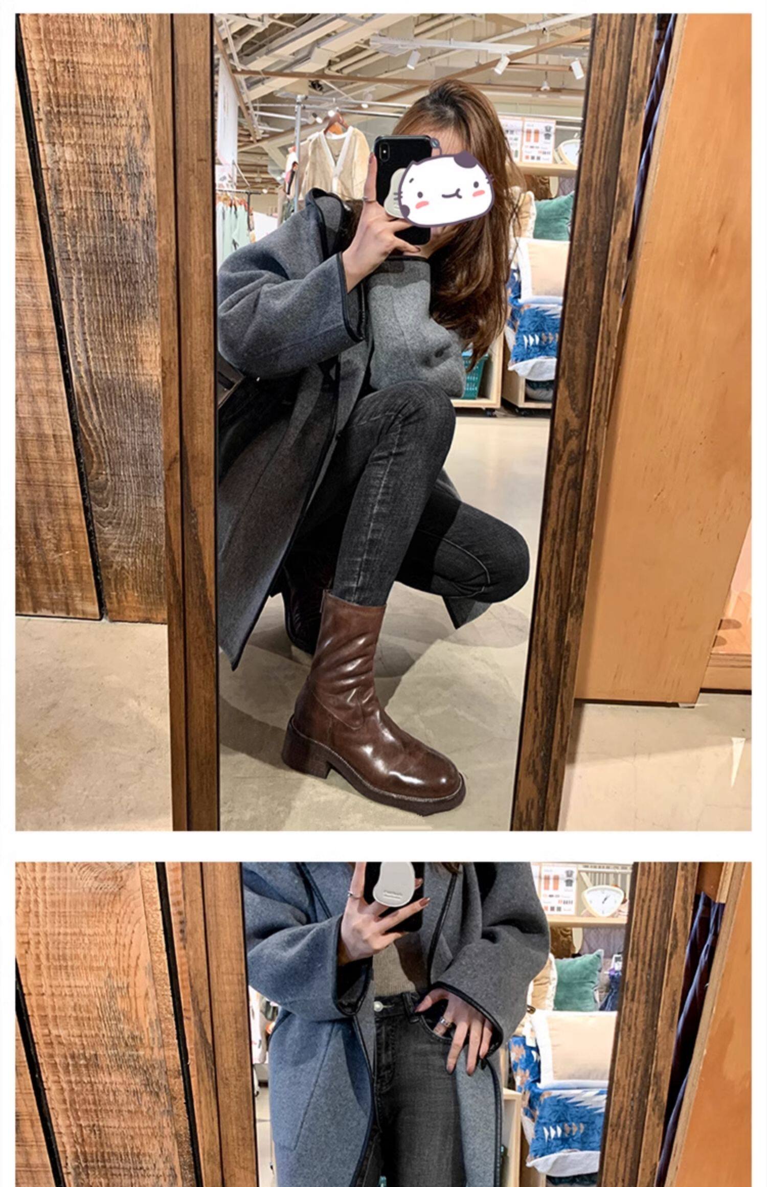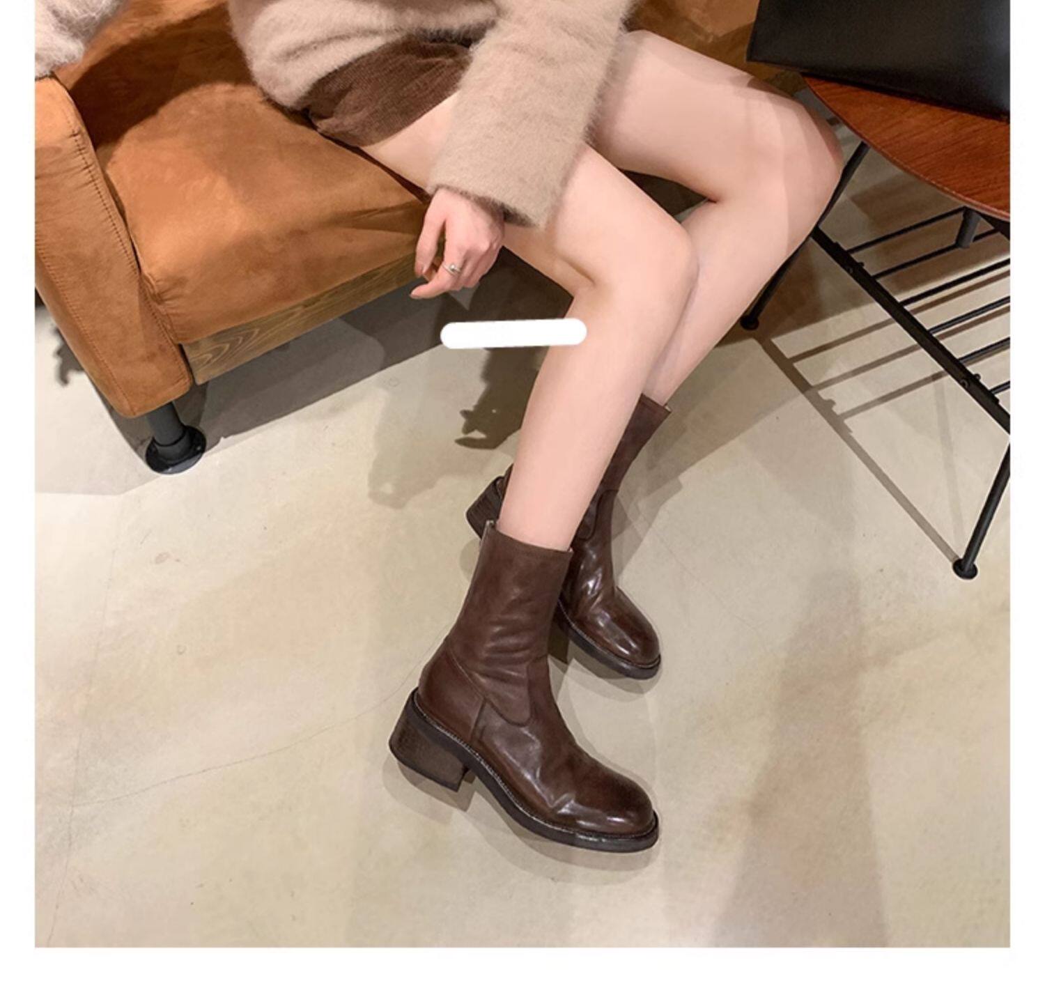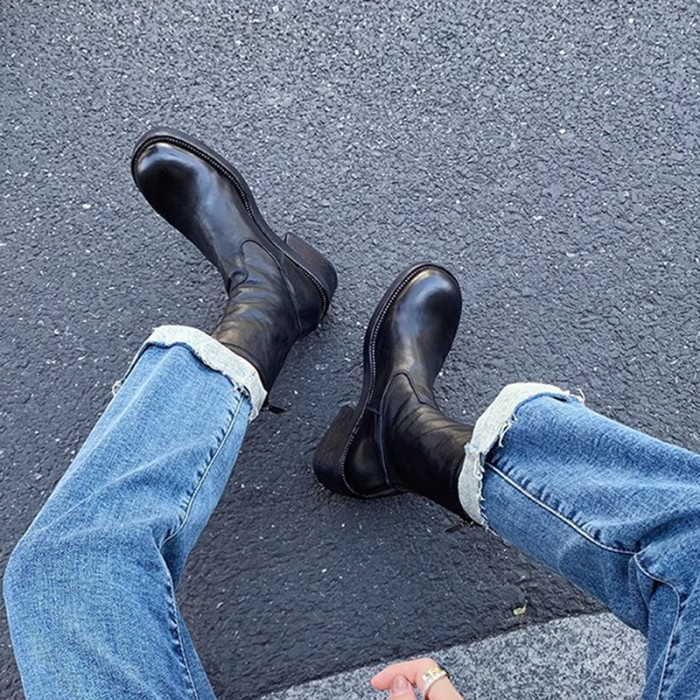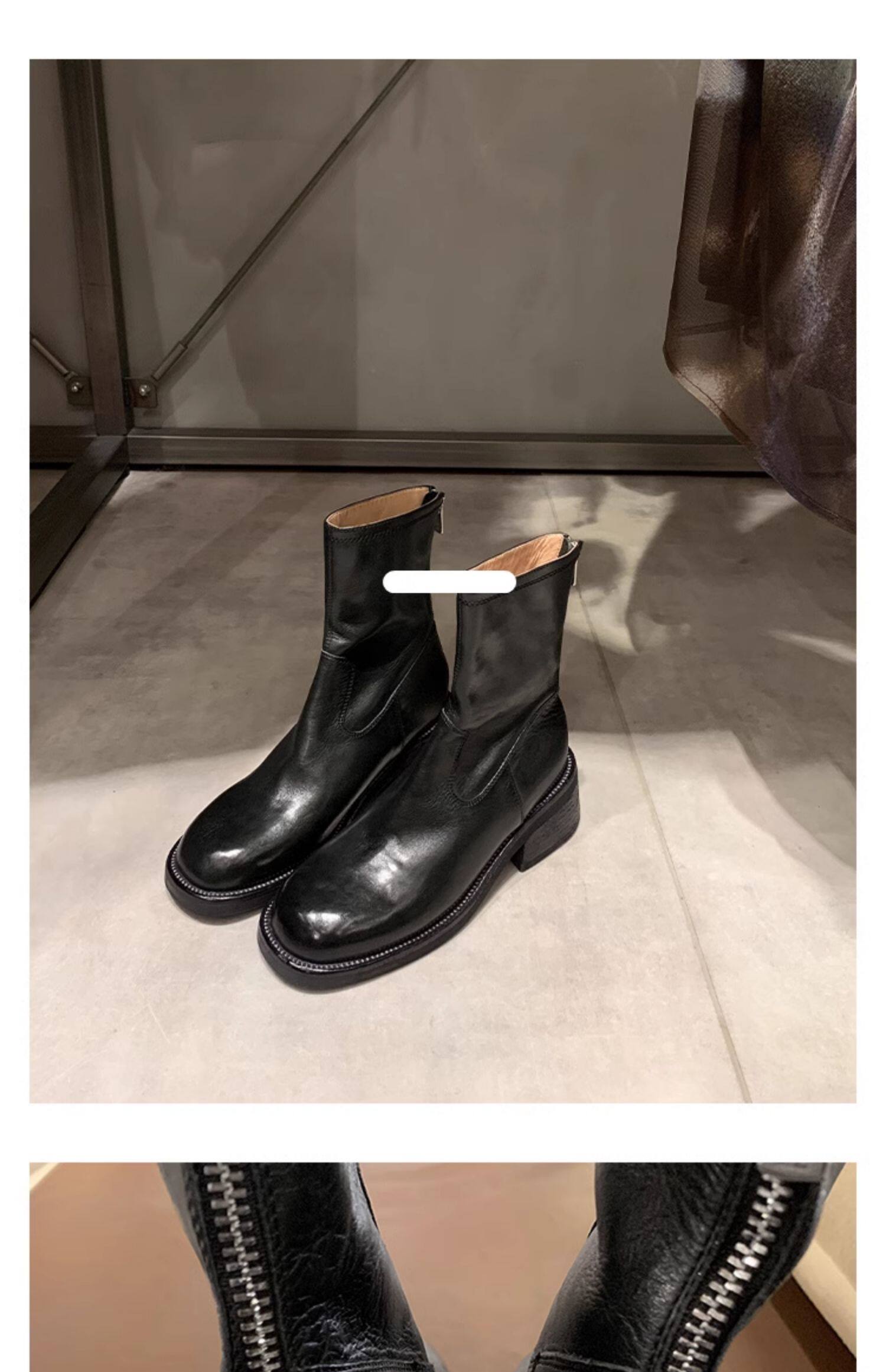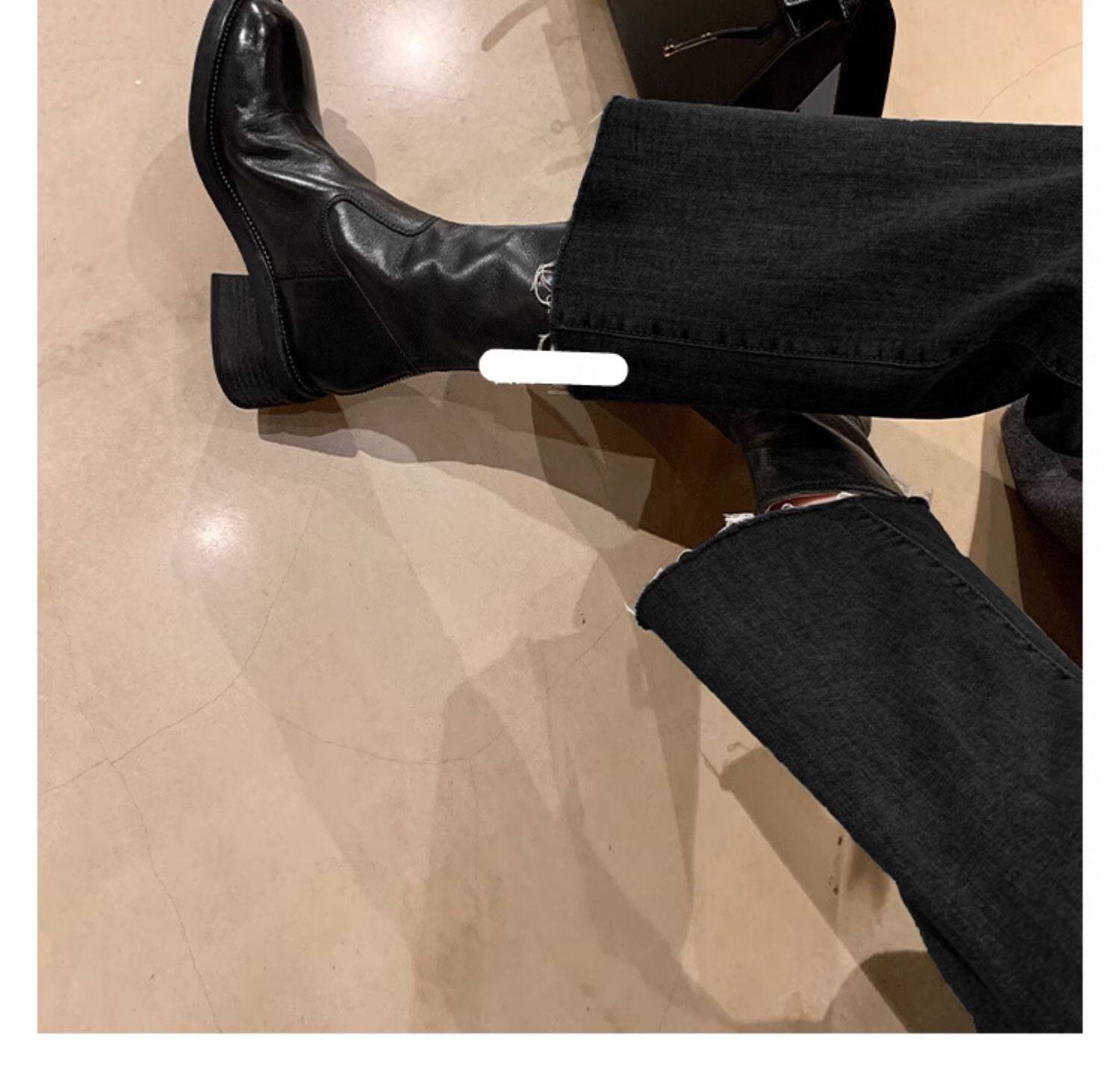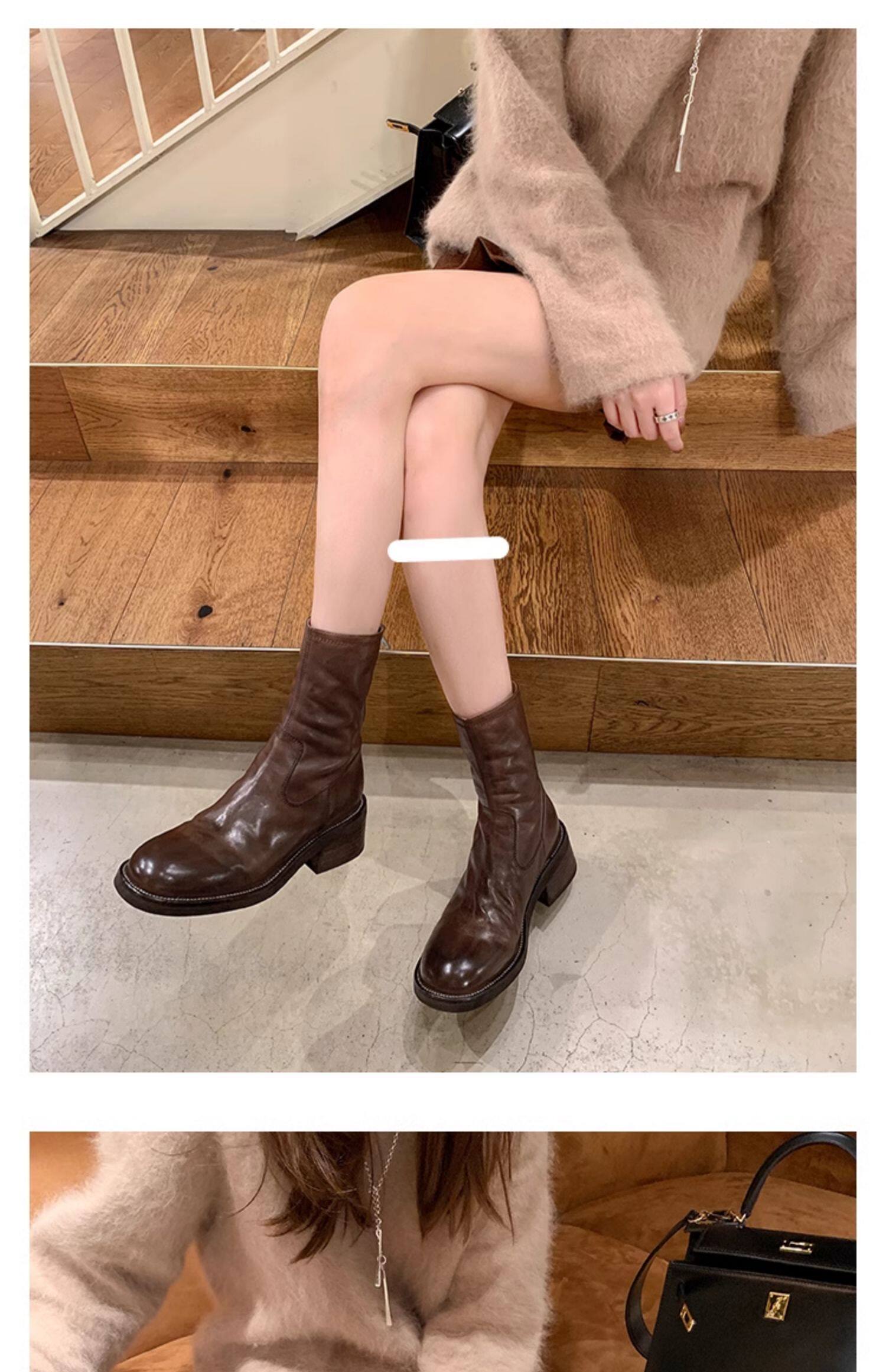 厚底瘦瘦靴子女2025新款秋冬韓系小踝靴粗跟法式真皮圓頭馬丁短靴
