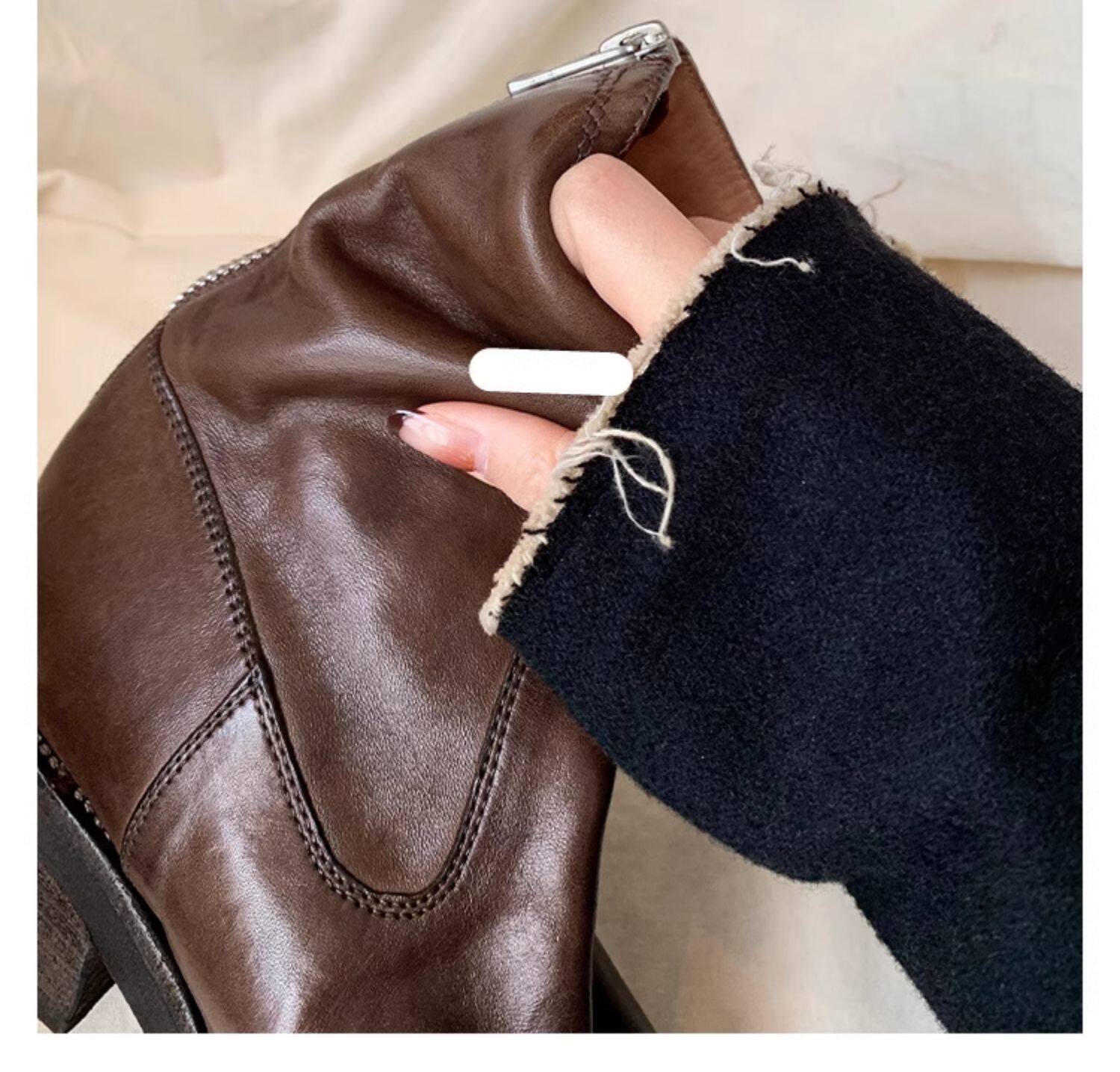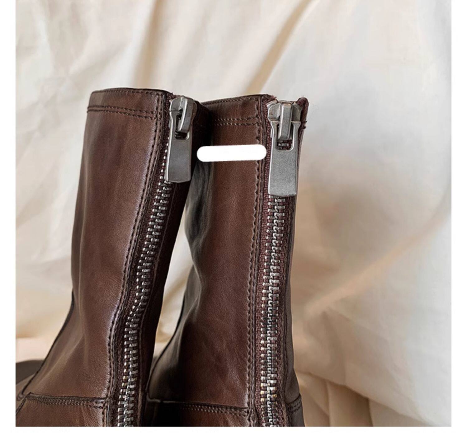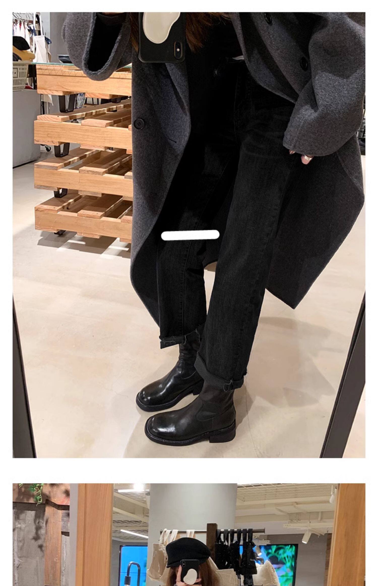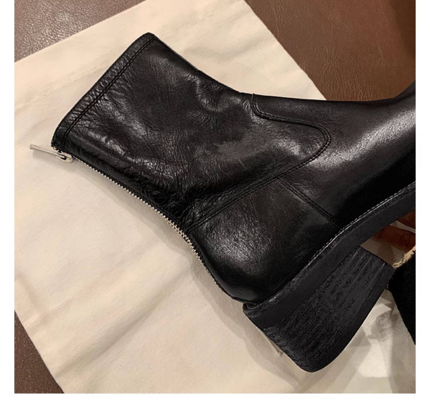 厚底瘦瘦靴子女2025新款秋冬韓系小踝靴粗跟法式真皮圓頭馬丁短靴
