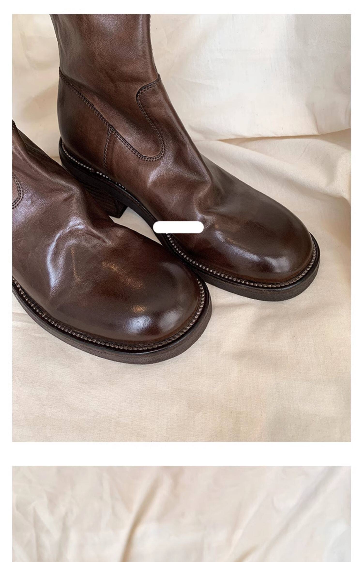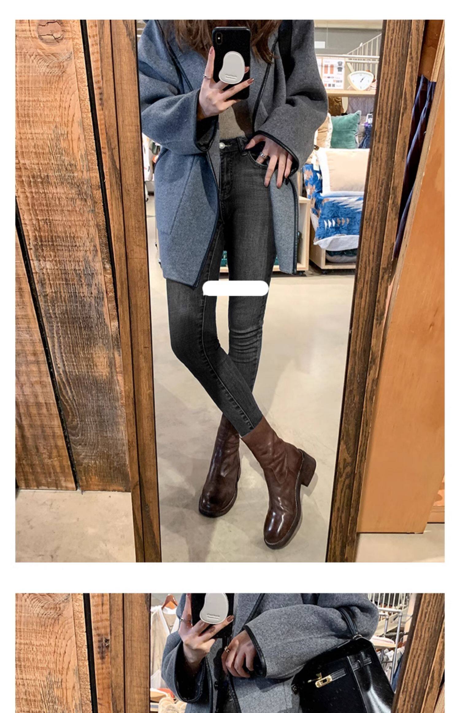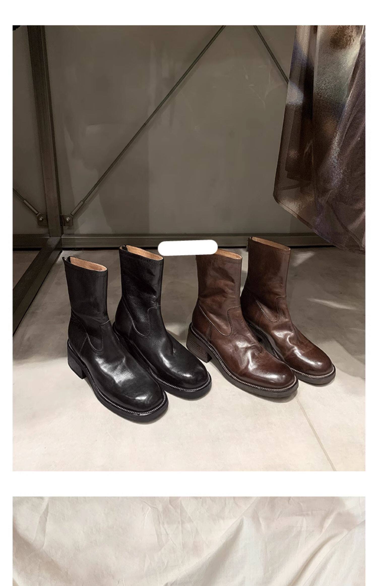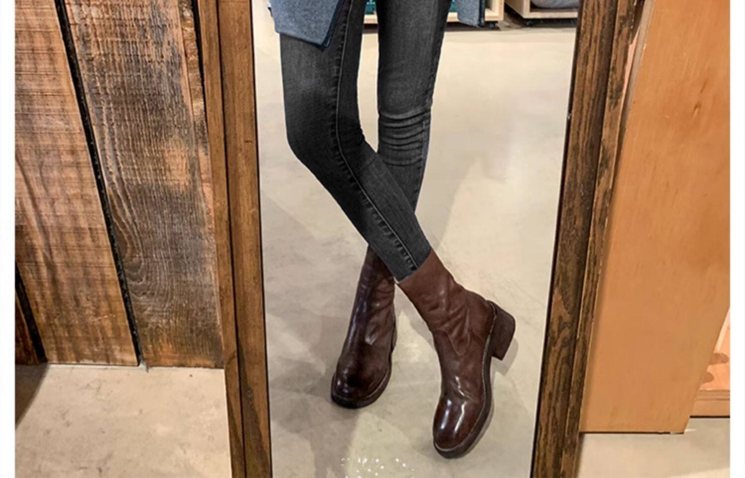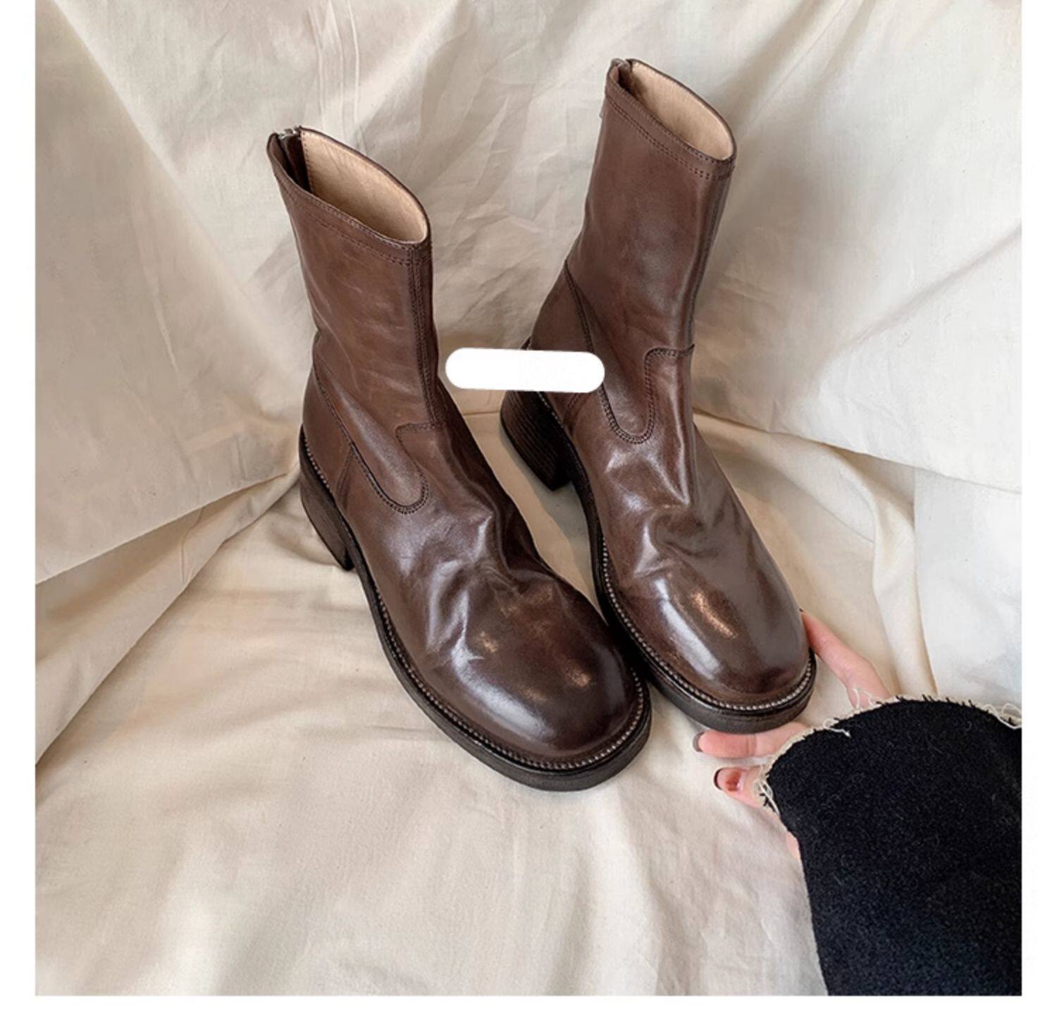 厚底瘦瘦靴子女2025新款秋冬韓系小踝靴粗跟法式真皮圓頭馬丁短靴