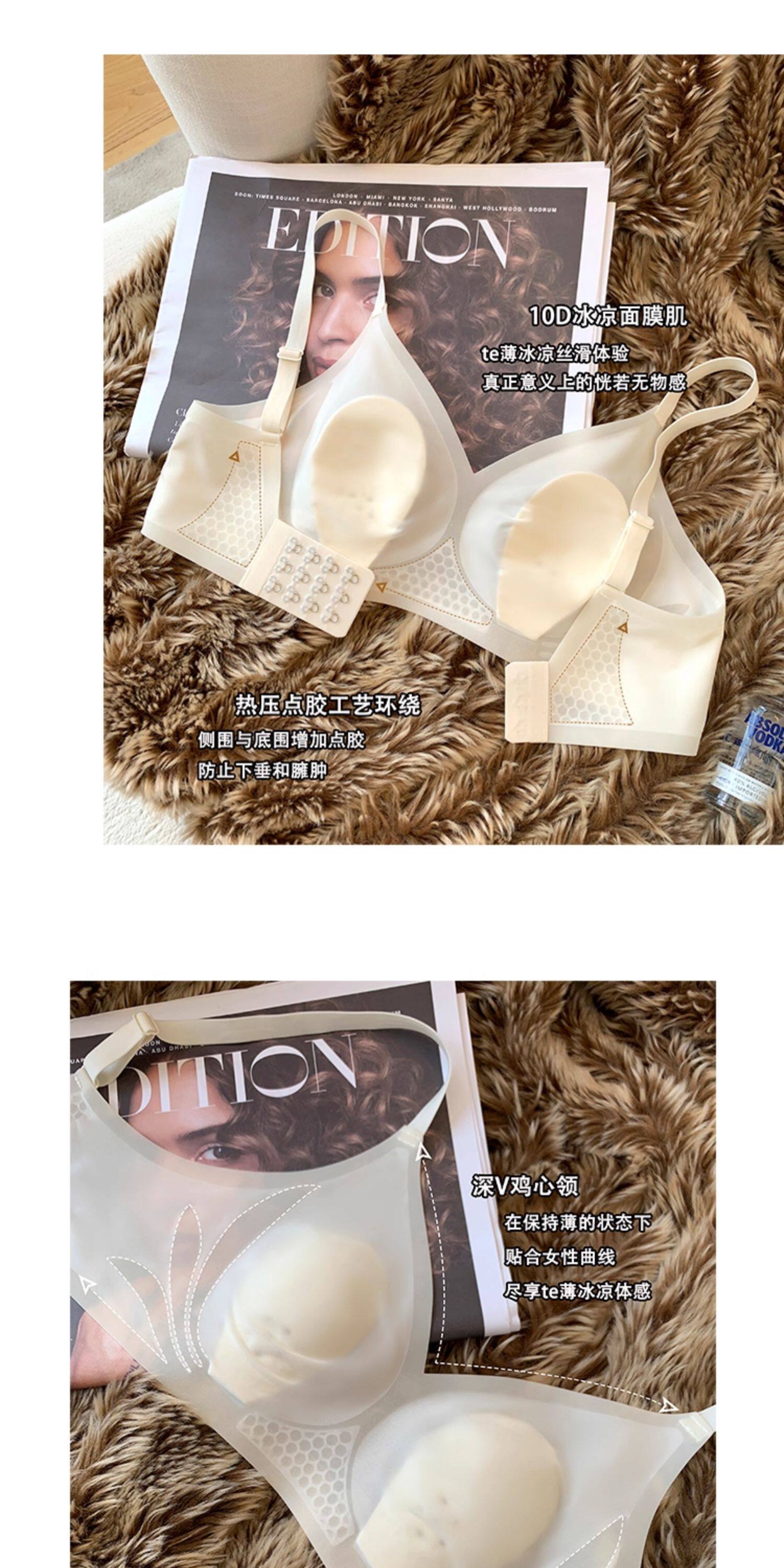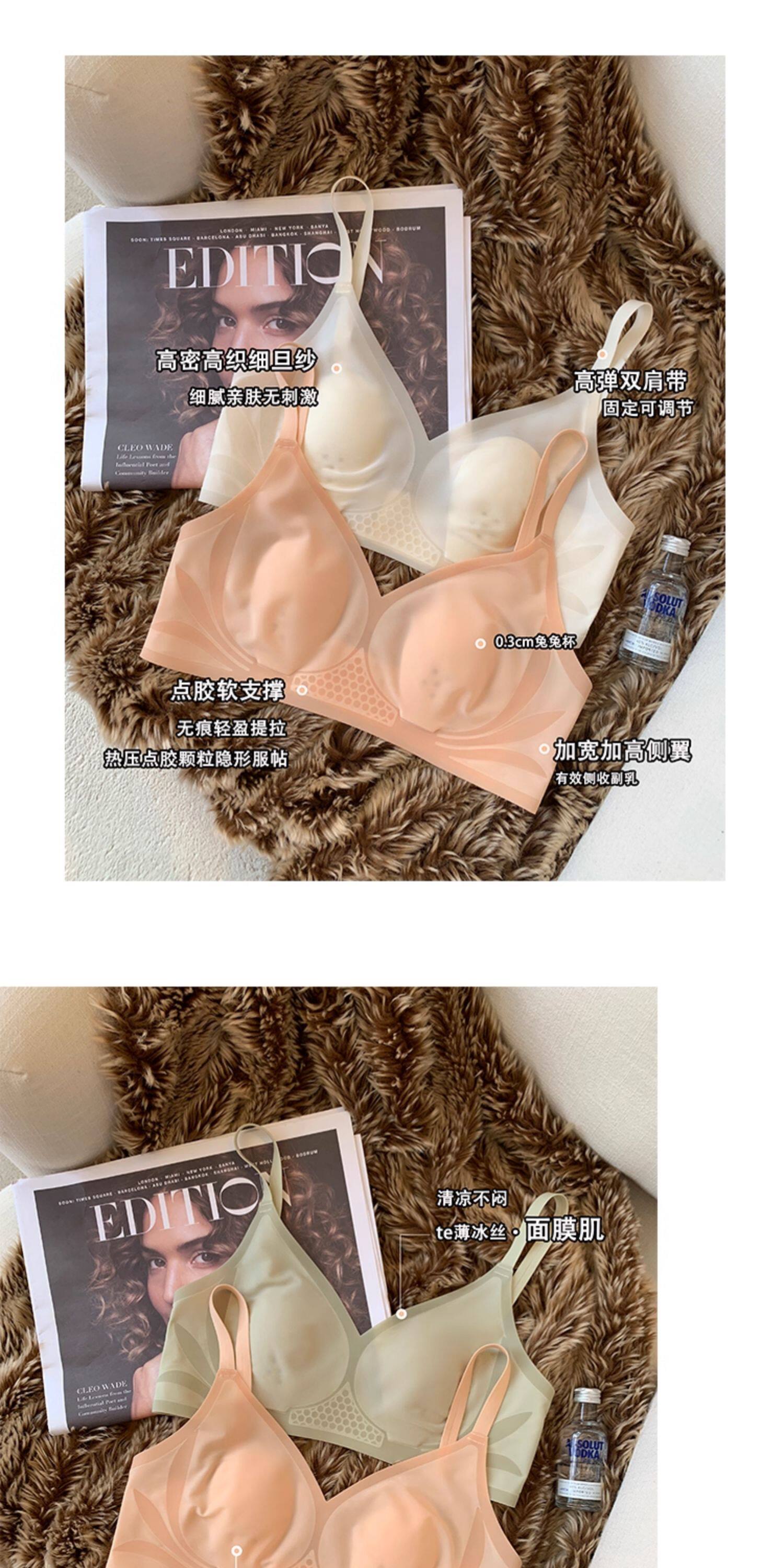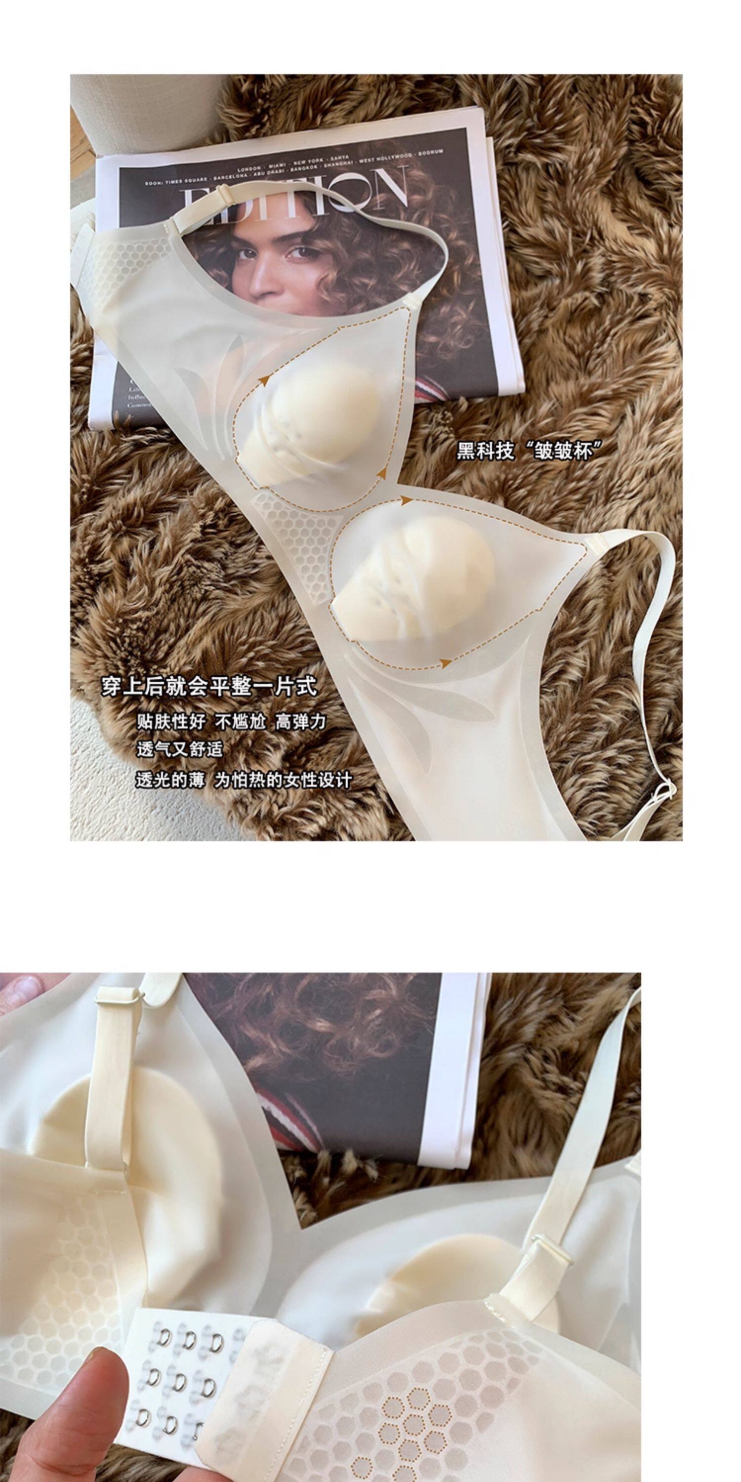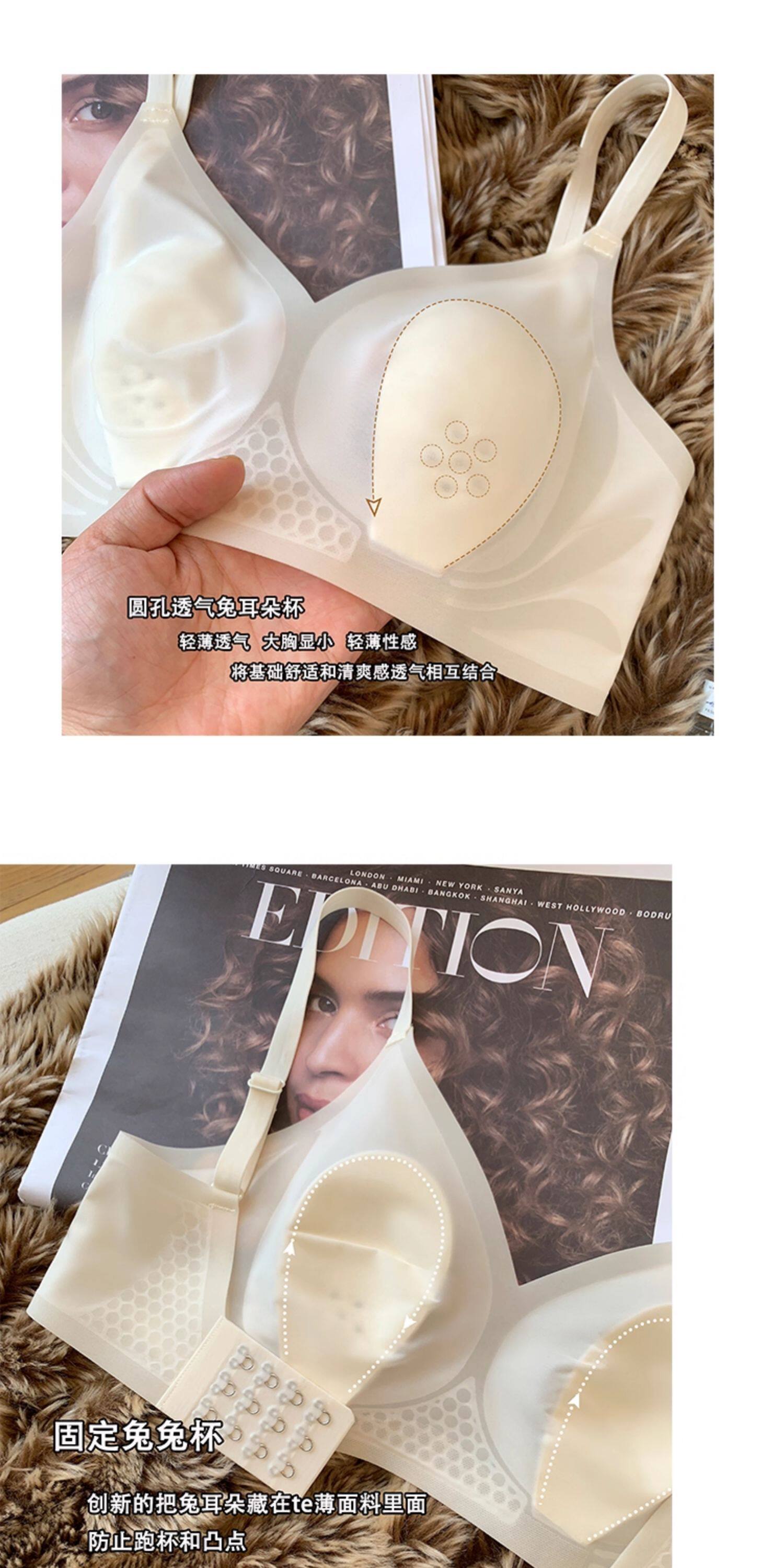 超薄款裸感無痕內衣女大胸顯小胸收副乳兔耳朵杯無鋼圈透氣文胸罩