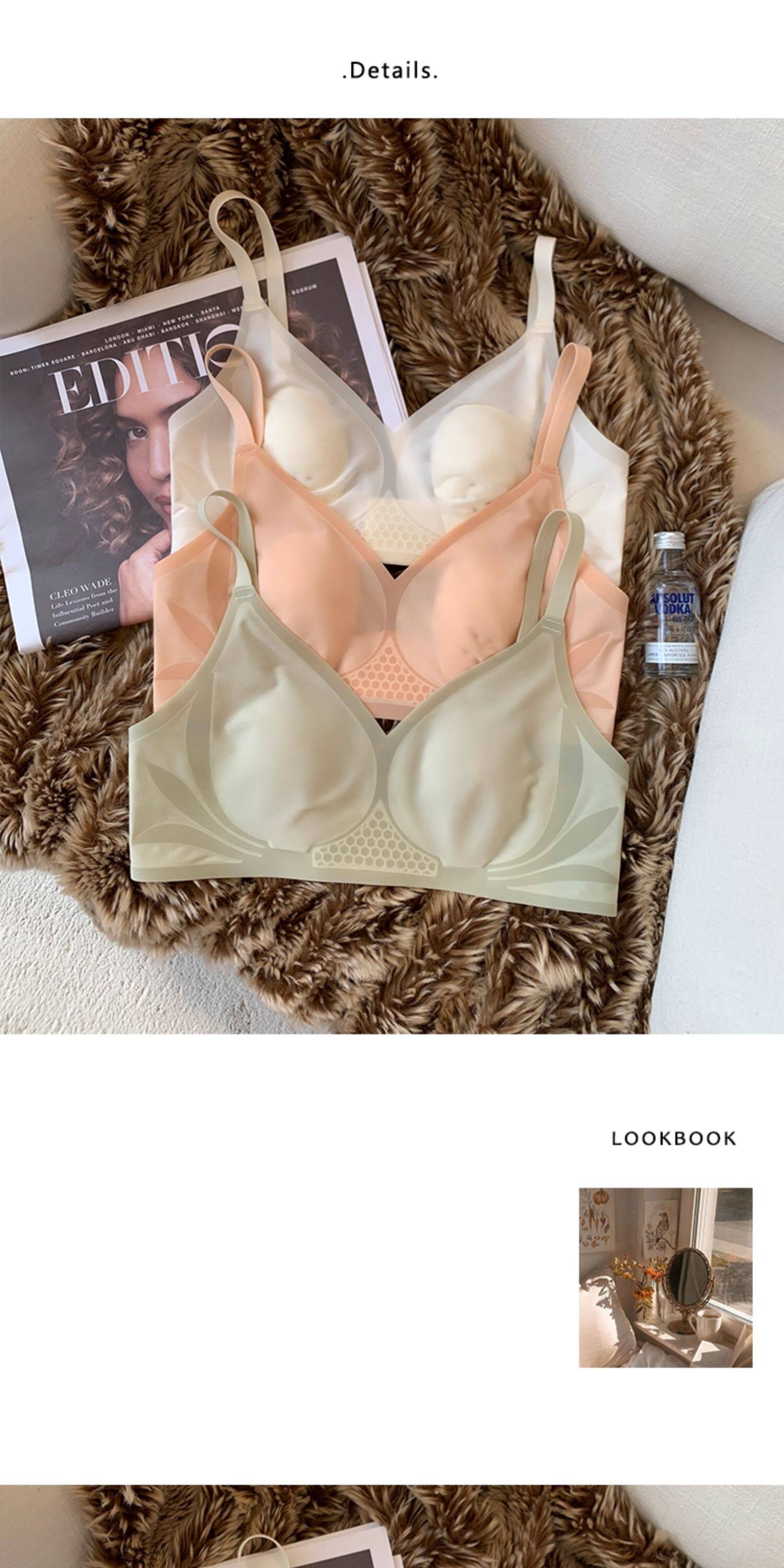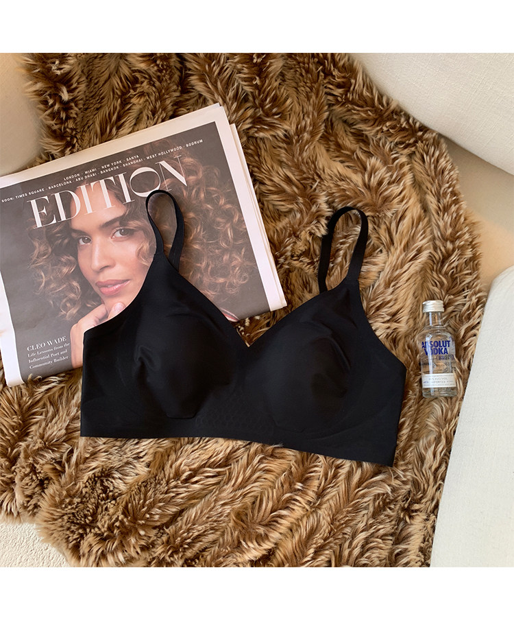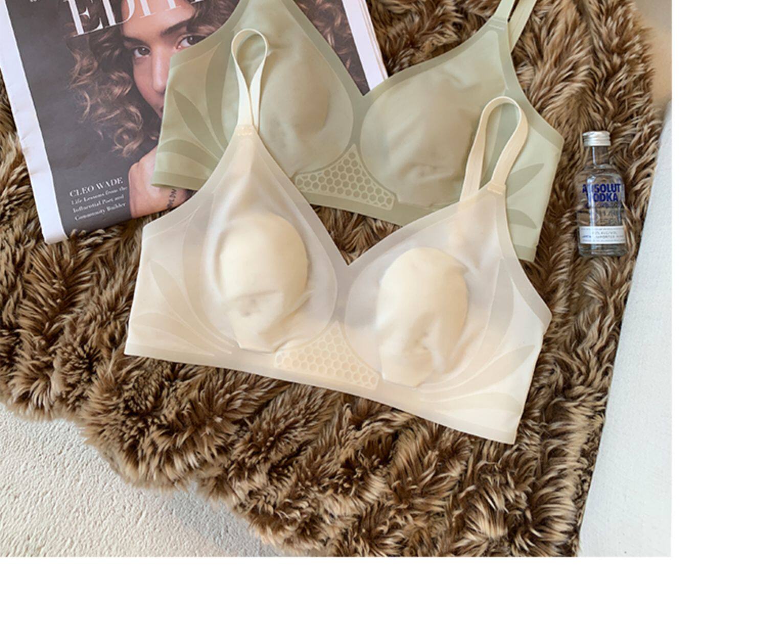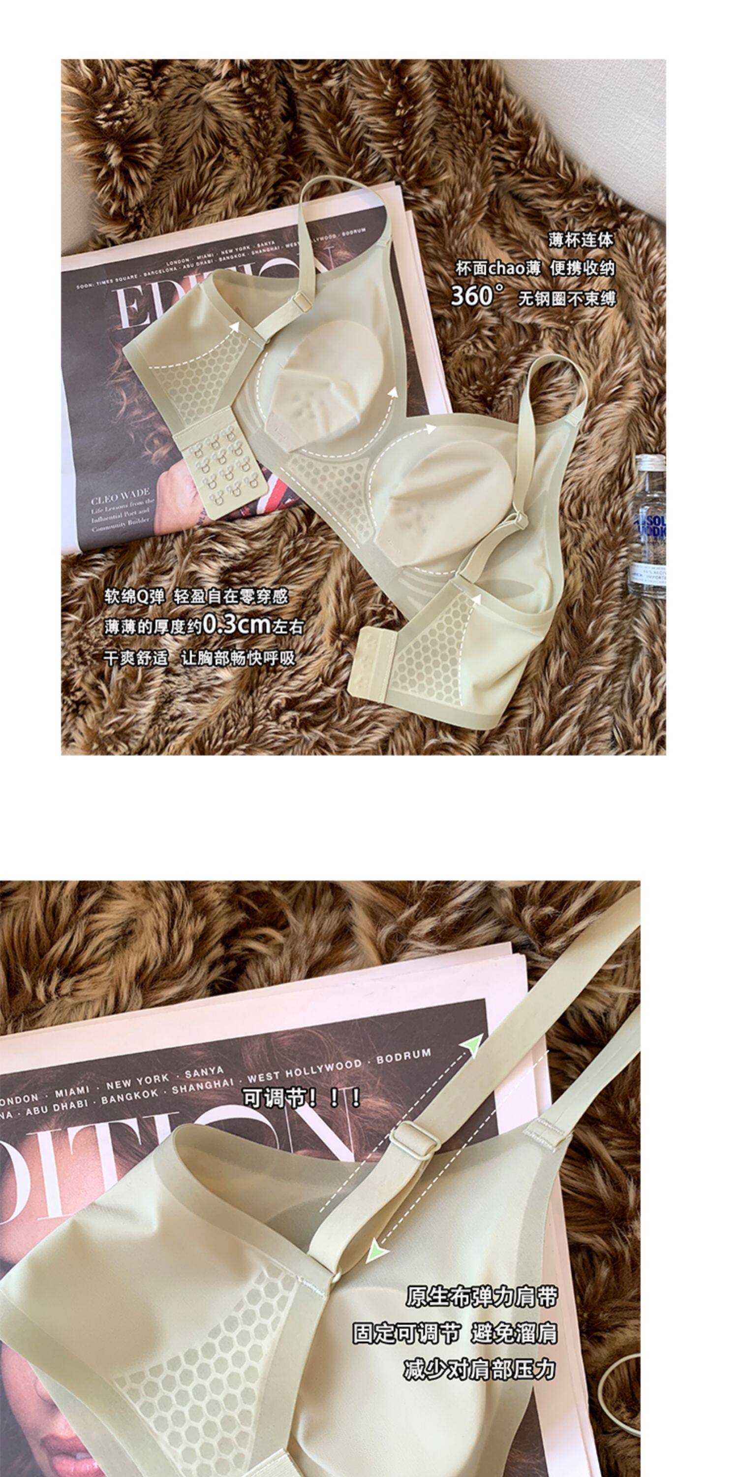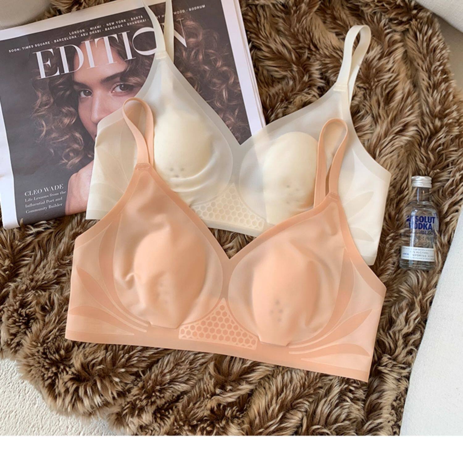 超薄款裸感無痕內衣女大胸顯小胸收副乳兔耳朵杯無鋼圈透氣文胸罩