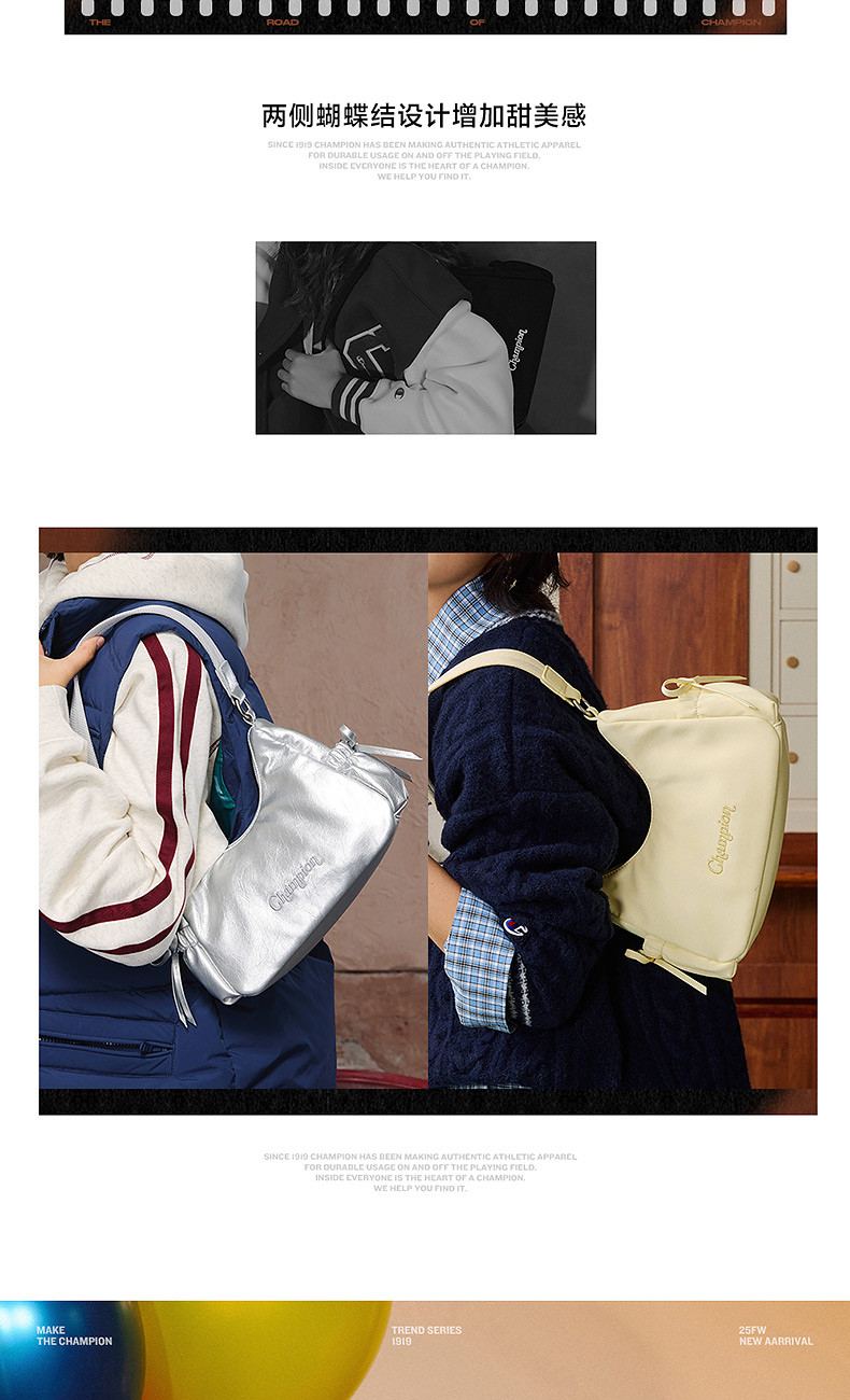 champion冠軍26春季新款女士單肩包斜休閒旅遊通勤可愛甜美蝴蝶結