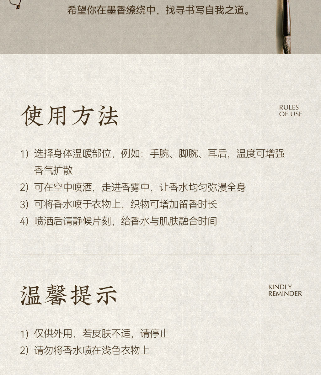 黑爪「尋墨」香水冷冽書墨香東方香中性持久淡香可攜式試香小樣2ml