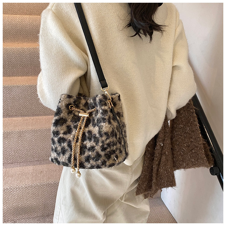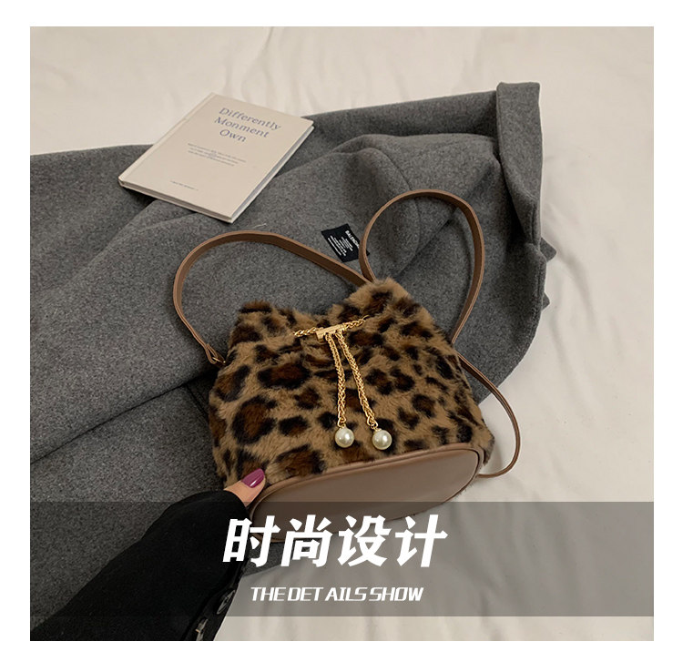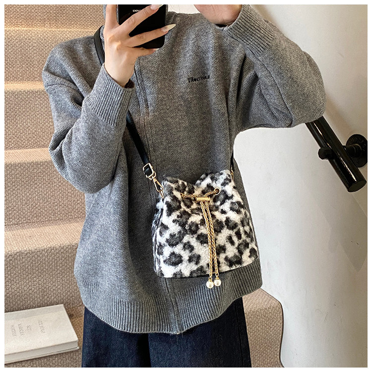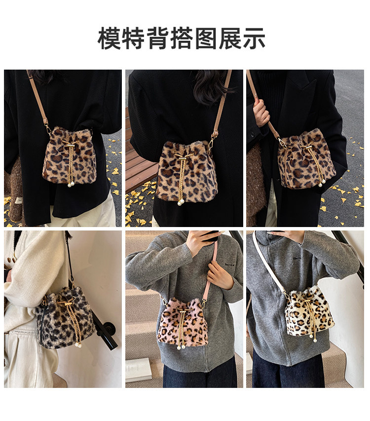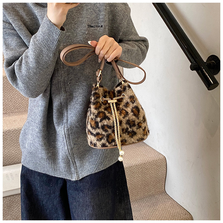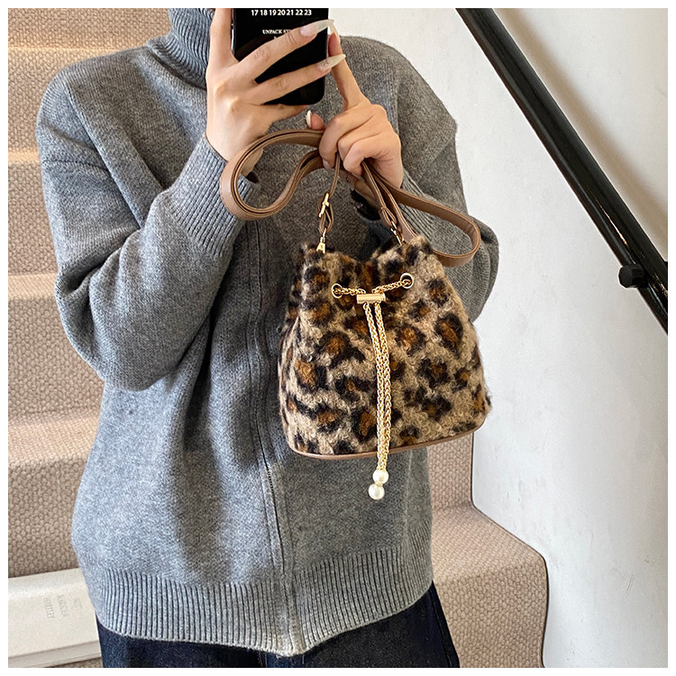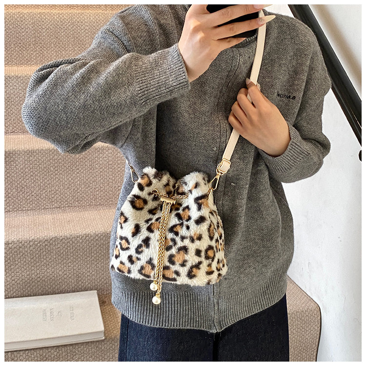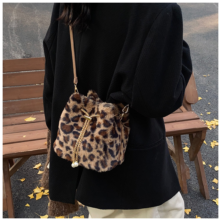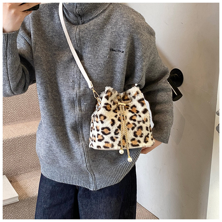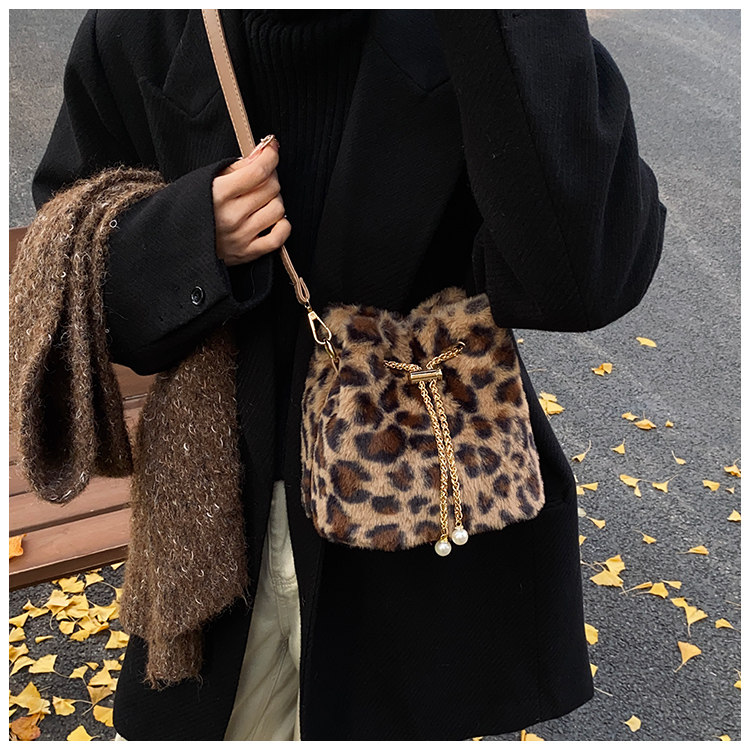 秋冬季超火小衆豹紋毛茸茸包包女2025新款百搭斜後後背包毛毛包水桶包