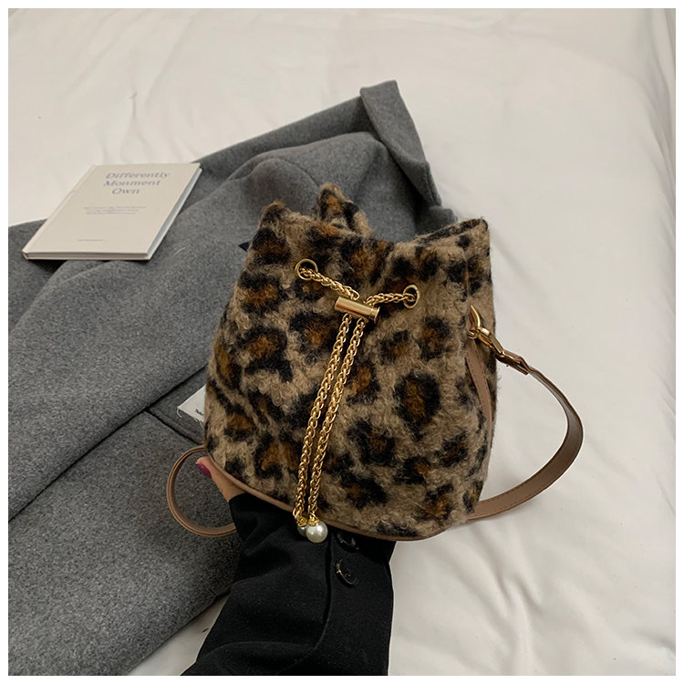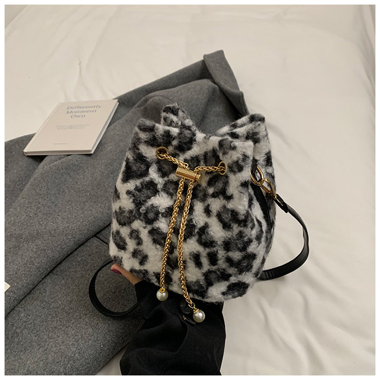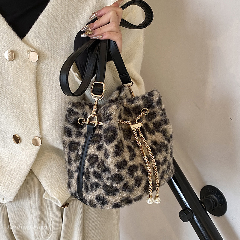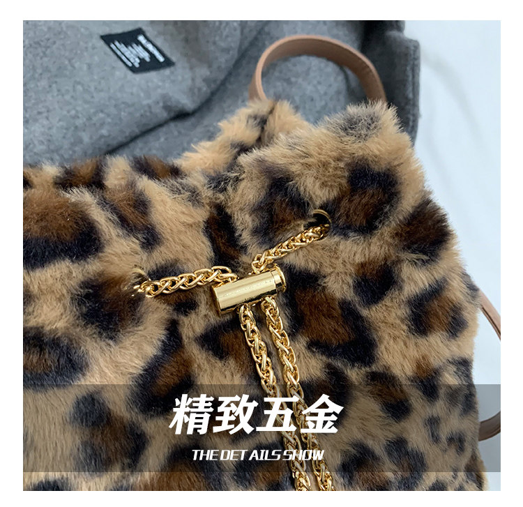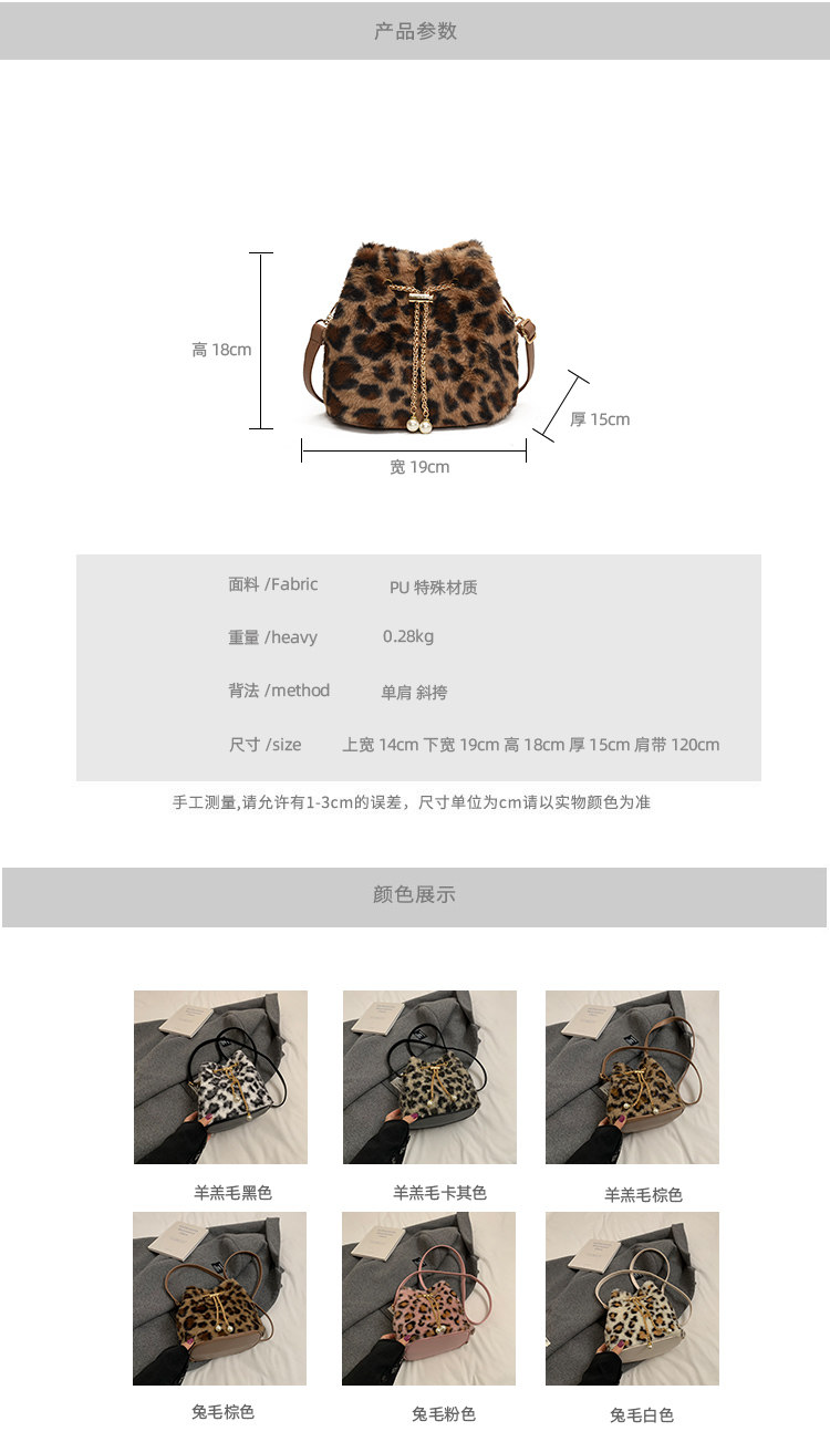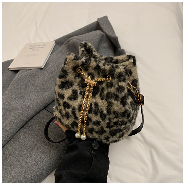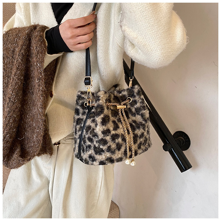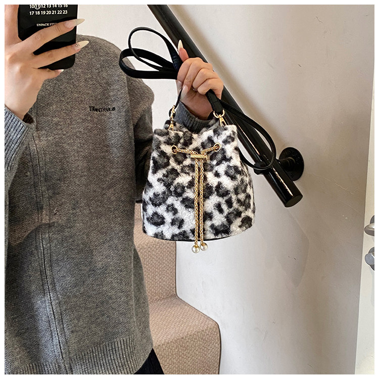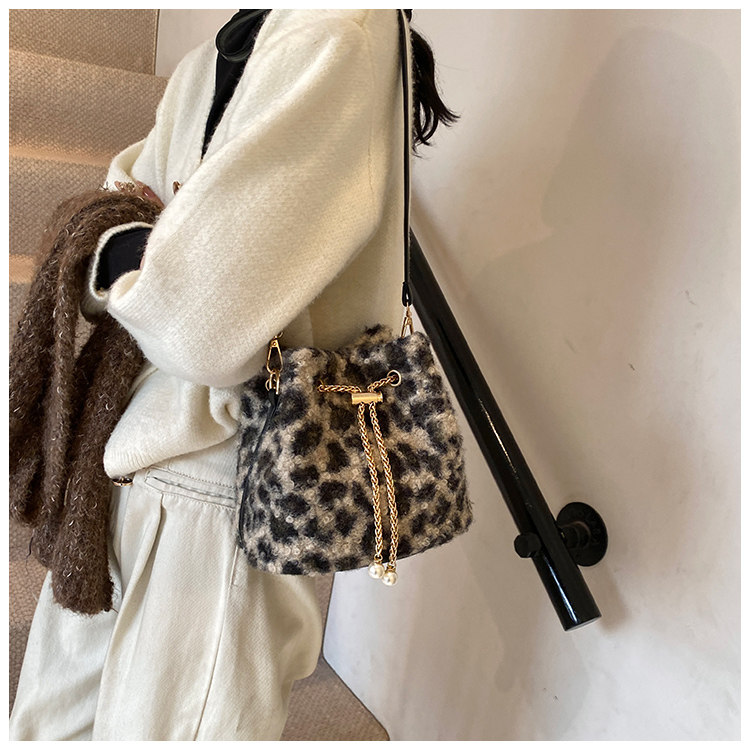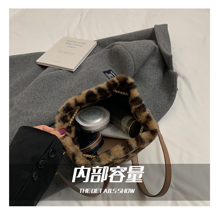 秋冬季超火小衆豹紋毛茸茸包包女2025新款百搭斜後後背包毛毛包水桶包
