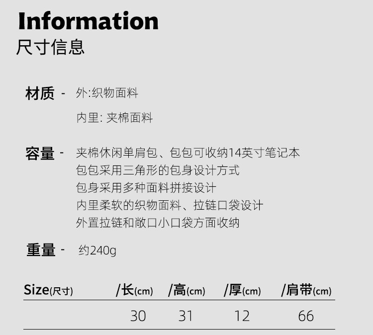 | 箱包硬度 | 軟 |