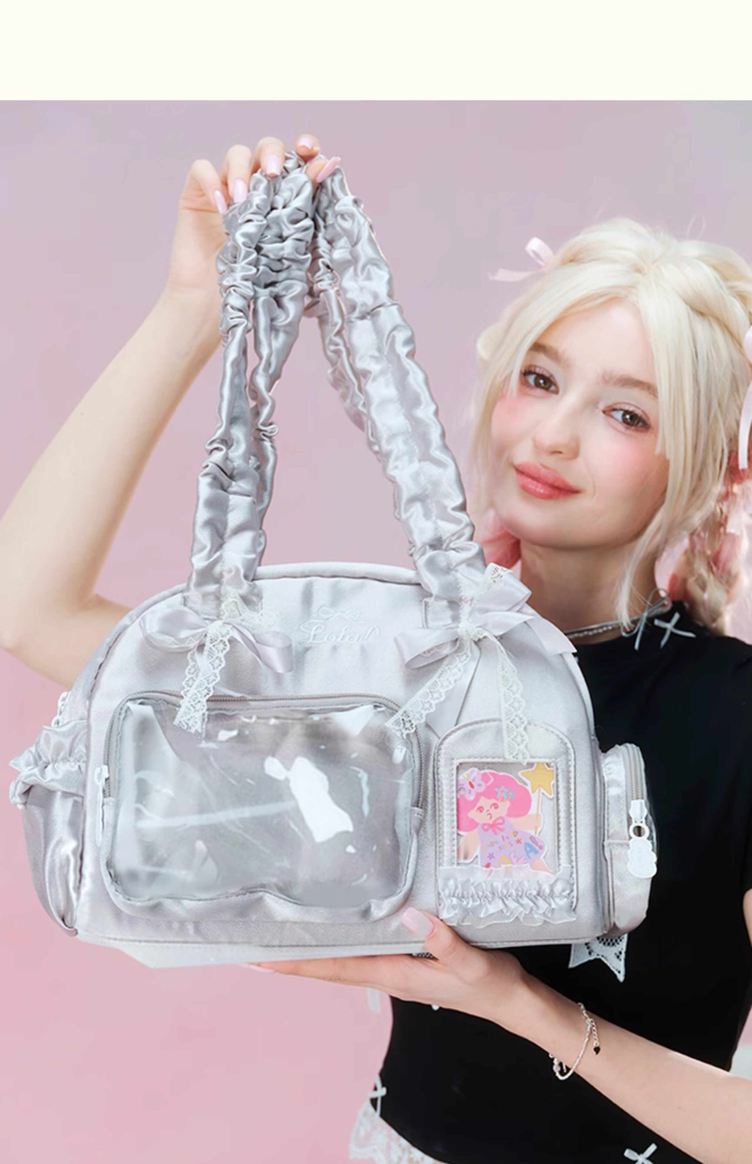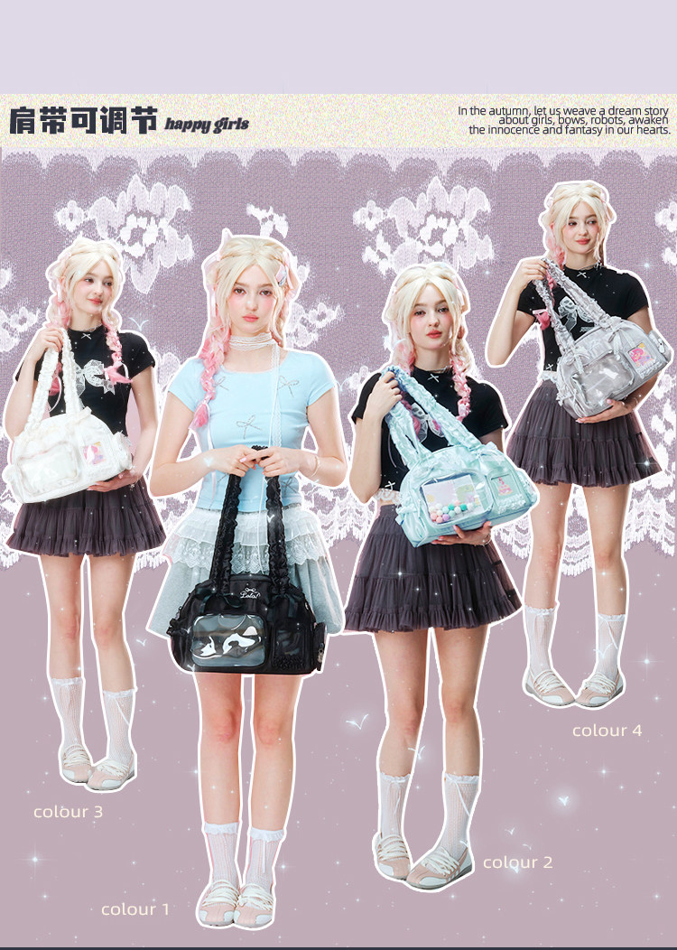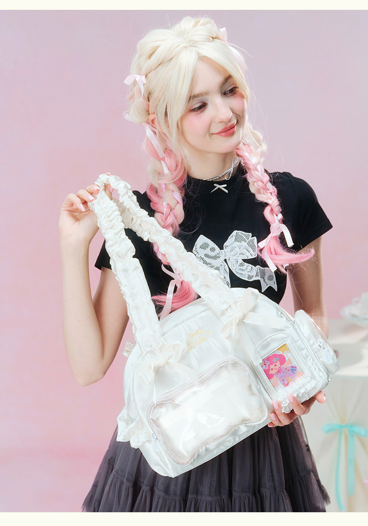LOLA DESIGN蕾絲痛包 25年秋冬新品絲帶痛吧唧穀子動漫單肩手提包