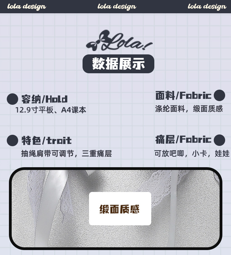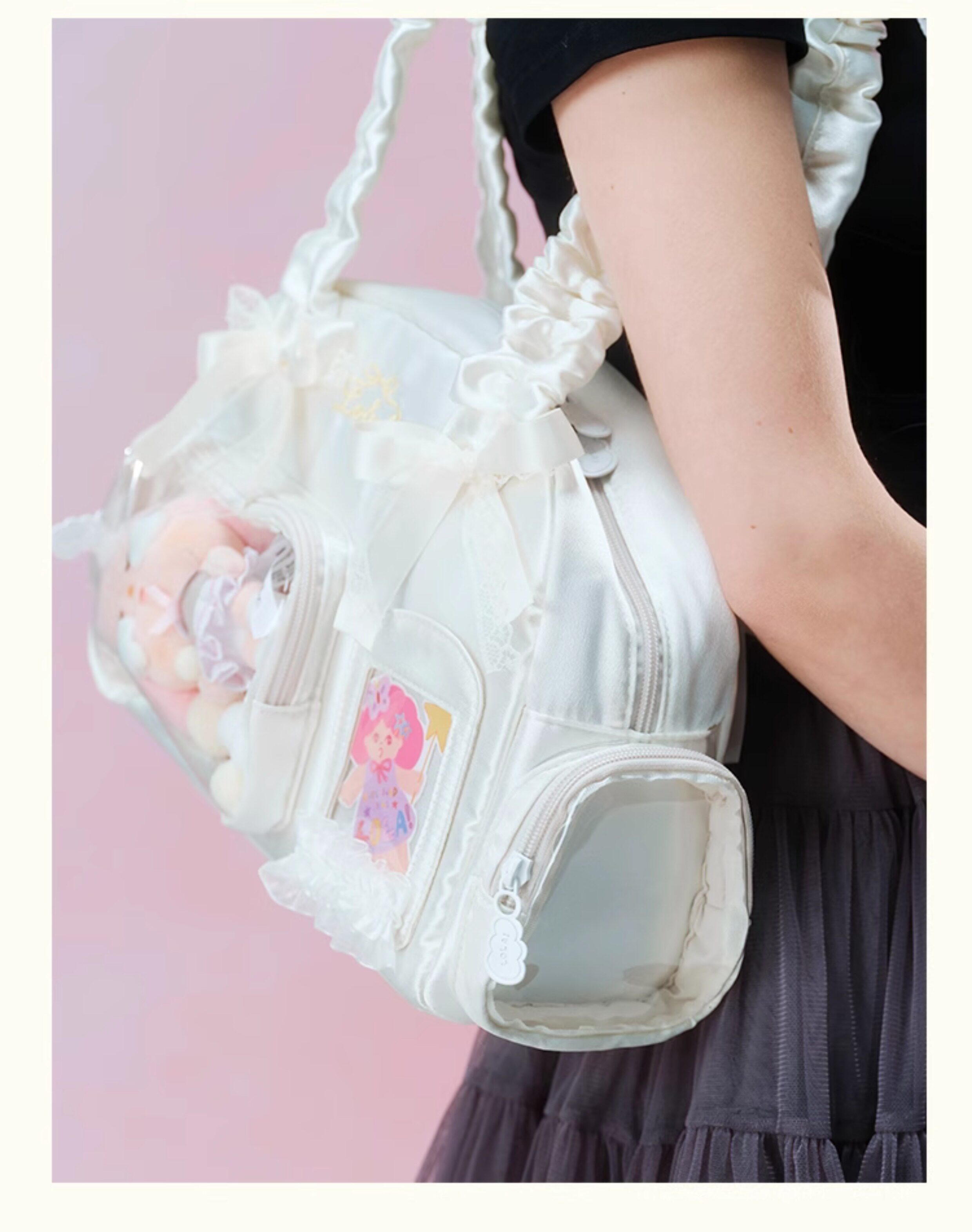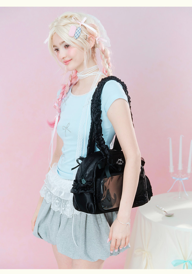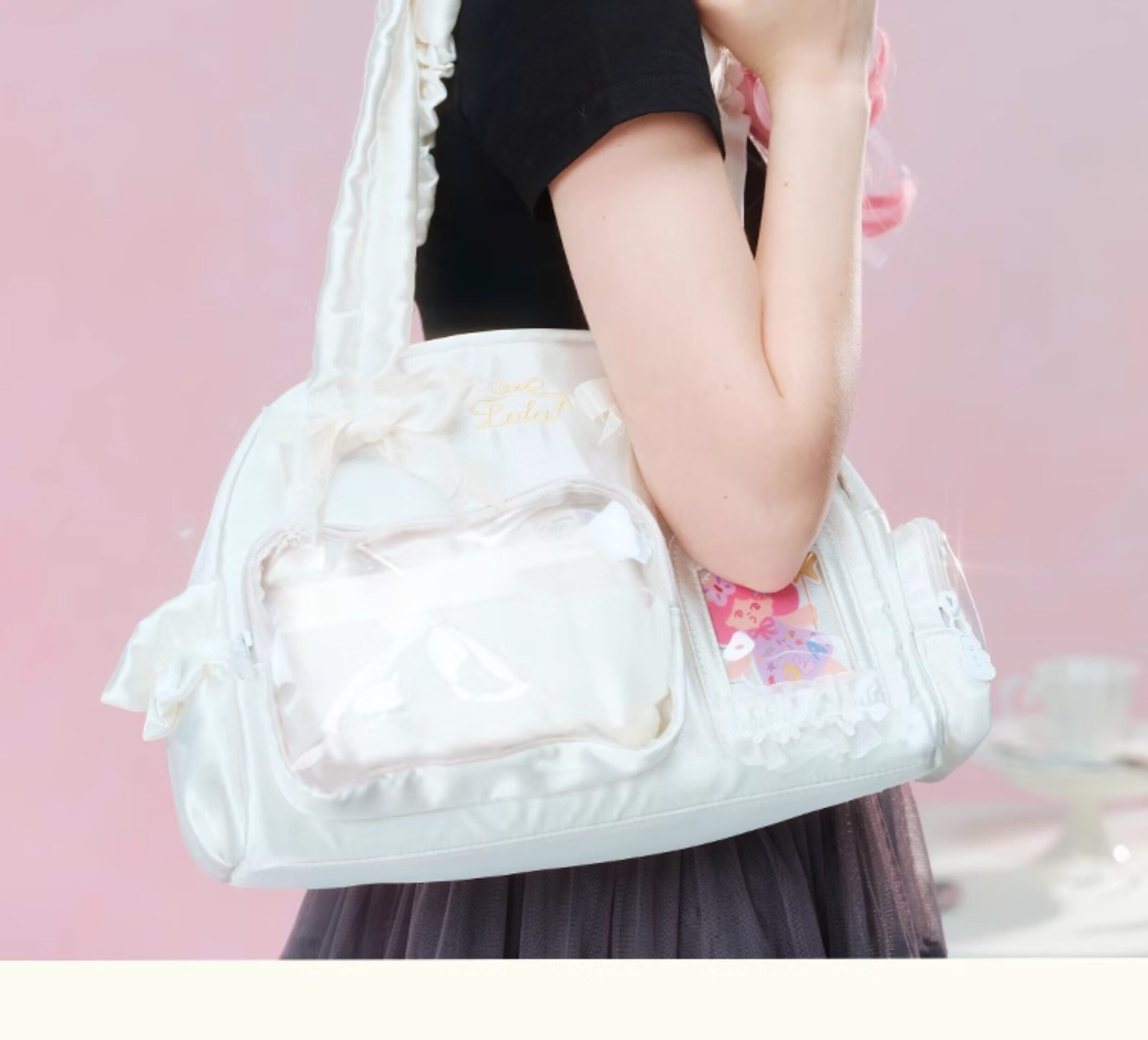 LOLA DESIGN蕾絲痛包 25年秋冬新品絲帶痛吧唧穀子動漫單肩手提包