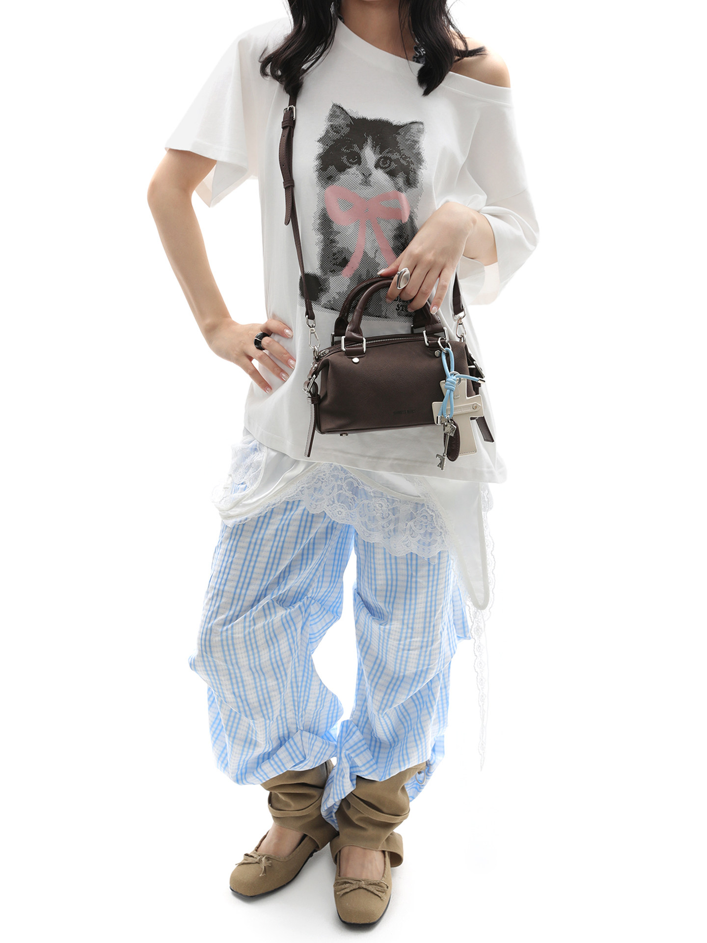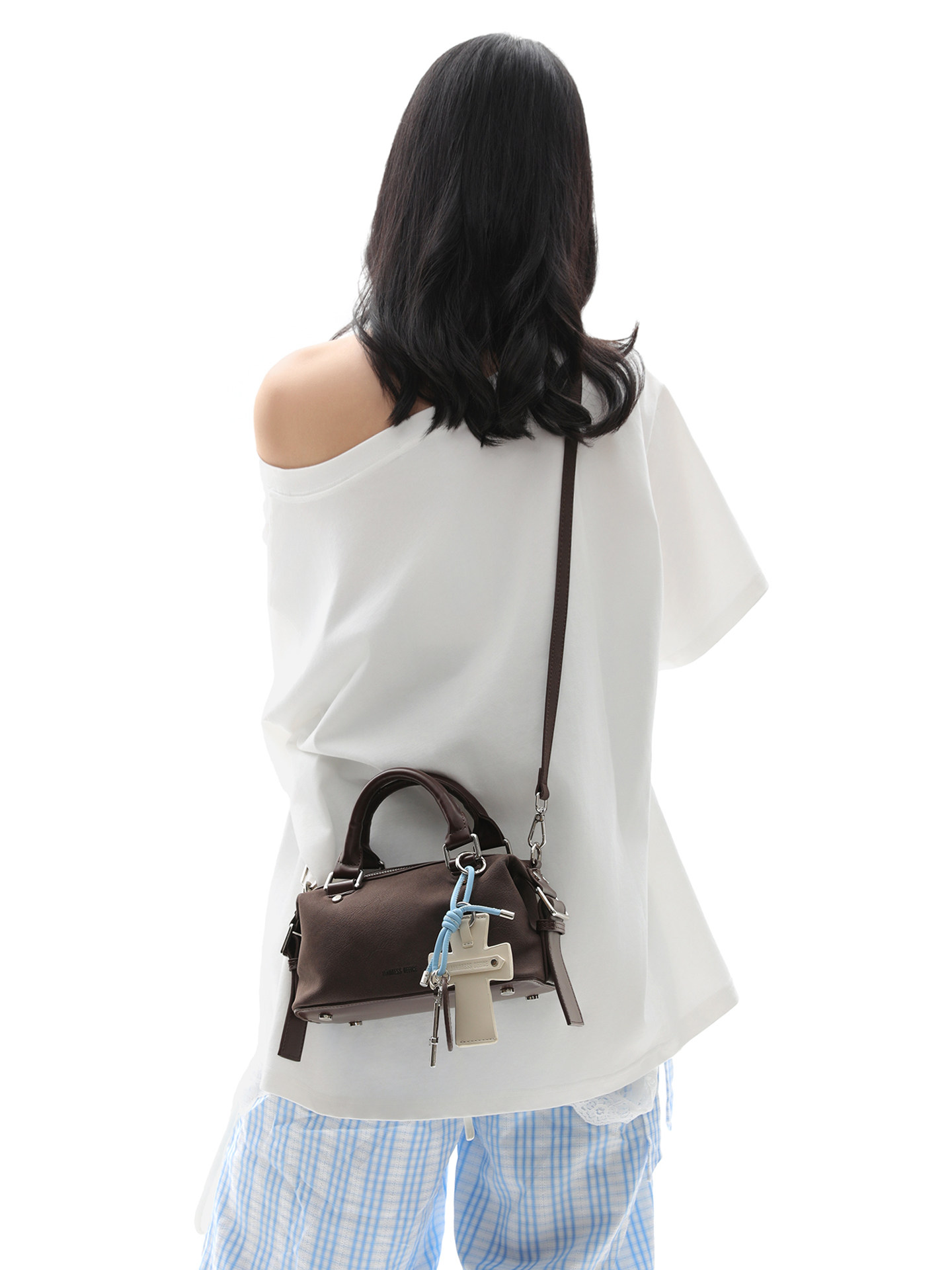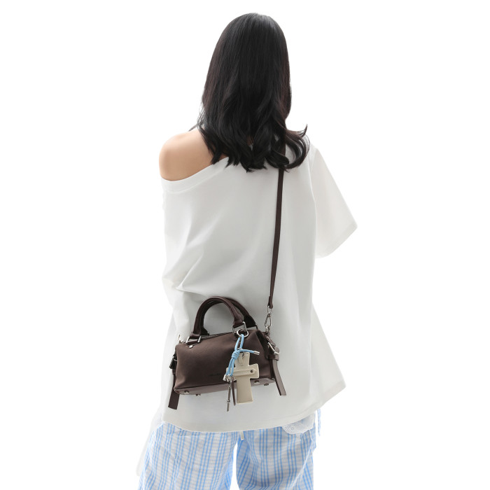 簡著25AW 原創 麂皮棕 moni十字架波士頓斜背小包包 手提包
