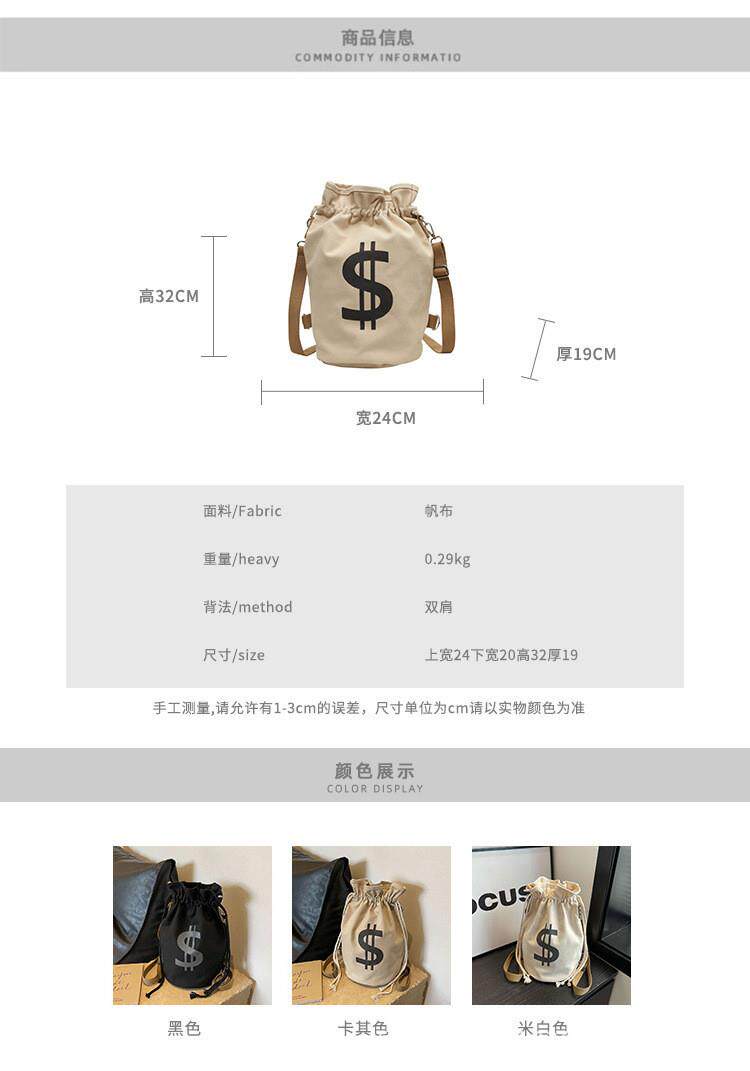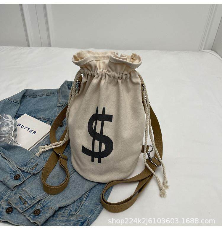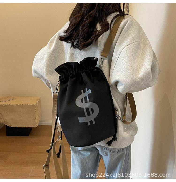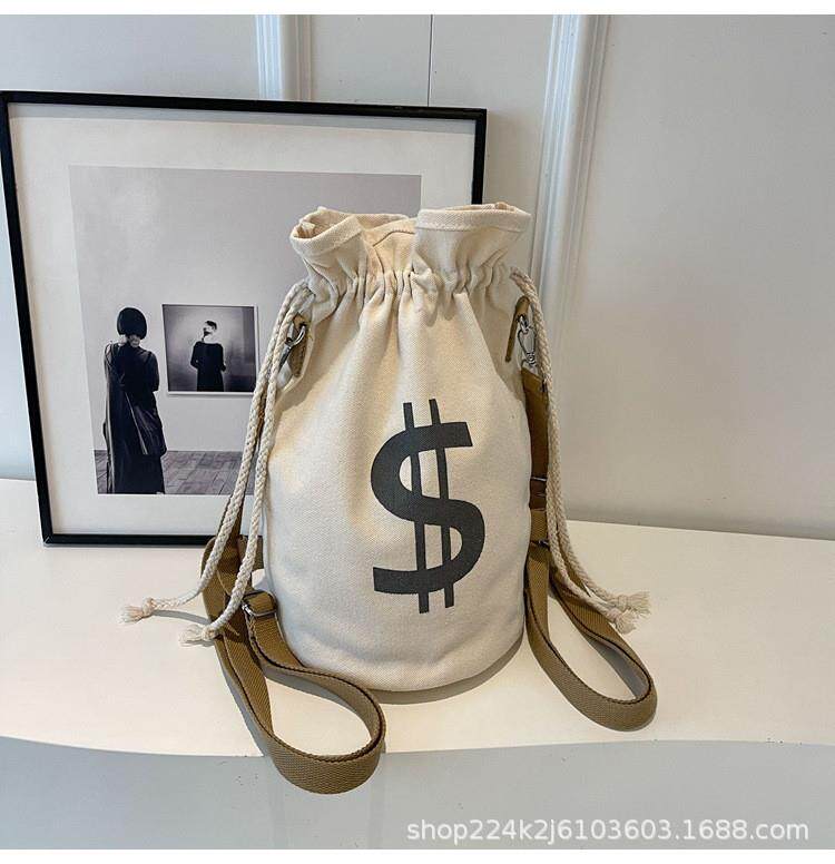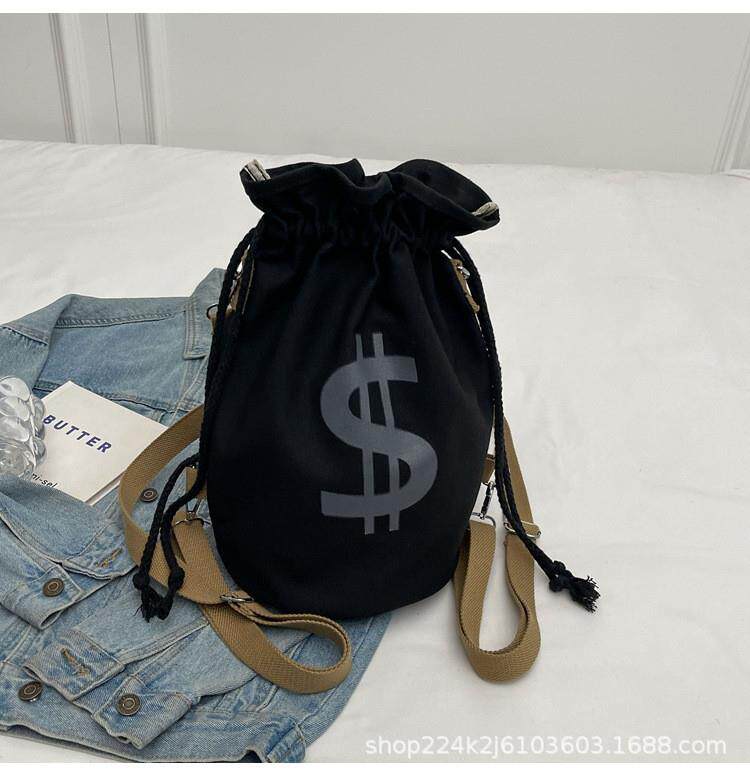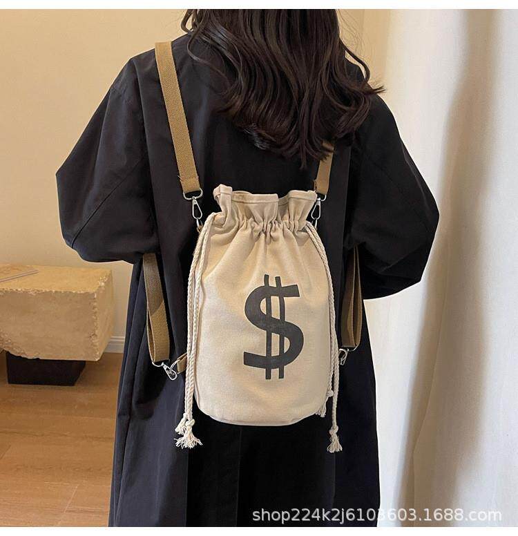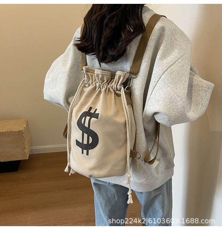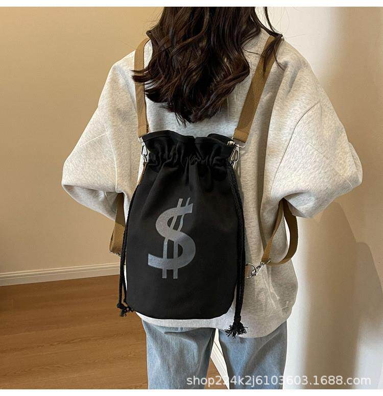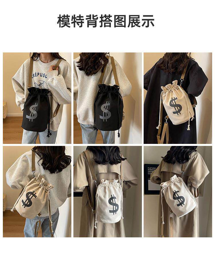 休閒斜後後背包美式帆布包多功能雙肩包兩用束口袋單肩包ins潮後後背包包